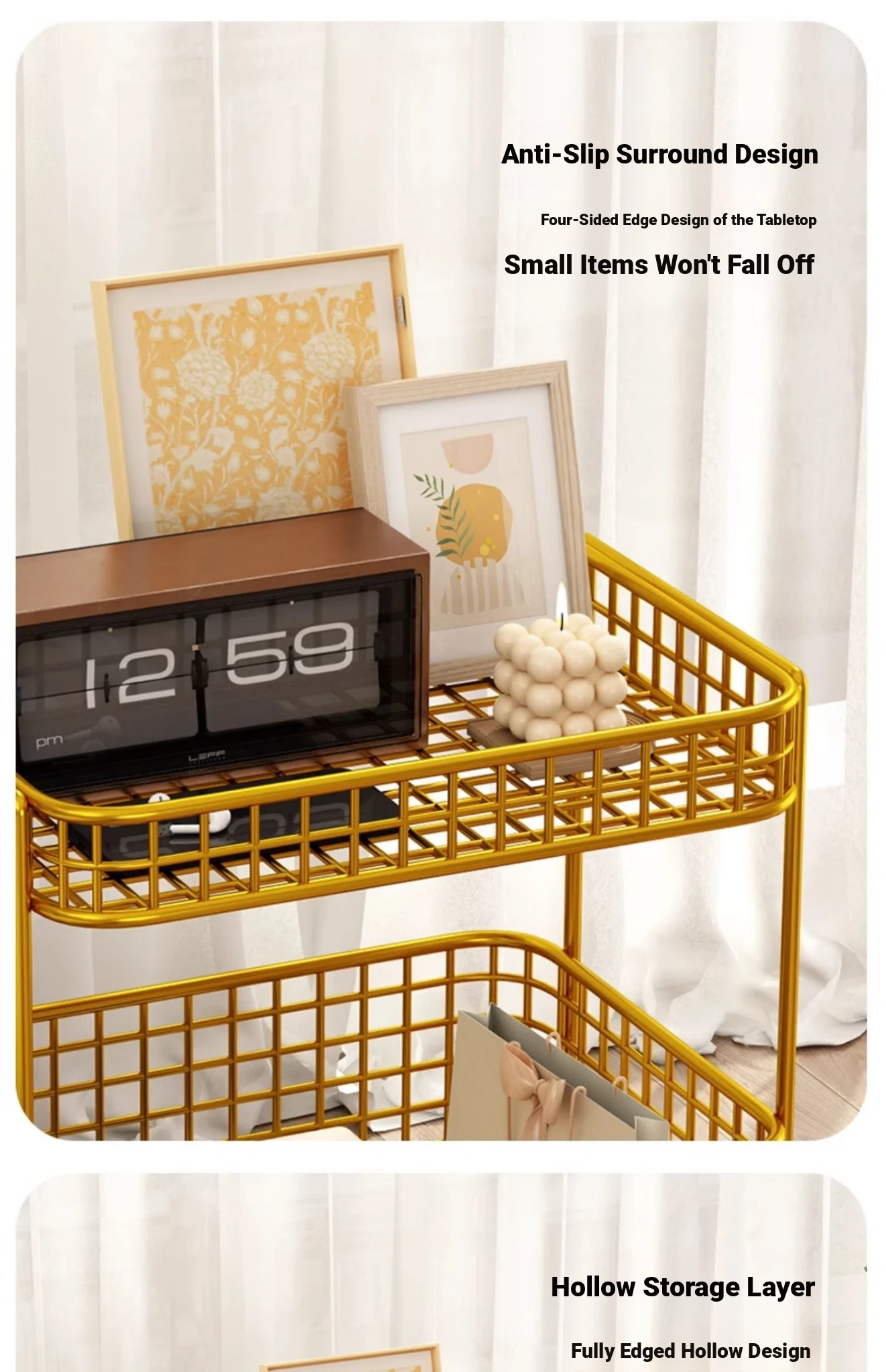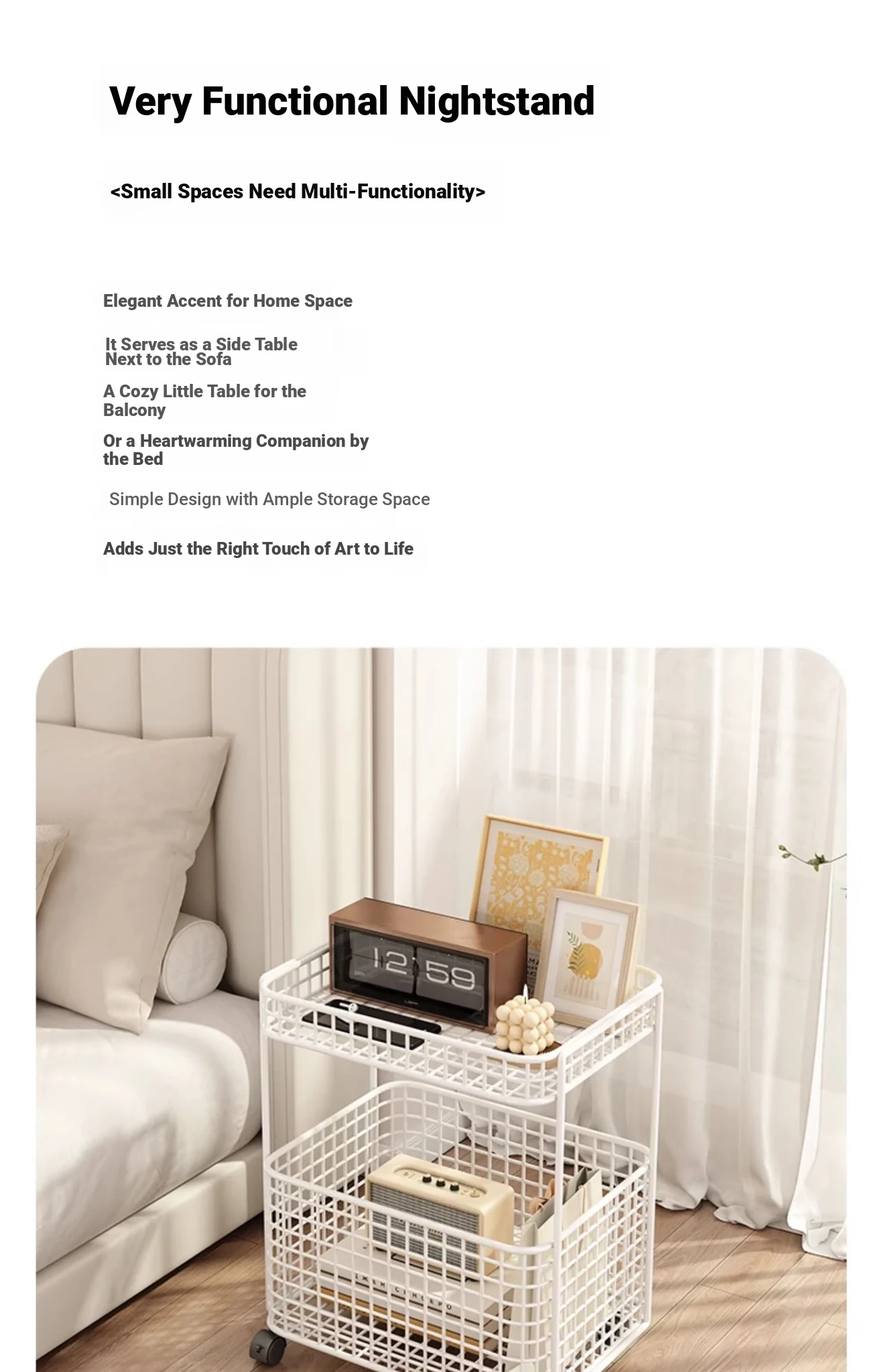 Elegant Iron Bedside Table - Compact Storage Shelf for Bedroom, Living Room Side Cabinet, Small Coffee Table, Sofa Corner Table, Perfect for Space-Saving Solutions