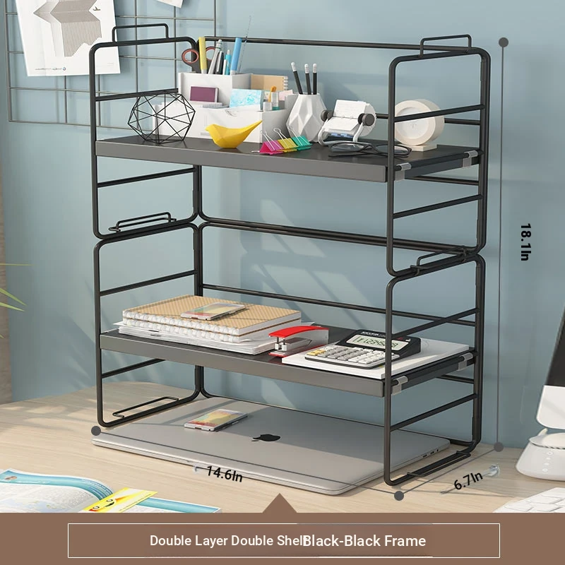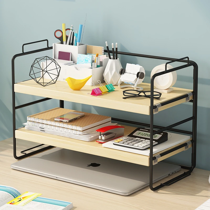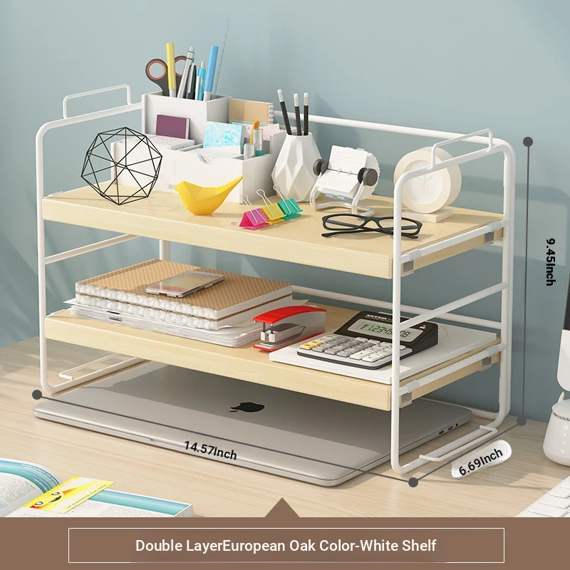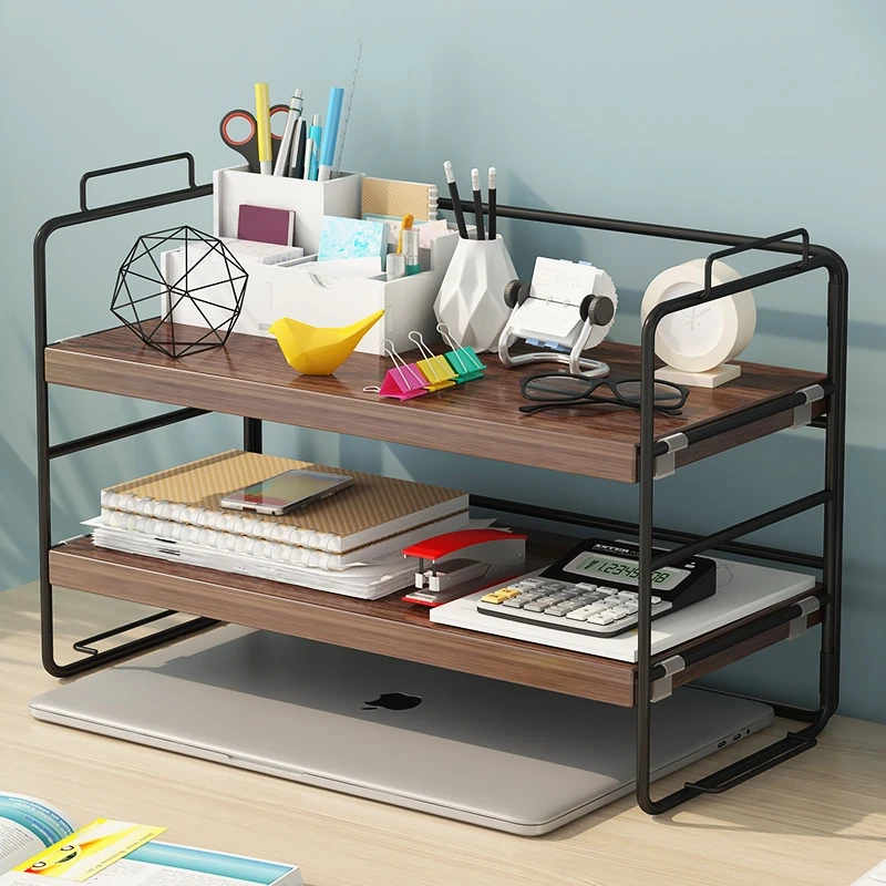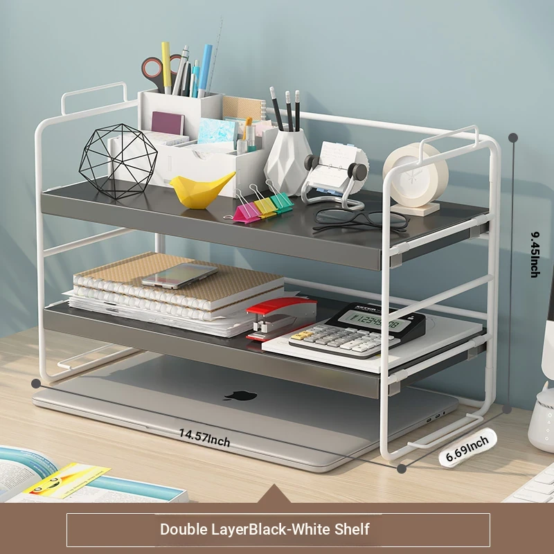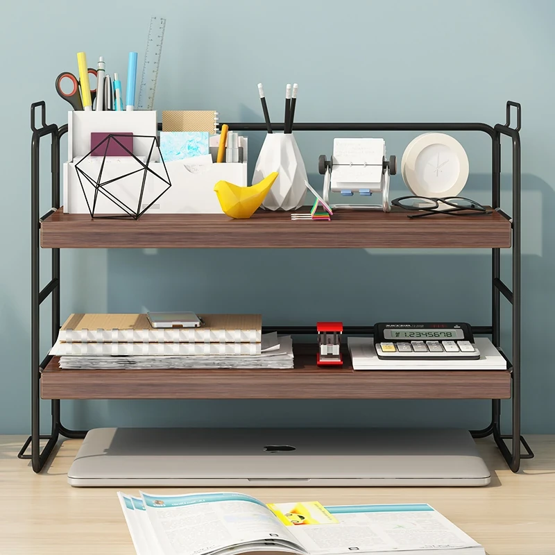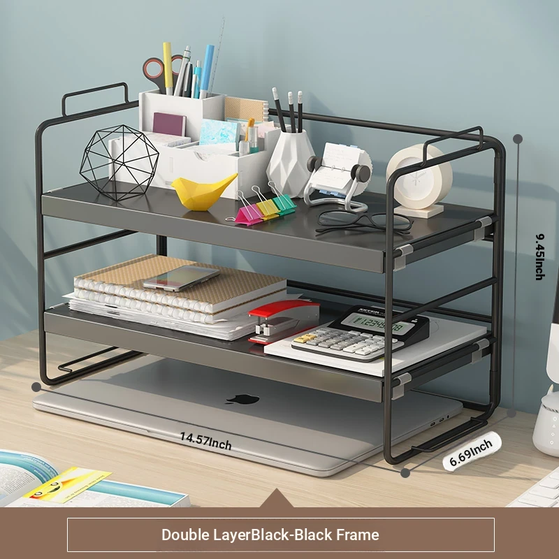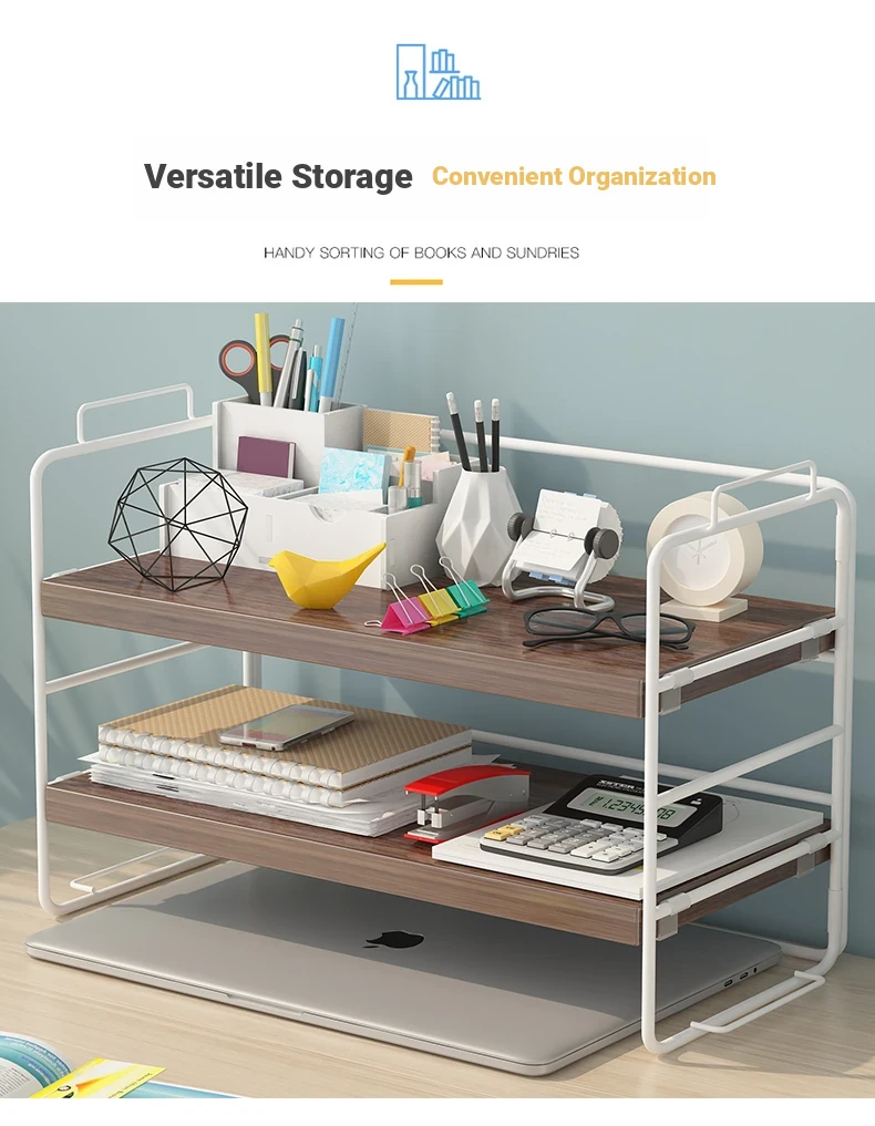 Elegant Iron Bookshelf Organizer - Multi-Layer Desktop Storage Rack for Office, Perfect for Books and Supplies, Space-Saving Desk Divider and Storage Solution