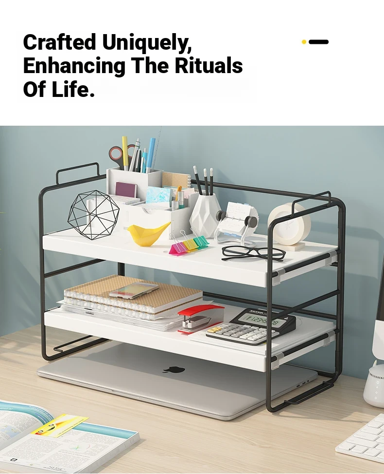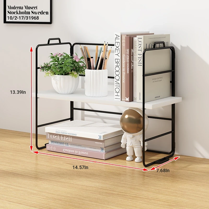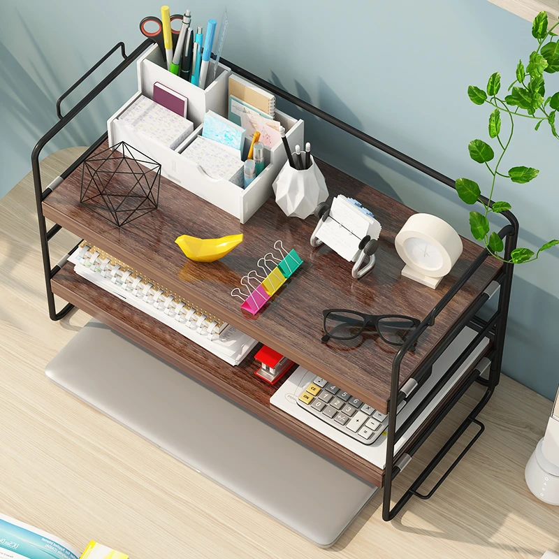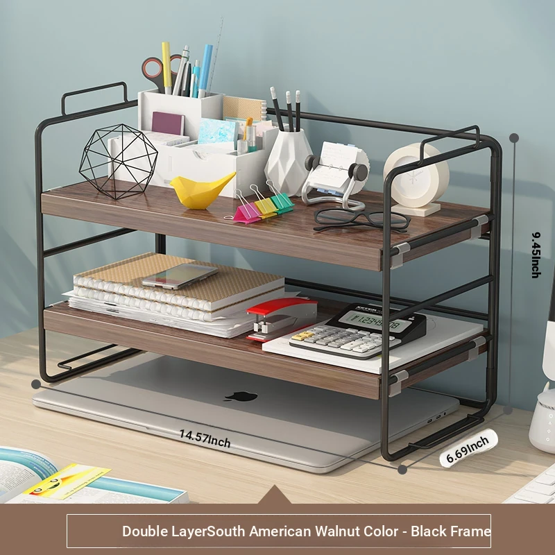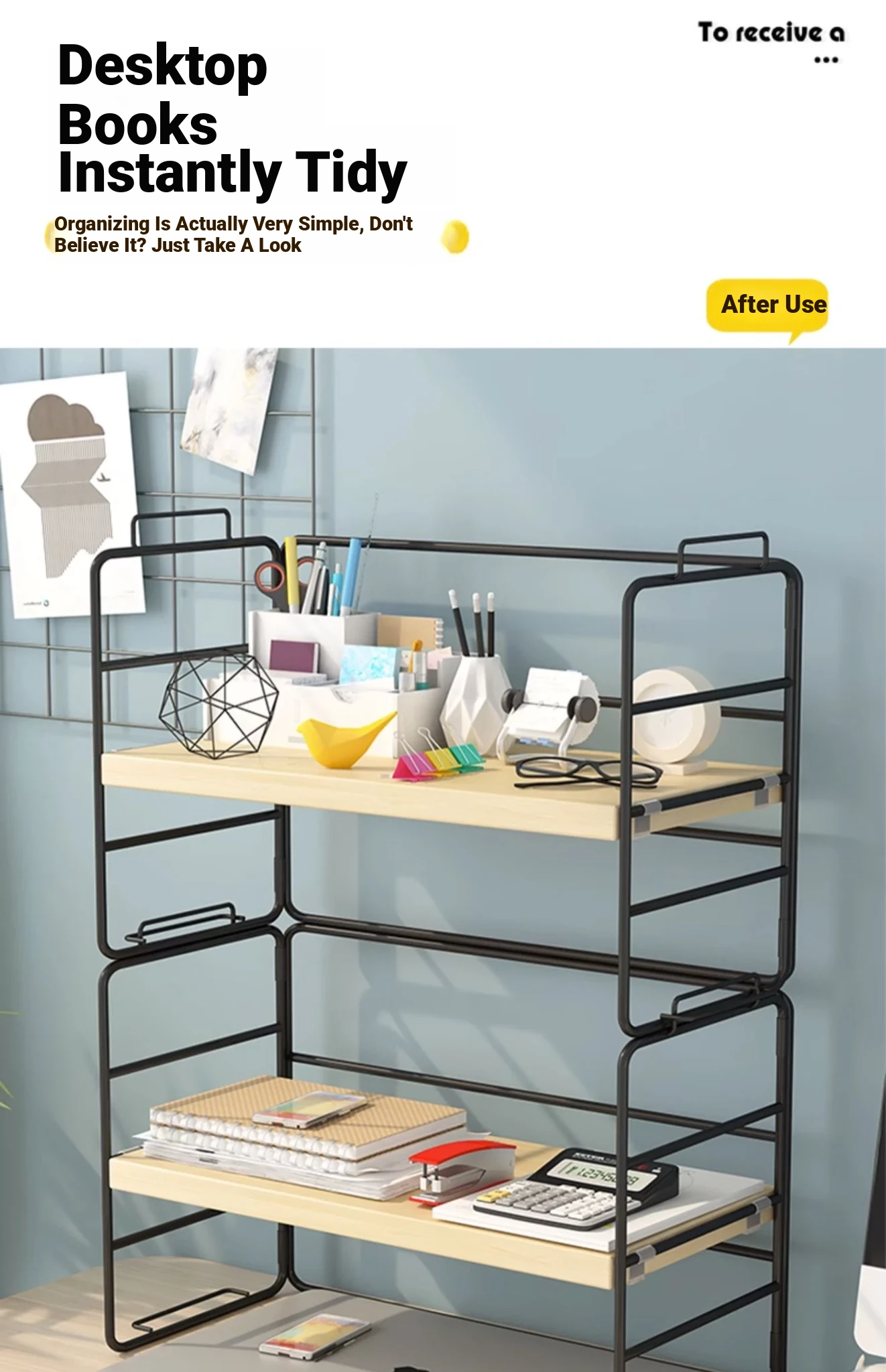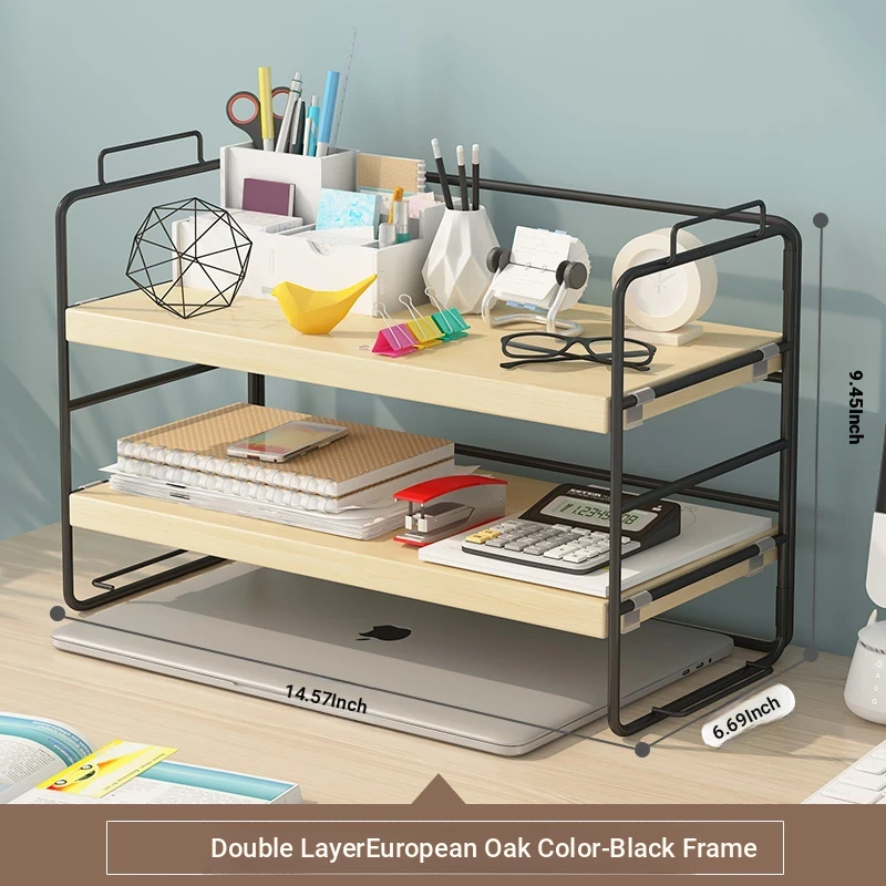 Elegant Iron Bookshelf Organizer - Multi-Layer Desktop Storage Rack for Office, Perfect for Books and Supplies, Space-Saving Desk Divider and Storage Solution
