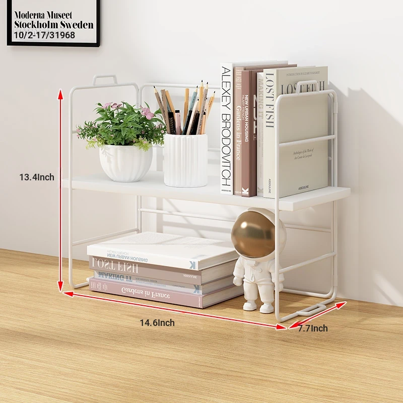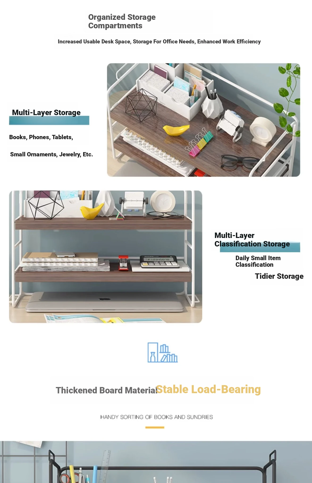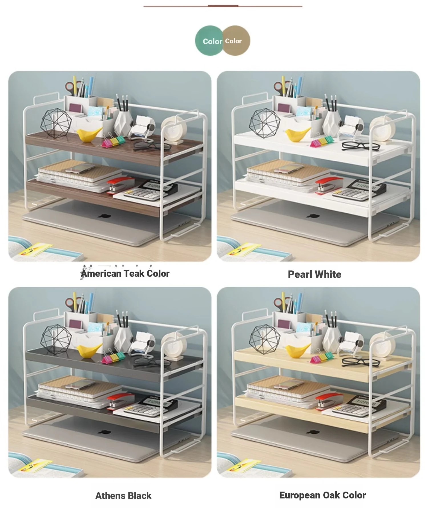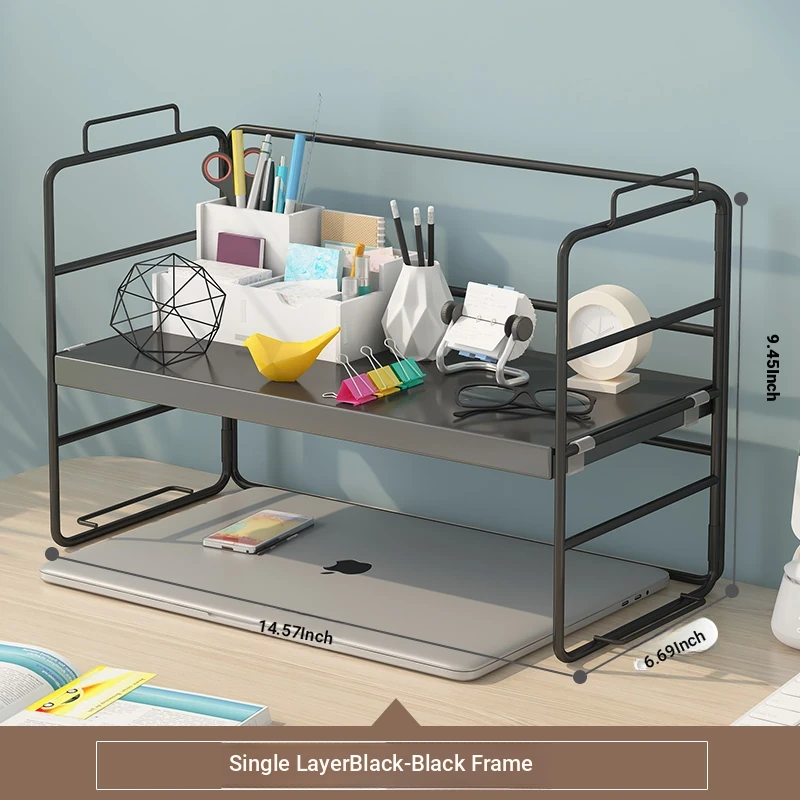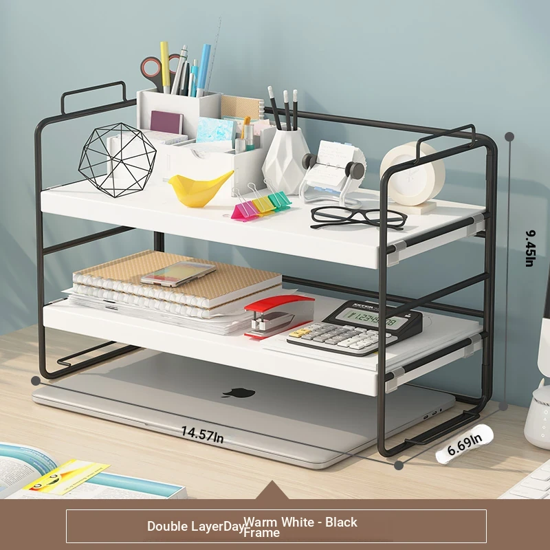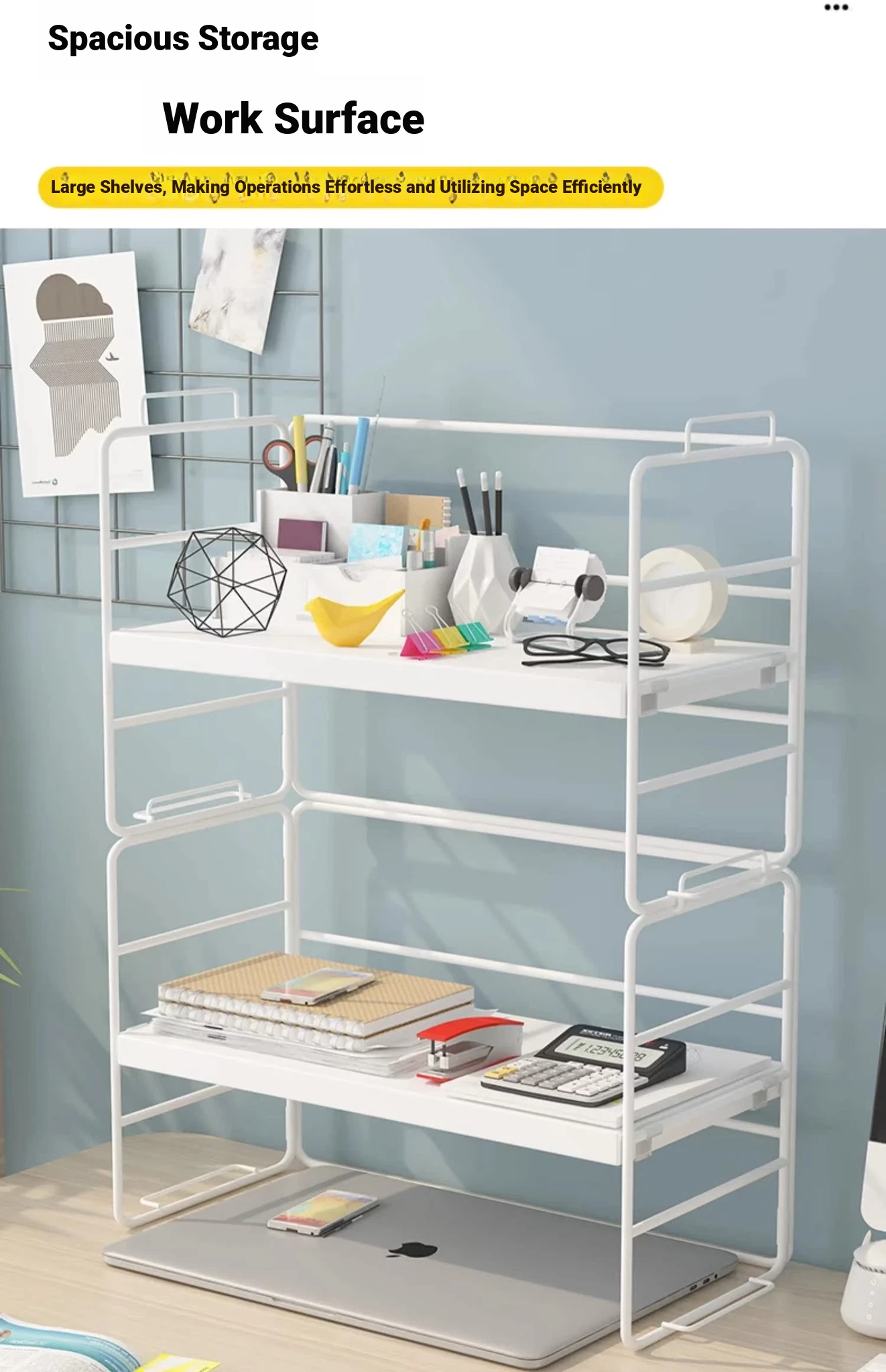 Elegant Iron Bookshelf Organizer - Multi-Layer Desktop Storage Rack for Office, Perfect for Books and Supplies, Space-Saving Desk Divider and Storage Solution