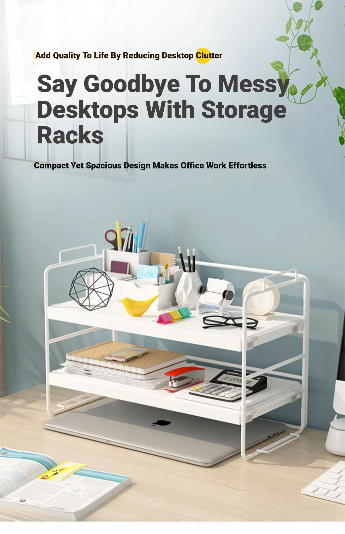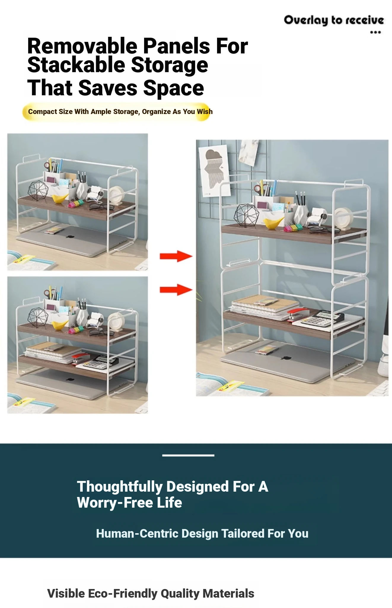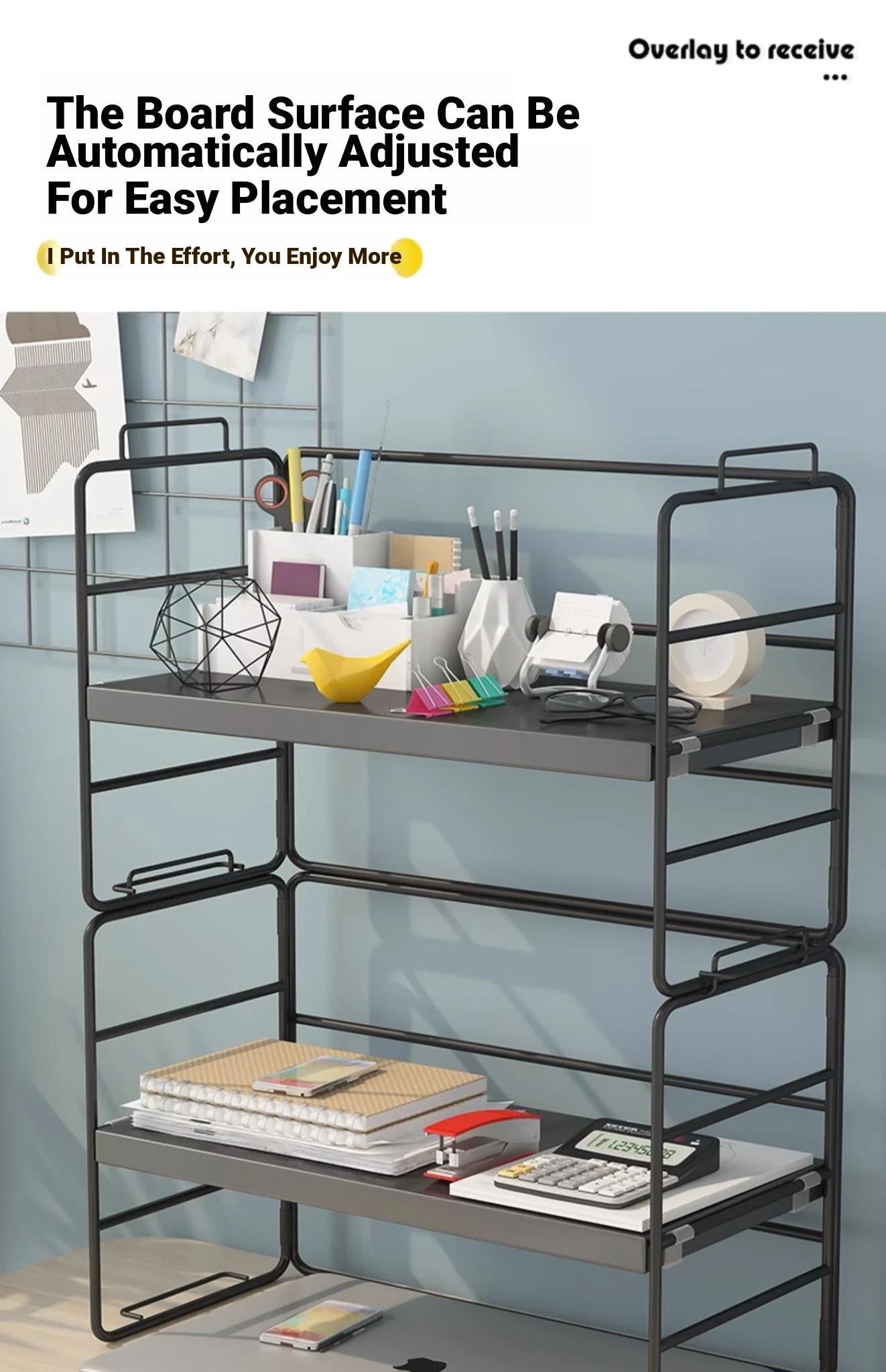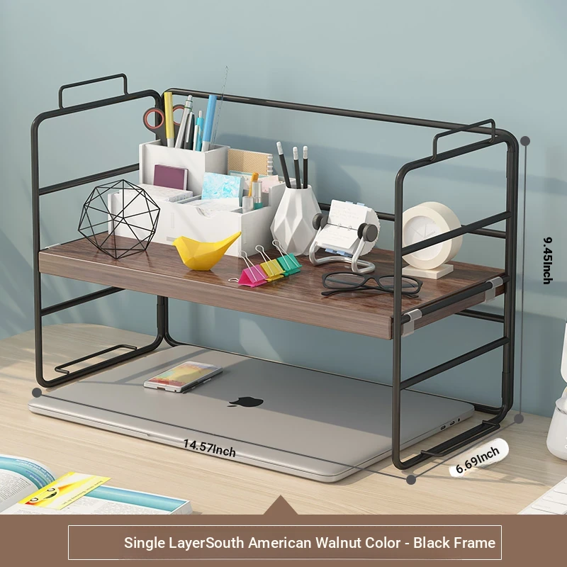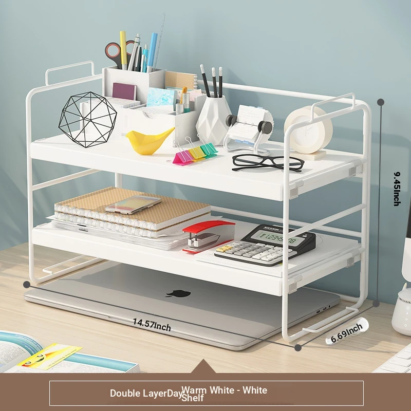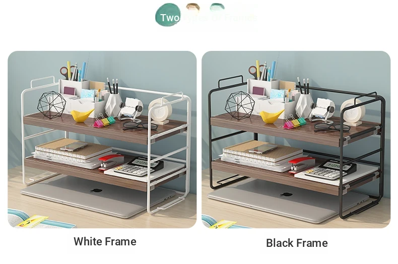 Elegant Iron Bookshelf Organizer - Multi-Layer Desktop Storage Rack for Office, Perfect for Books and Supplies, Space-Saving Desk Divider and Storage Solution