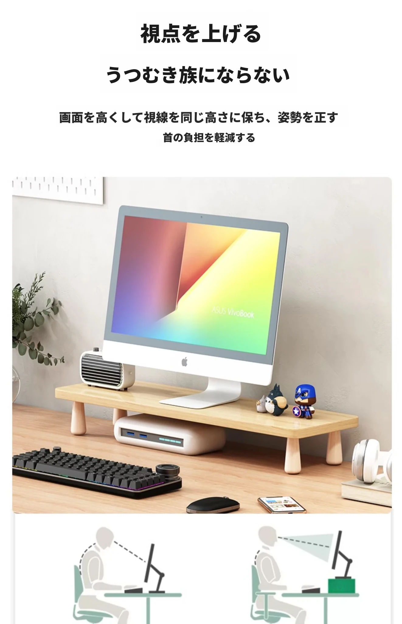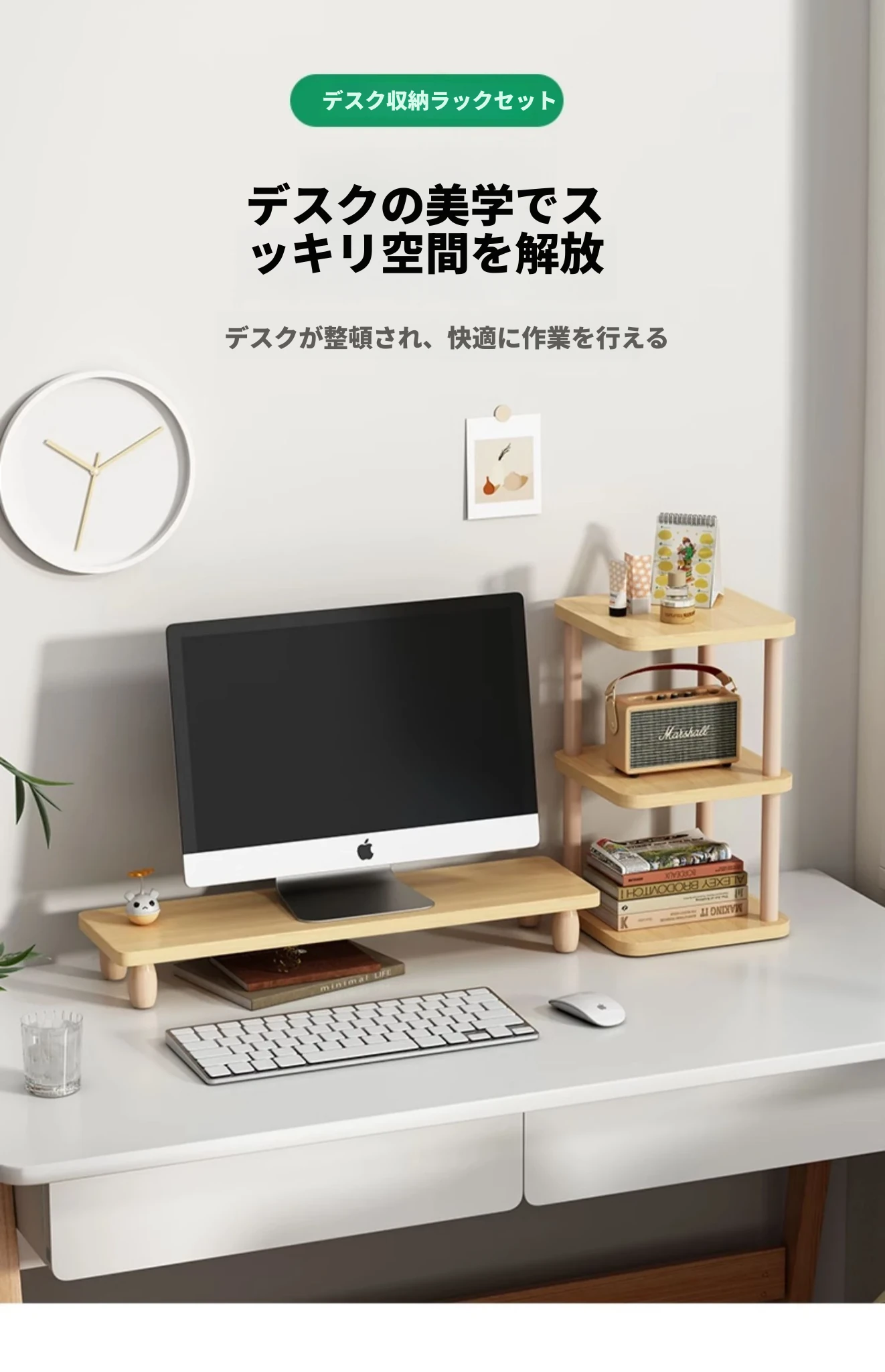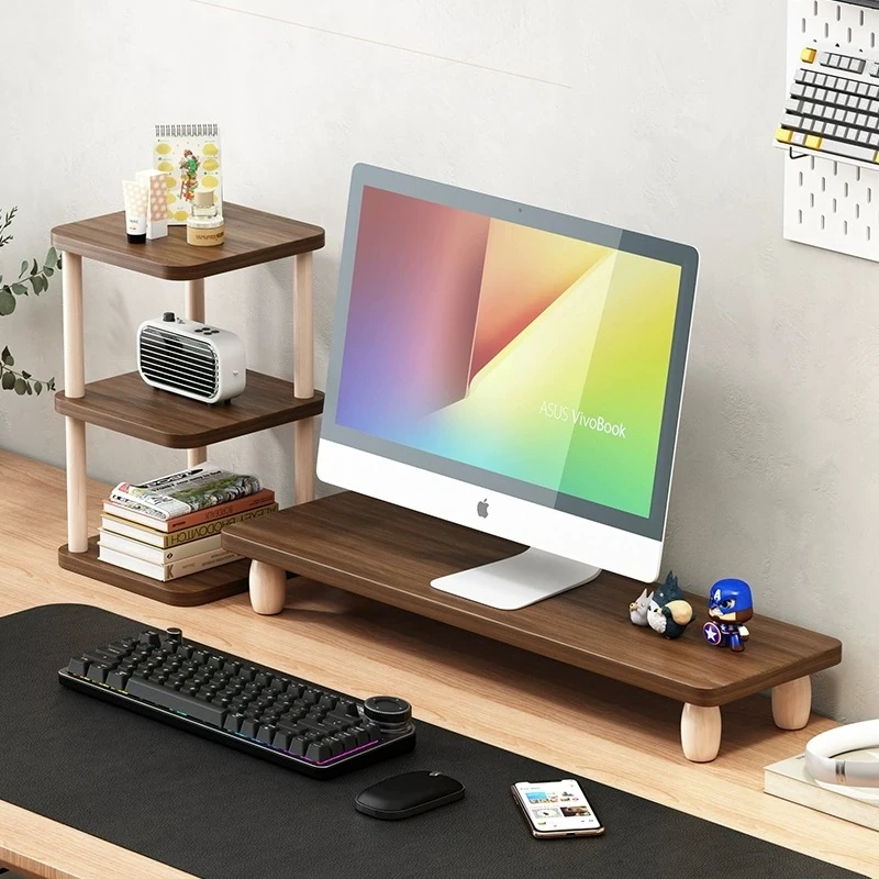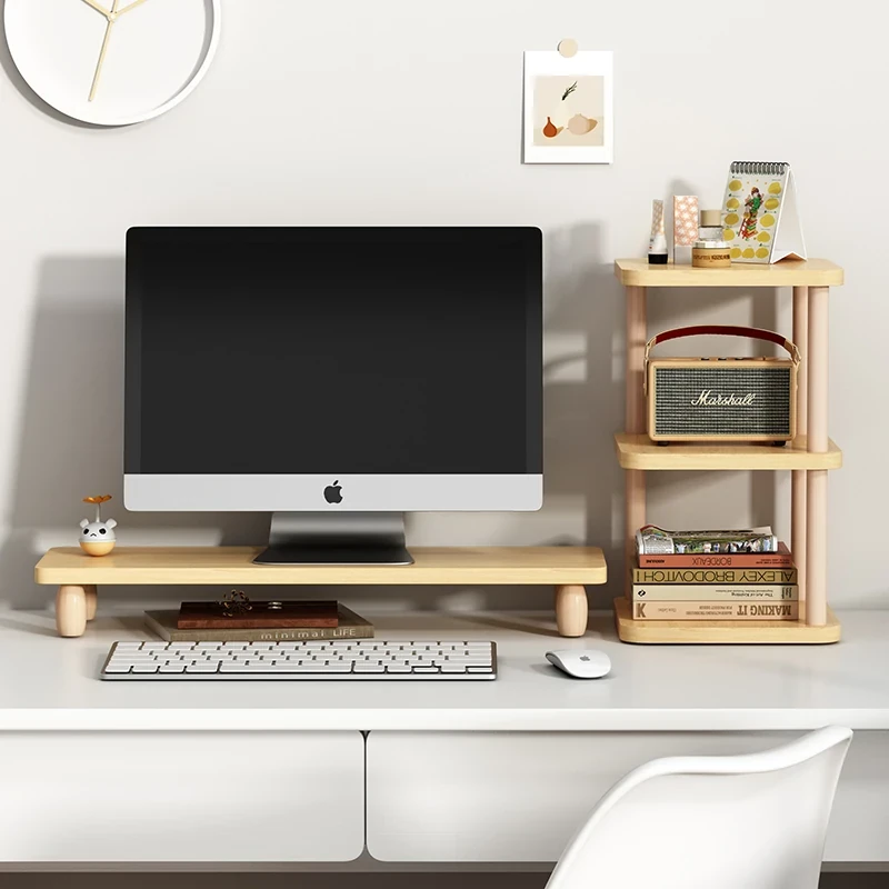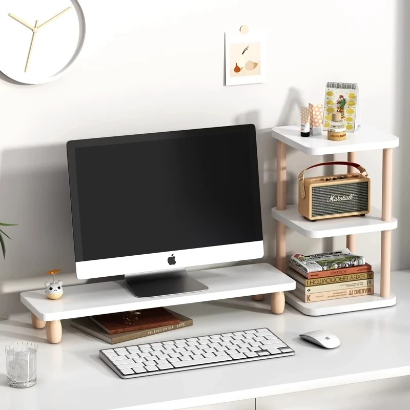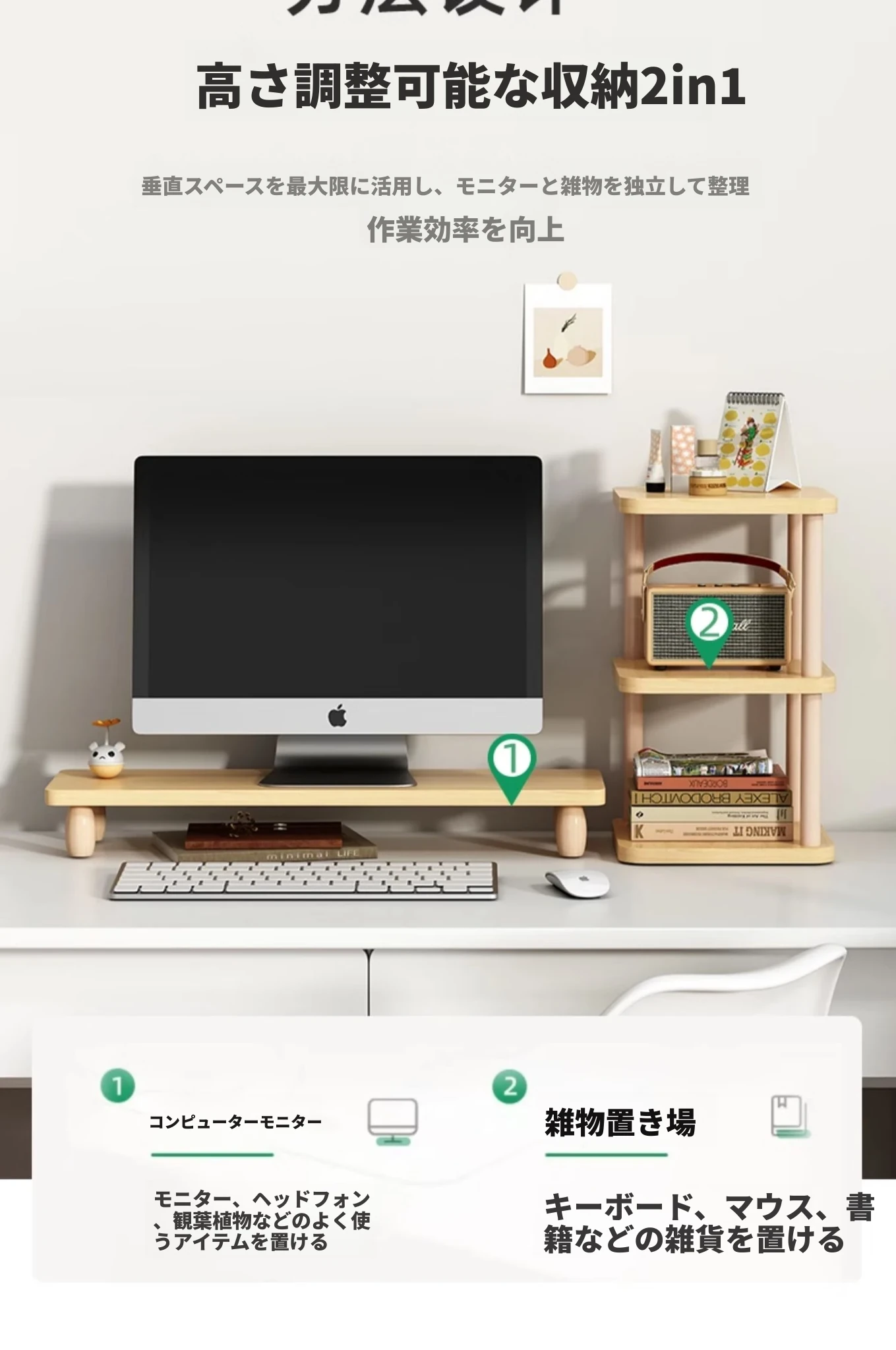 デスクトップ用モニター台・ノートパソコンスタンド - 省スペース設計でオフィスをスッキリ整理!快適な作業環境を提供する多機能収納ラック。仕事効率をアップさせる必須アイテム!