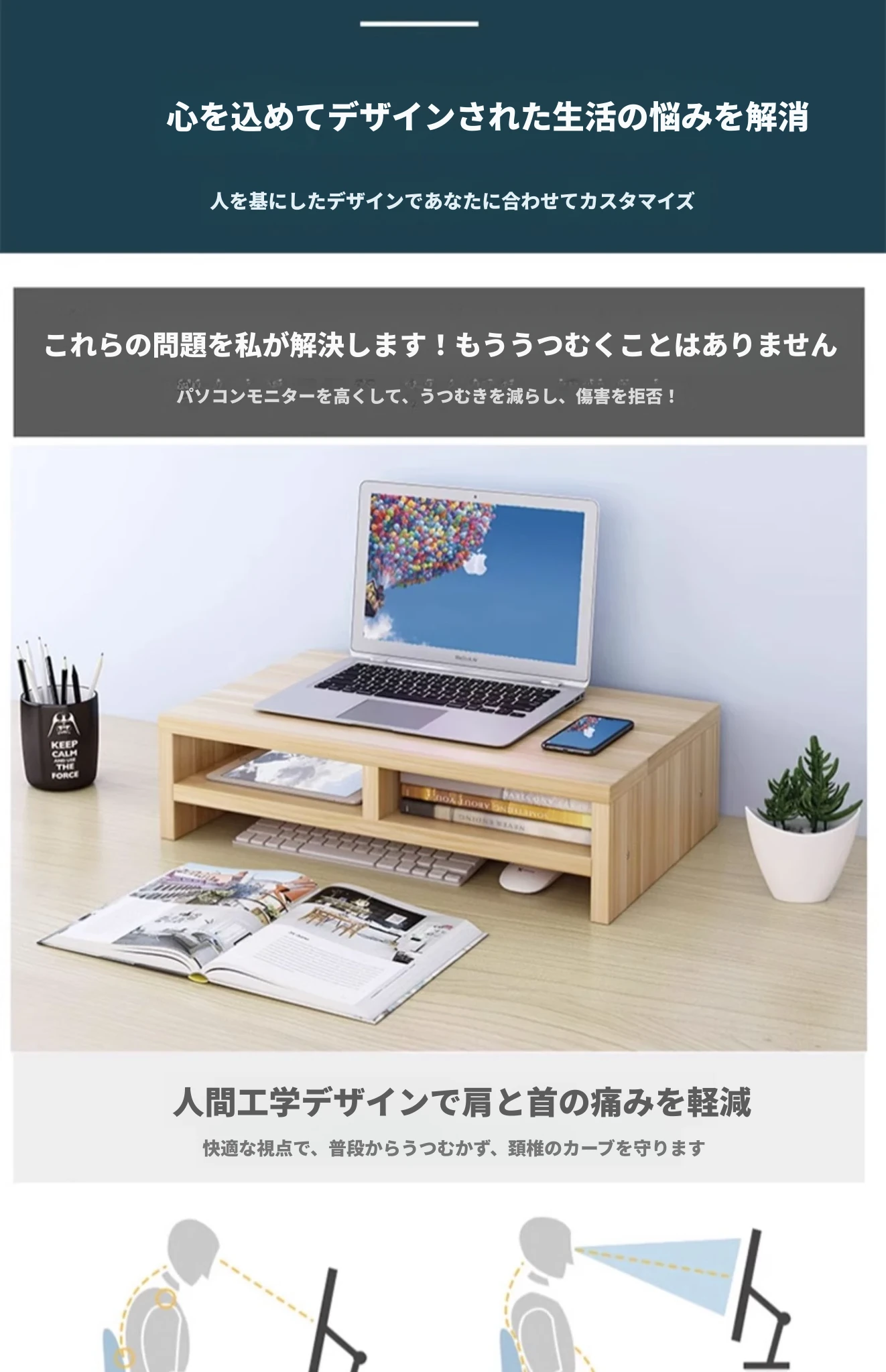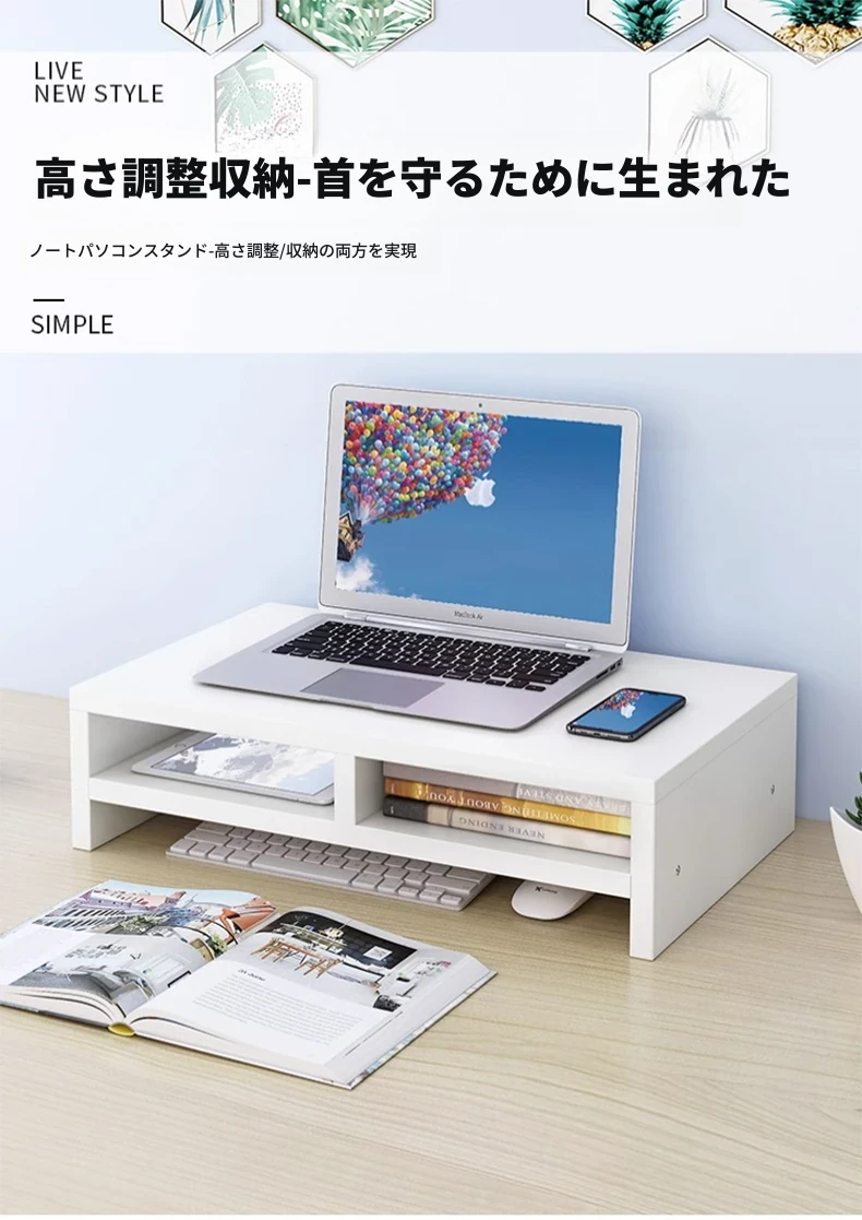 デスク全体を高くするノートパソコンスタンド - 宿舎や勉強に最適な収納キーボードラック付き!作業効率をアップさせ、快適な姿勢をサポートします。