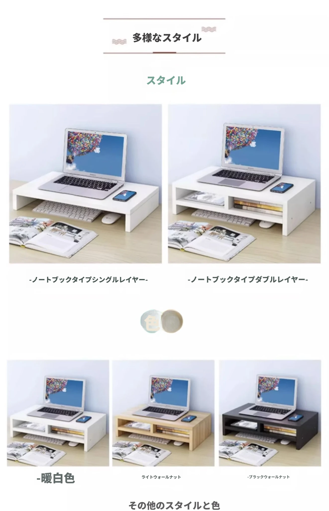 ノートスタイルの二段ウォールナット+キャビネットセット