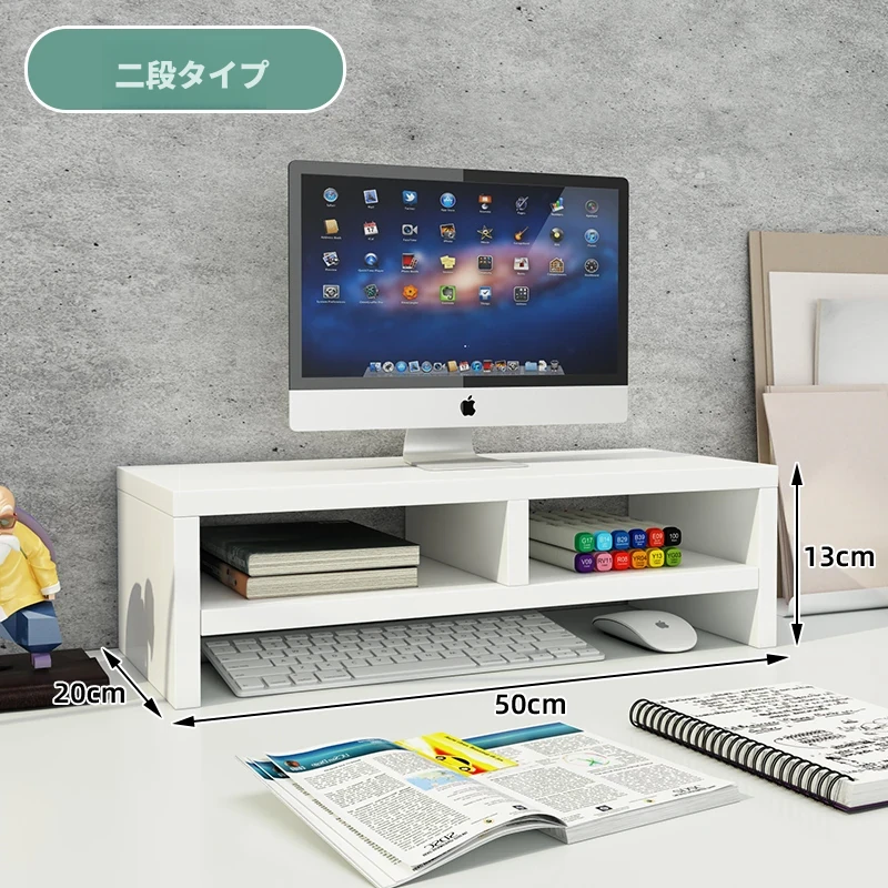 ノートスタイルの二段ホワイト+キャビネットセット