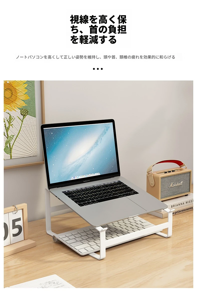 ノートパソコン用高耐熱スタンド - デスクトップをすっきり整理!モニターを高くし、快適な作業環境を実現。熱対策もばっちりの多機能ラックです。