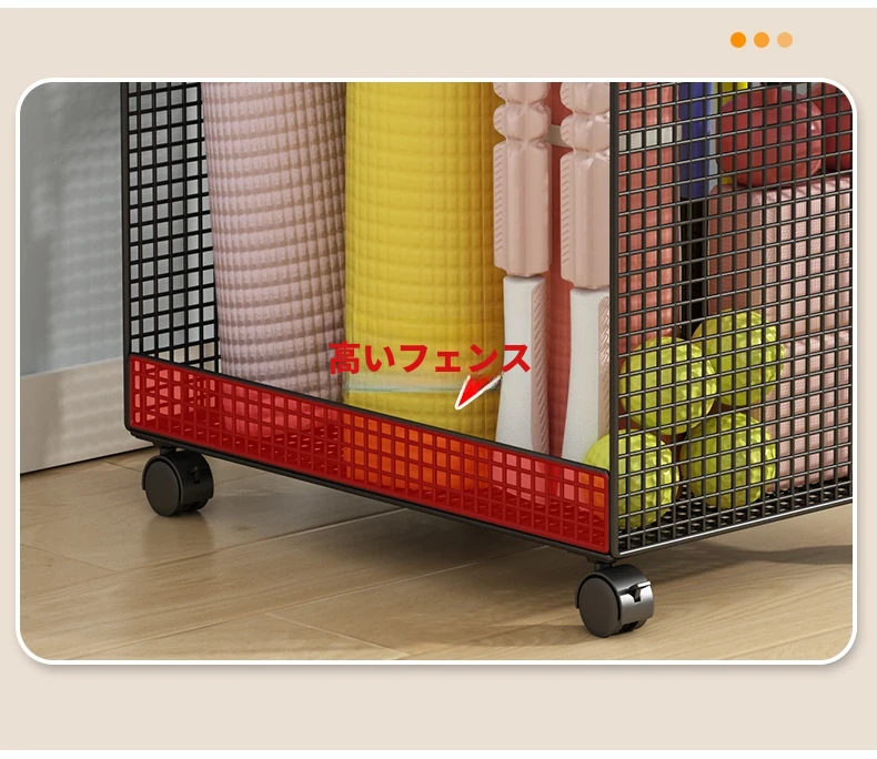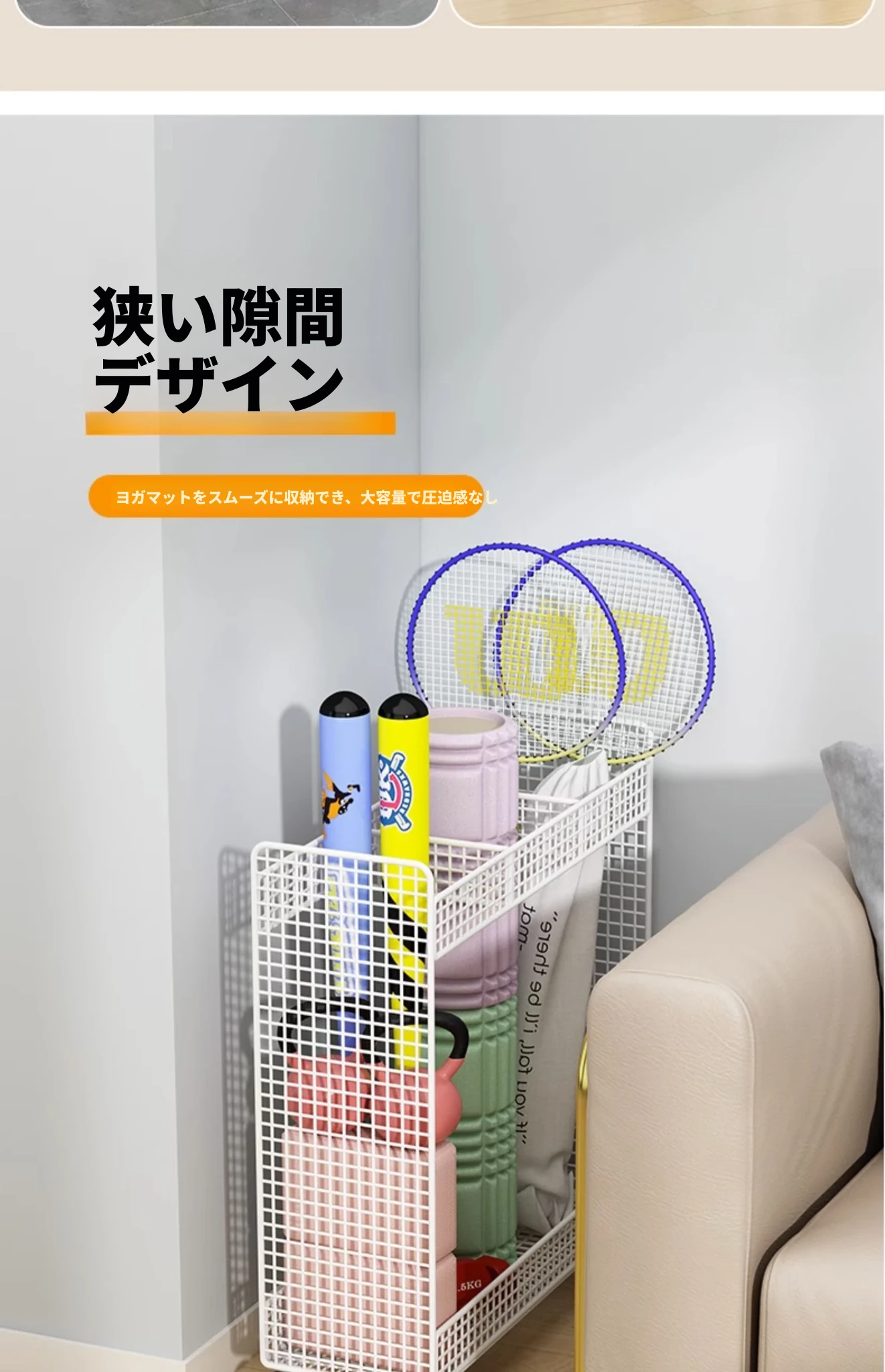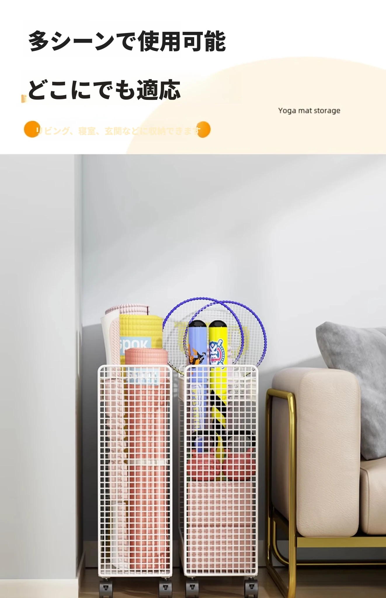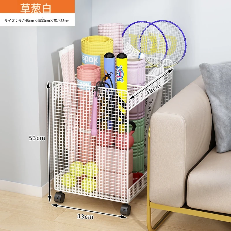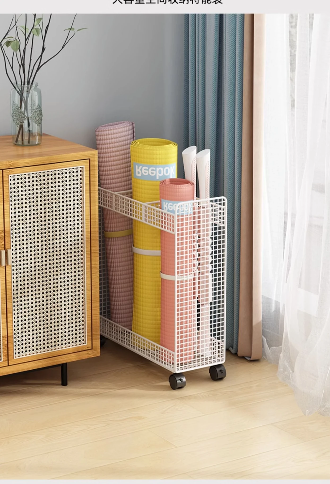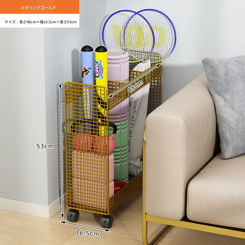 ヨガ収納バスケット 車輪付きフィットネス器具収納ラック フォームローラー用ツールバスケット 家庭用折りたたみスリム棚 すっきり整理して、快適なトレーニングスペースを実現!