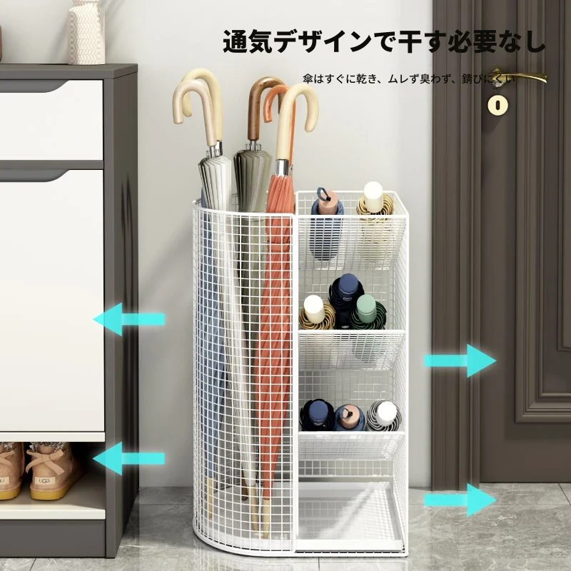 家庭用傘収納ラック - 雨の日も安心!玄関に最適な水切り傘立て。ホテルロビーや商業施設でも活躍する、傘をすっきりと収納できる便利アイテム!
