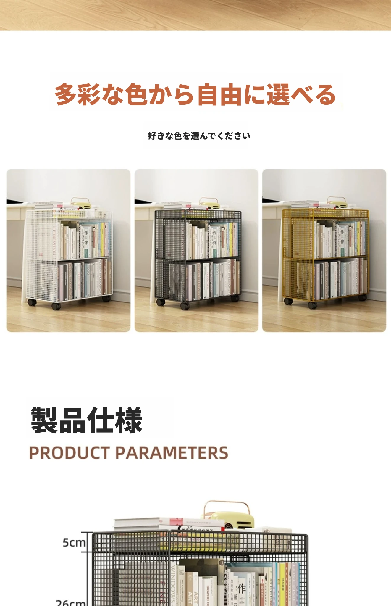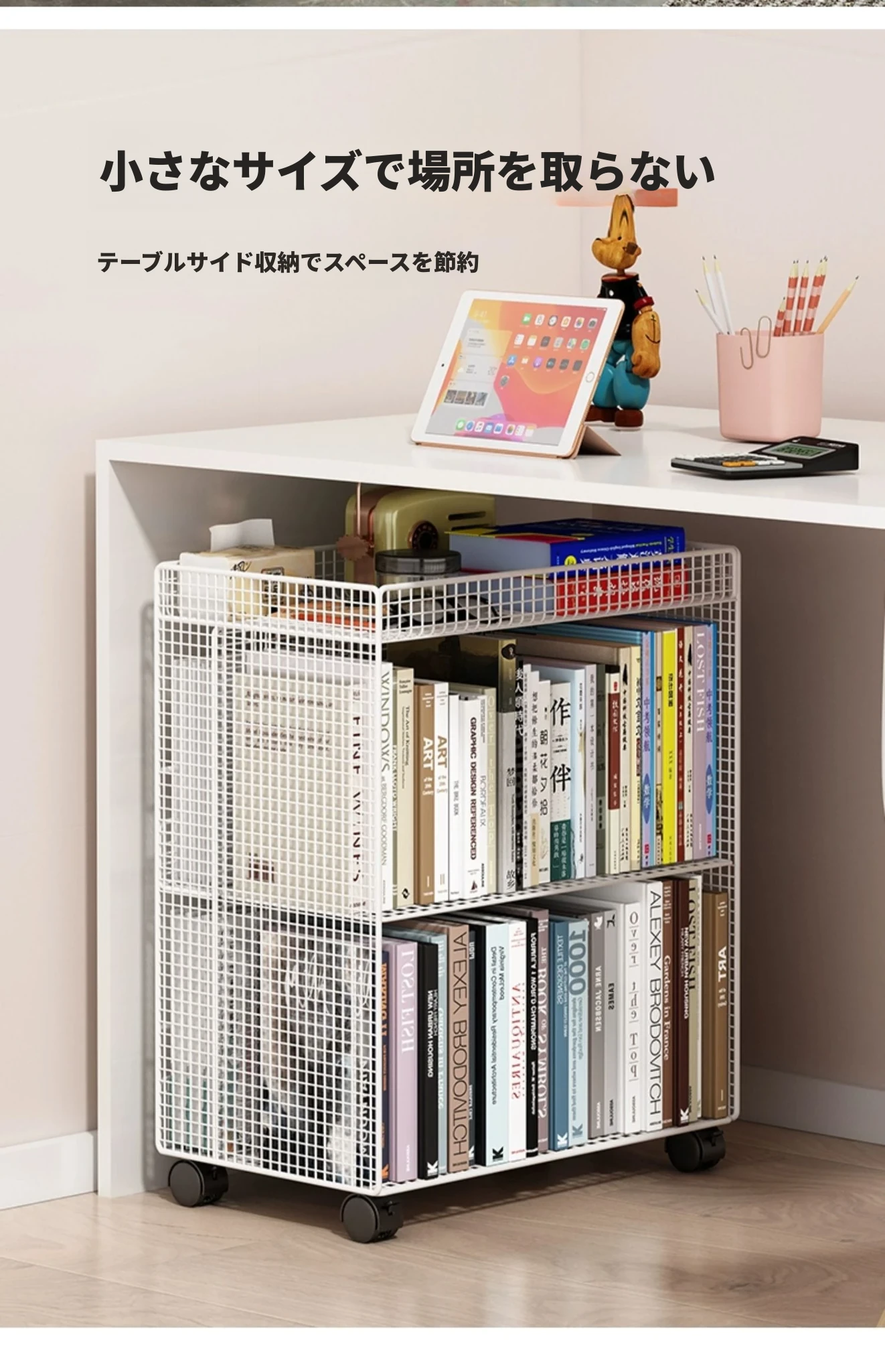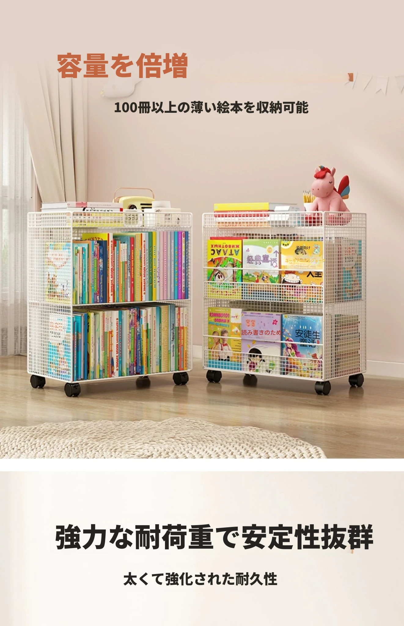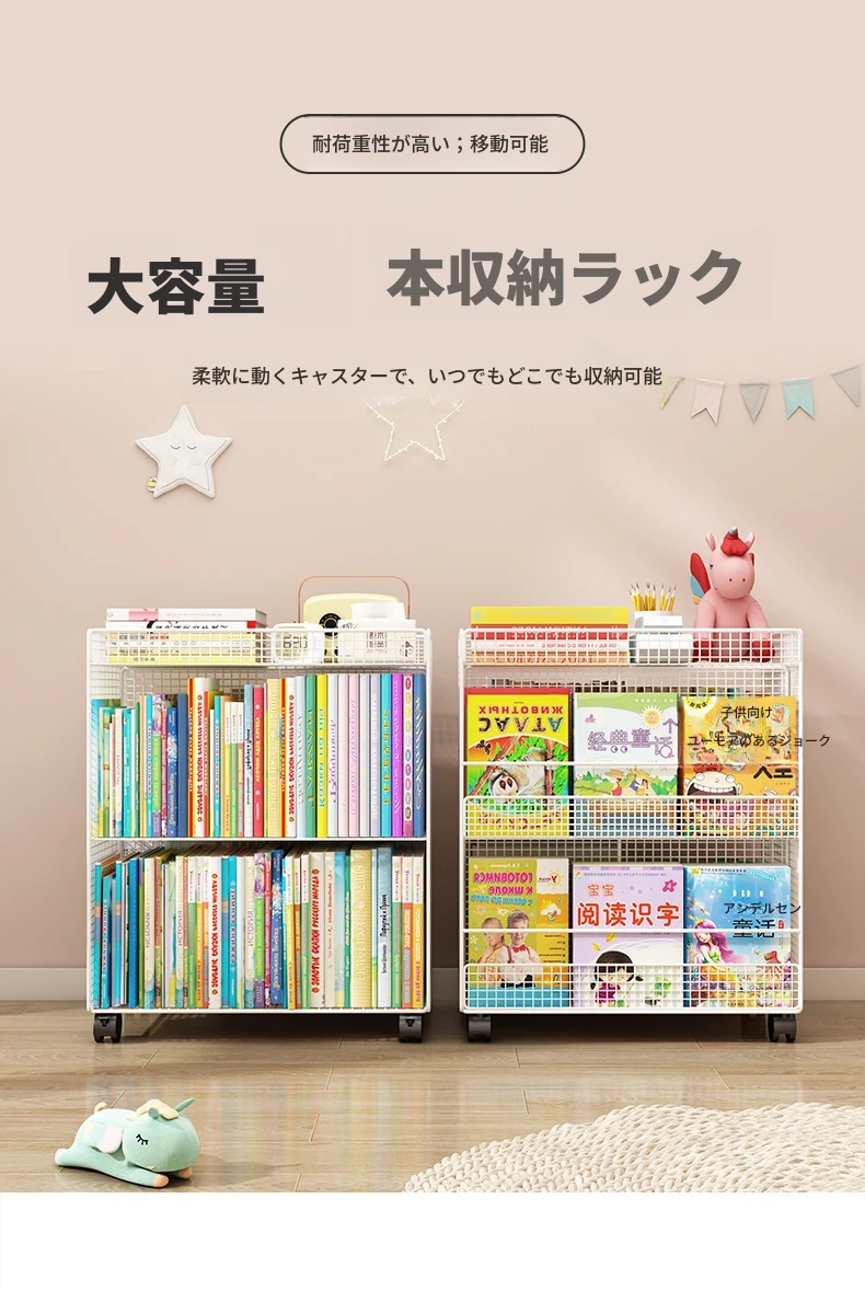 子供用移動式本棚 - 書デスクの横にぴったり!読書を楽しむための整理整頓に最適な収納ラック。おしゃれで機能的、学習環境をサポートします!