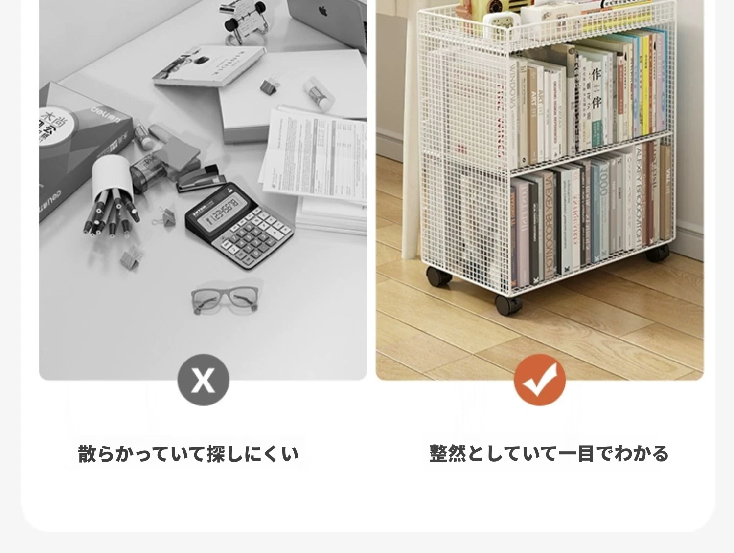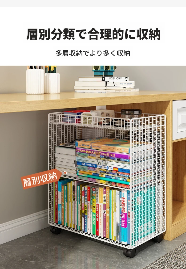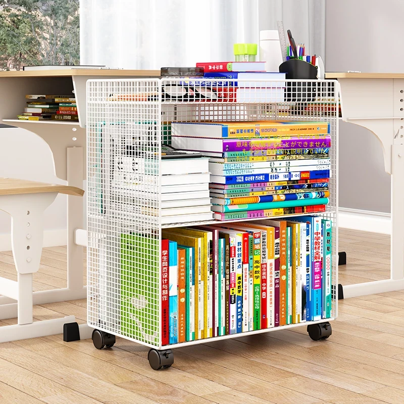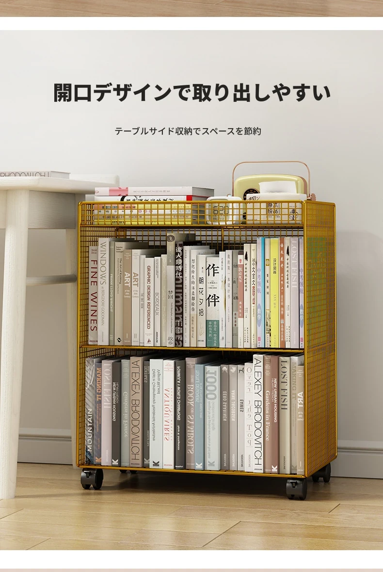 子供用移動式本棚 - 書デスクの横にぴったり!読書を楽しむための整理整頓に最適な収納ラック。おしゃれで機能的、学習環境をサポートします!