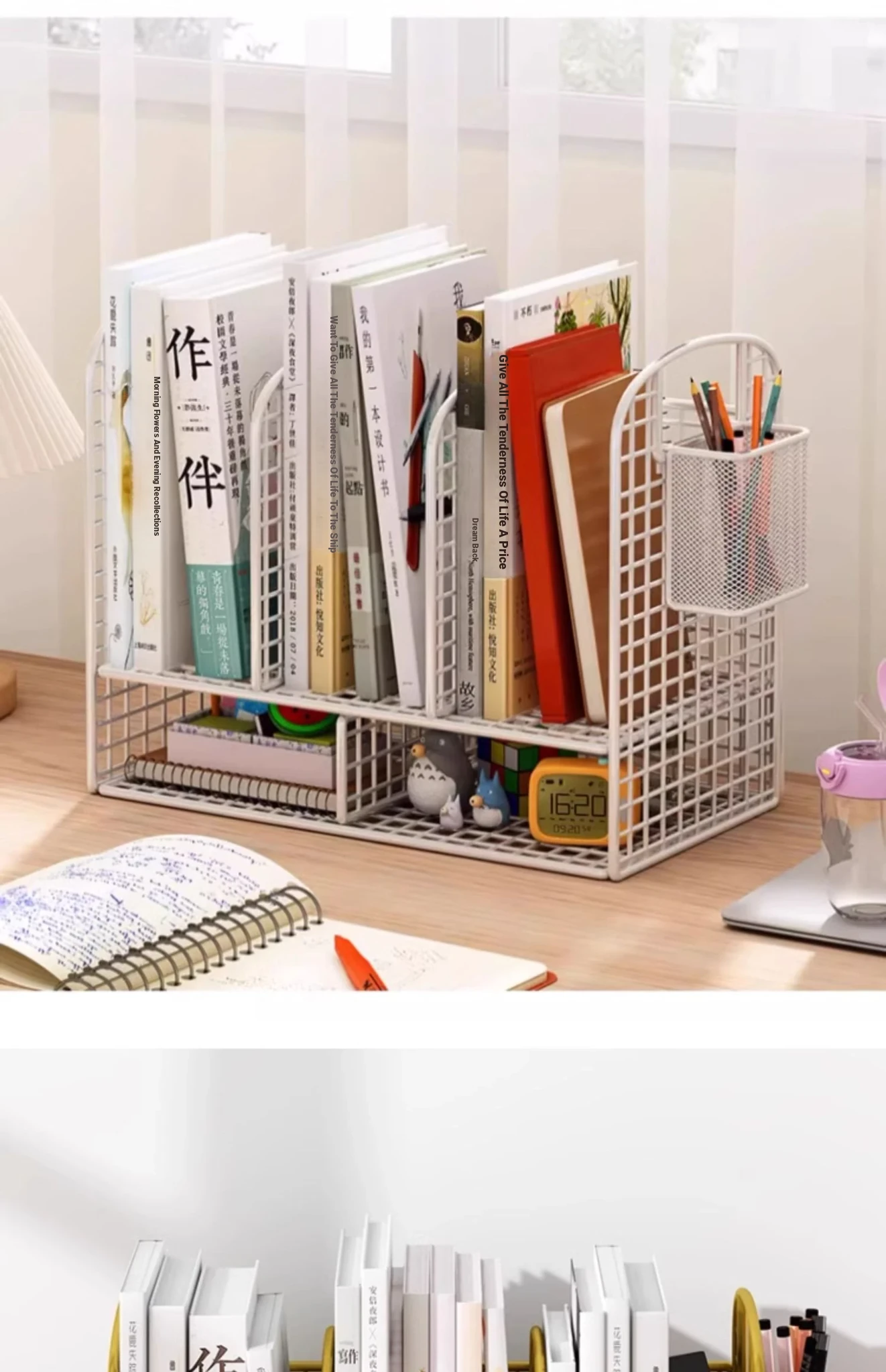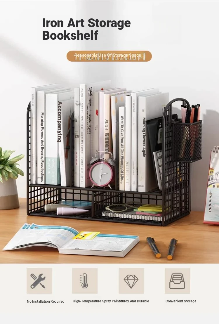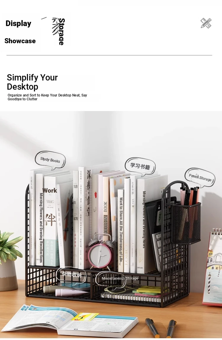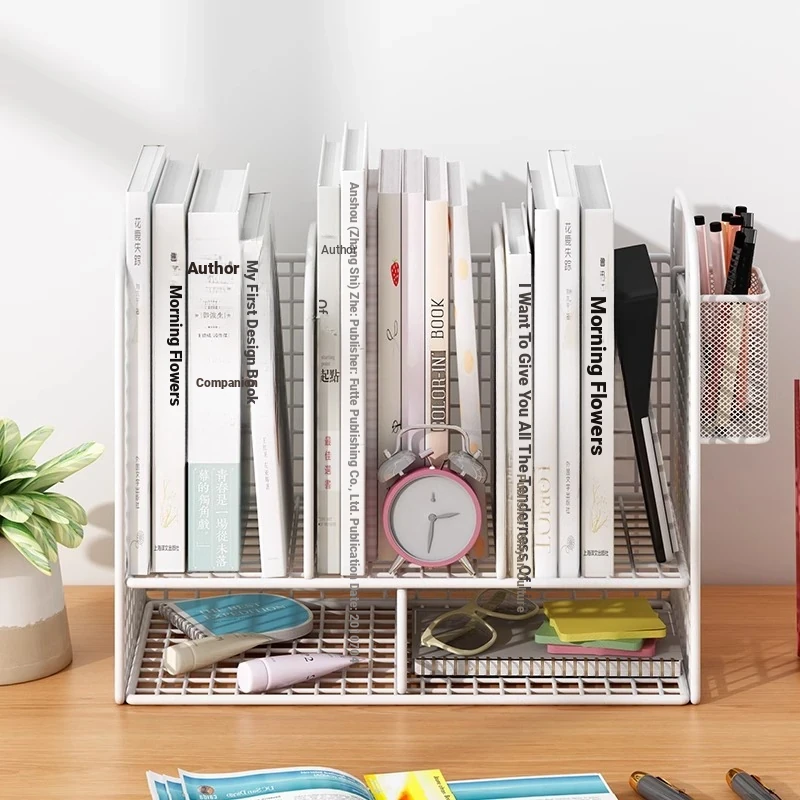 Kids' Desk Bookshelf & Desktop Organizer - Double-Layer Storage Rack for Books, Documents, and Stationery - Perfect for Home Office and Window Sills