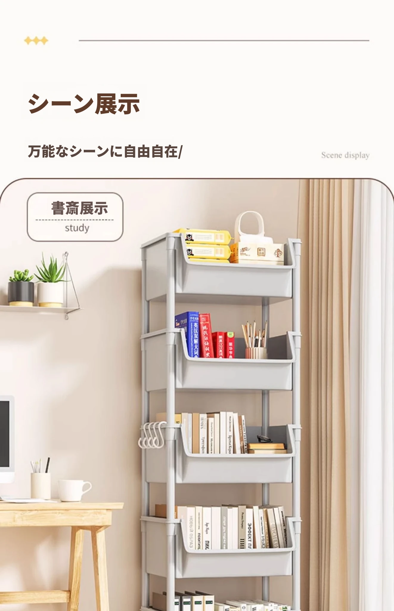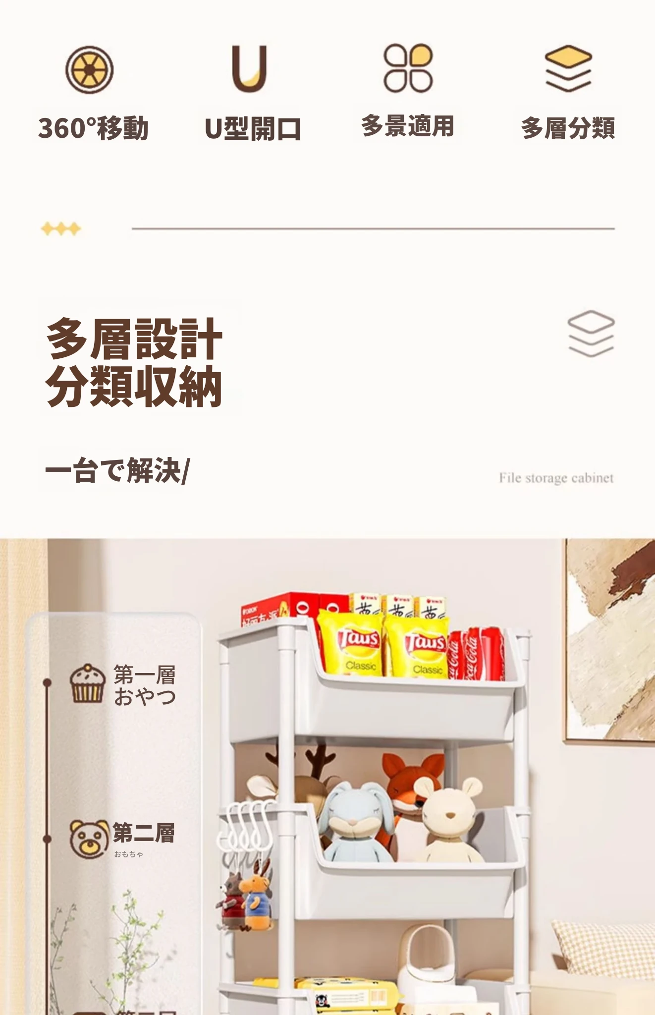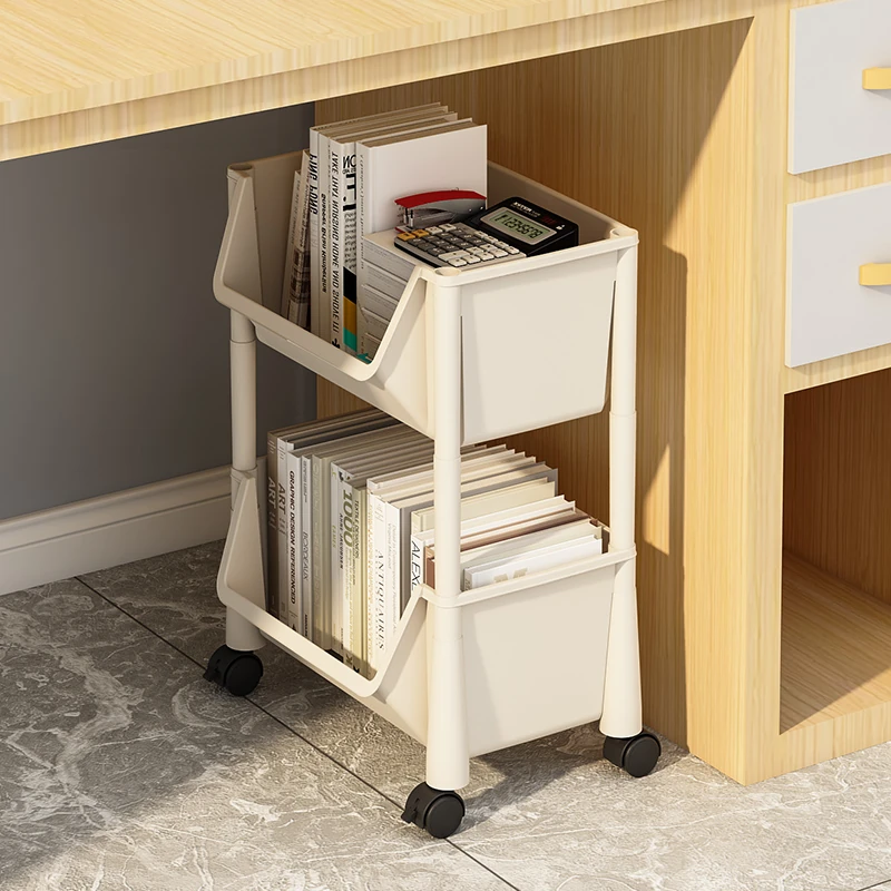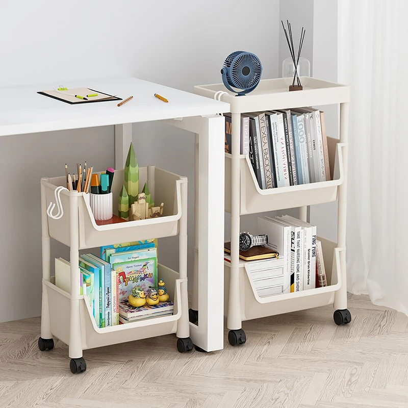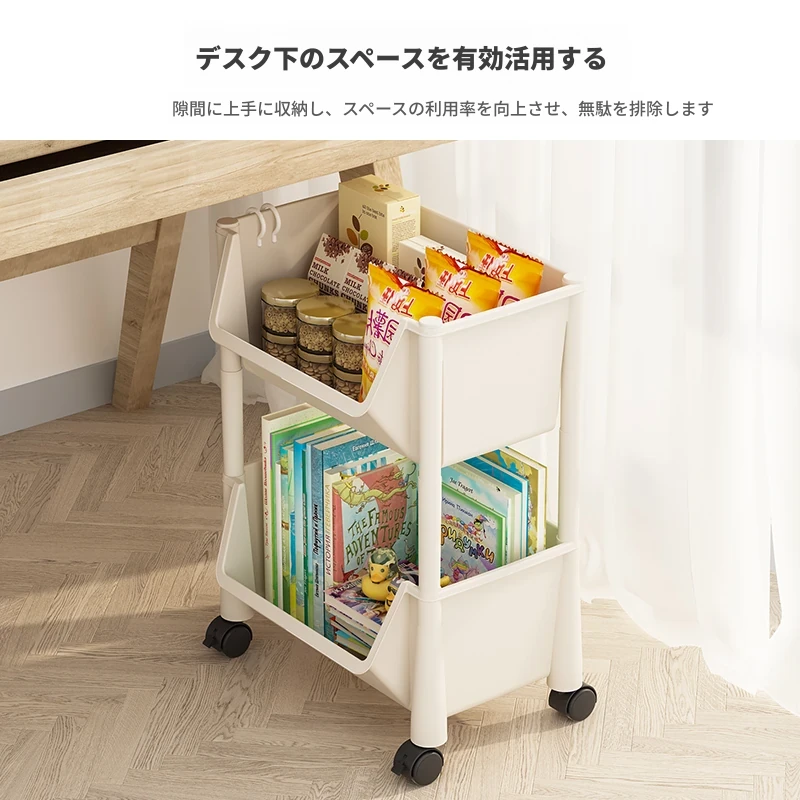 子供用フロア本棚 - リビングにぴったりなおもちゃやお菓子の収納ラック!移動可能な簡易トロリーで、整理整頓が楽々♪ お部屋がすっきり片付き、子供たちも大喜び!