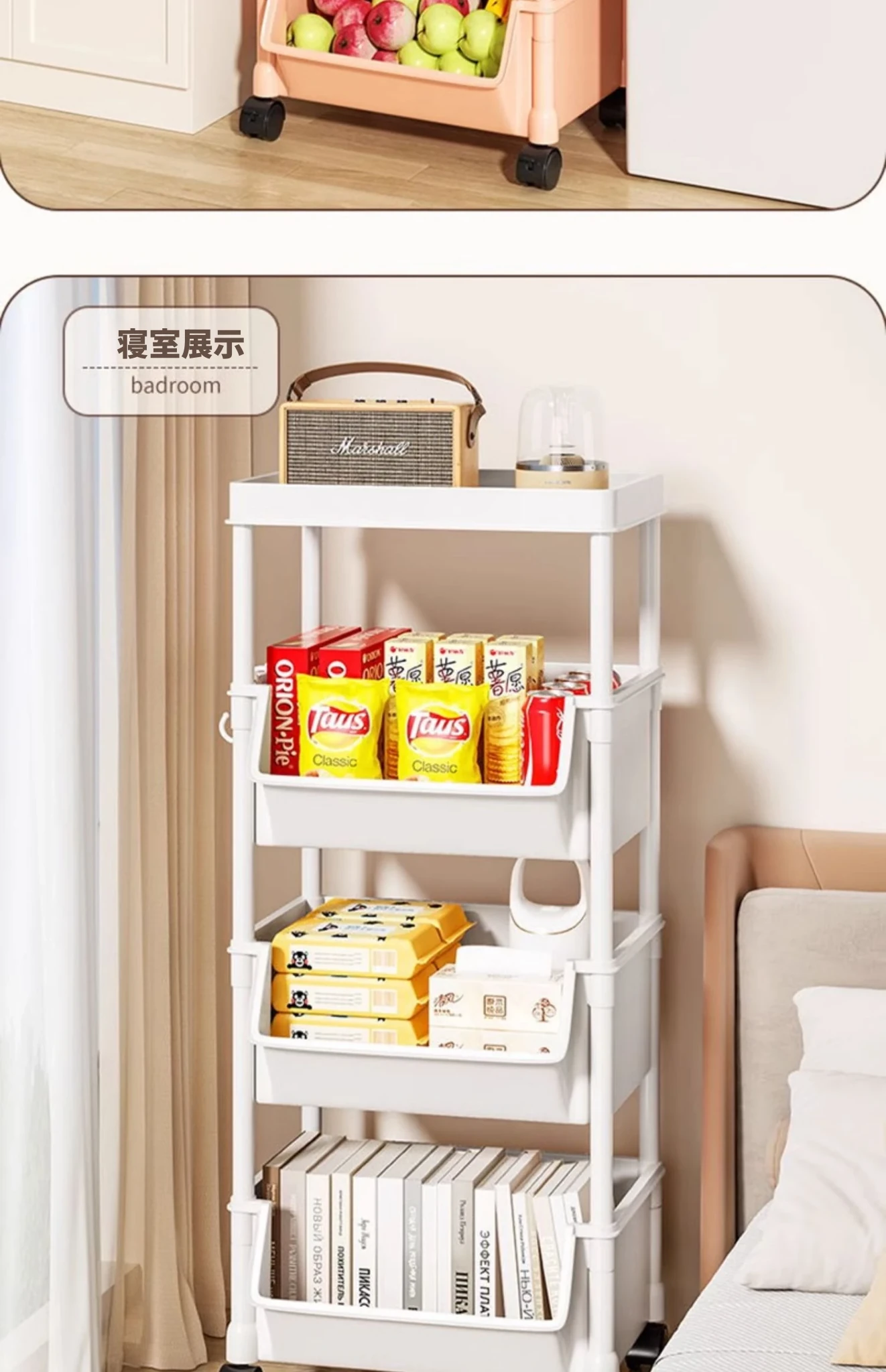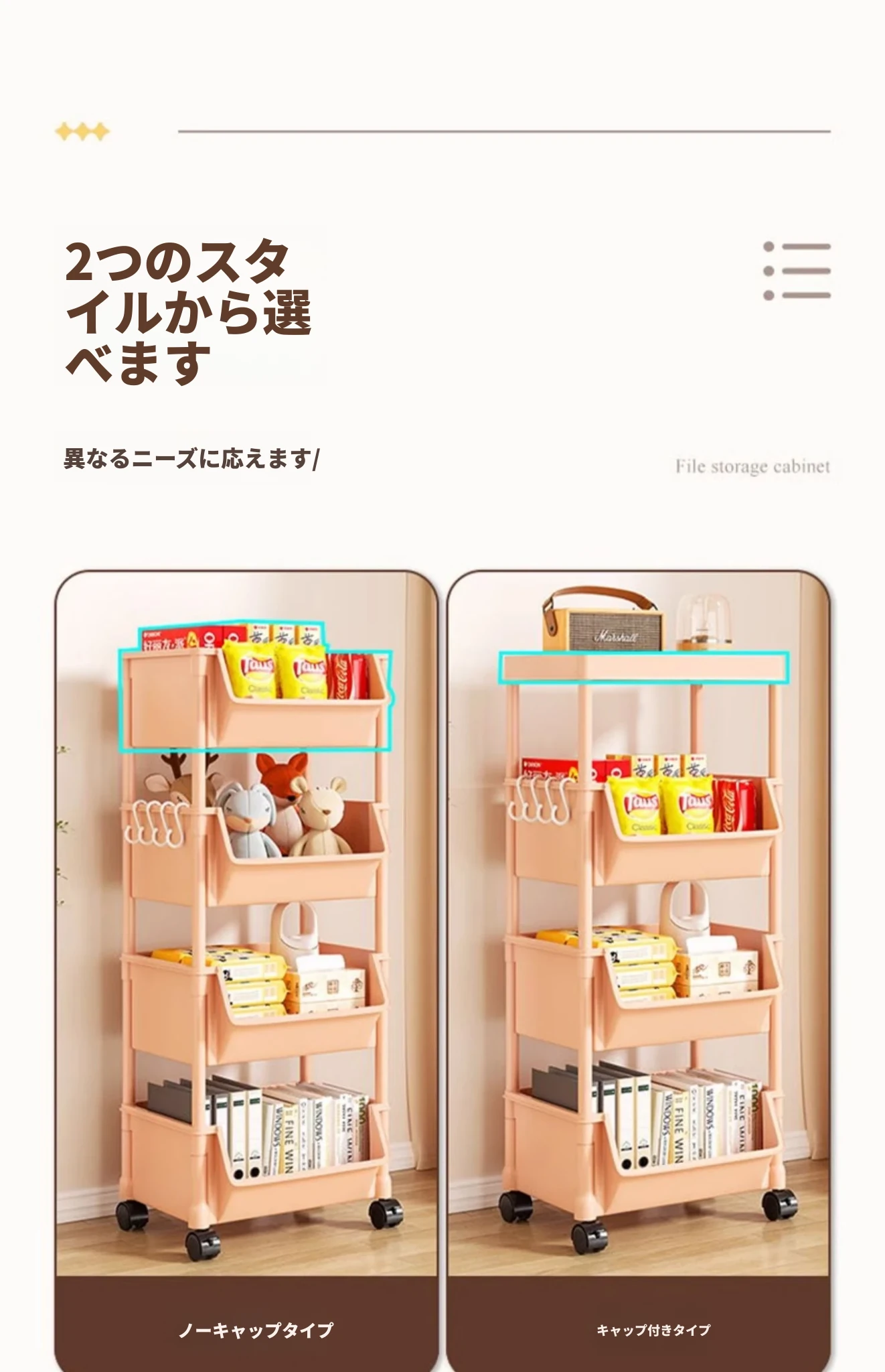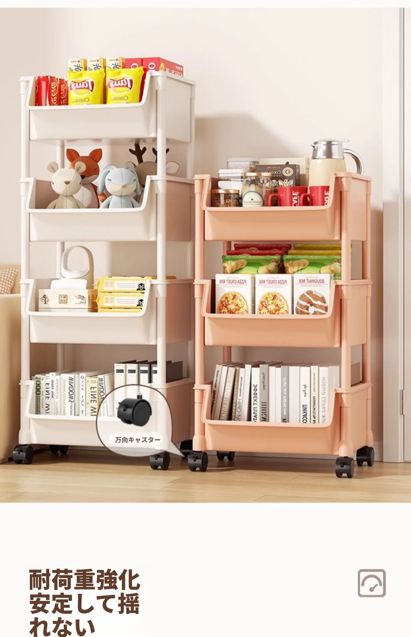 4層ピンク-開口タイプ【キャスター+フック】