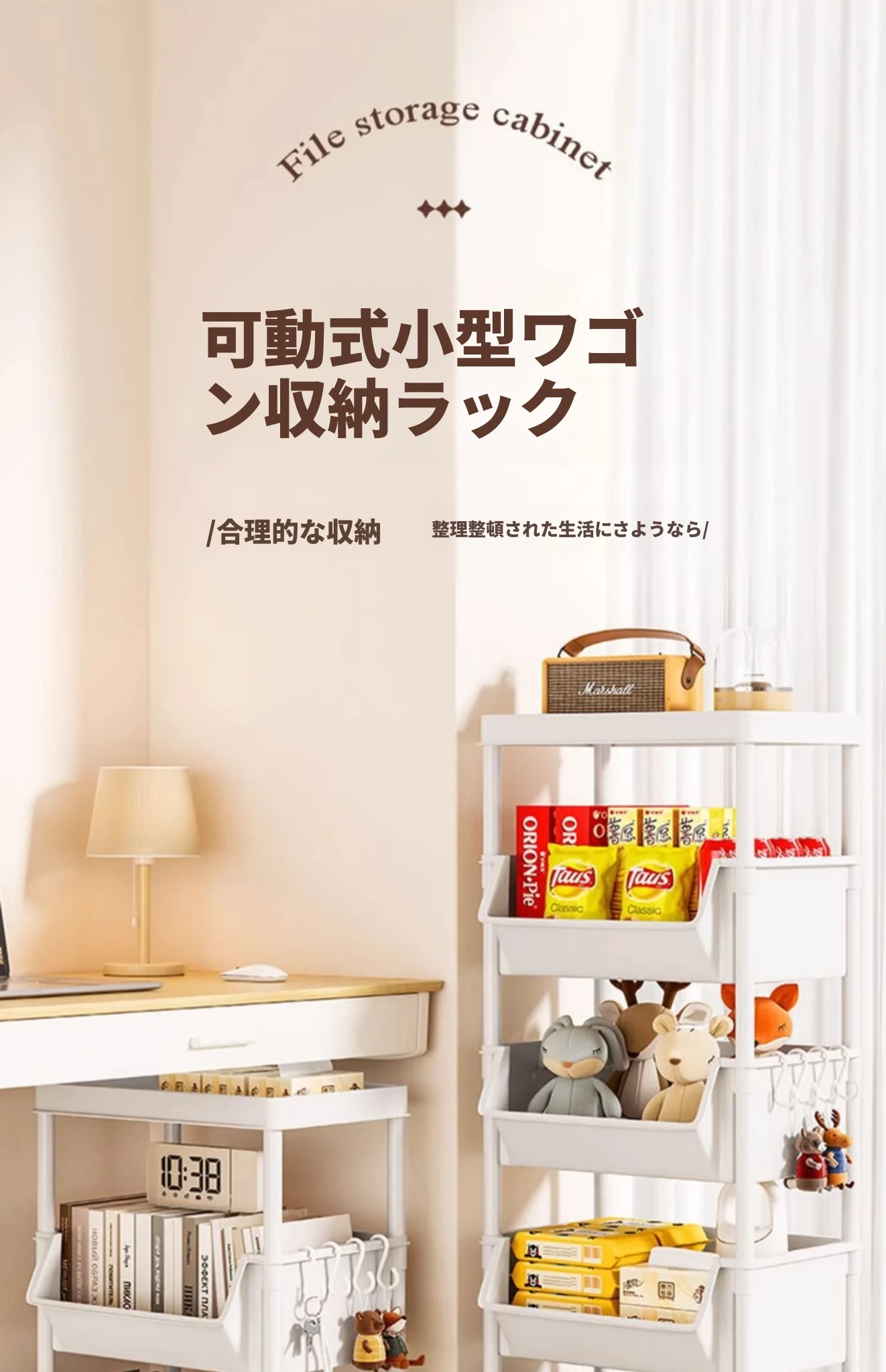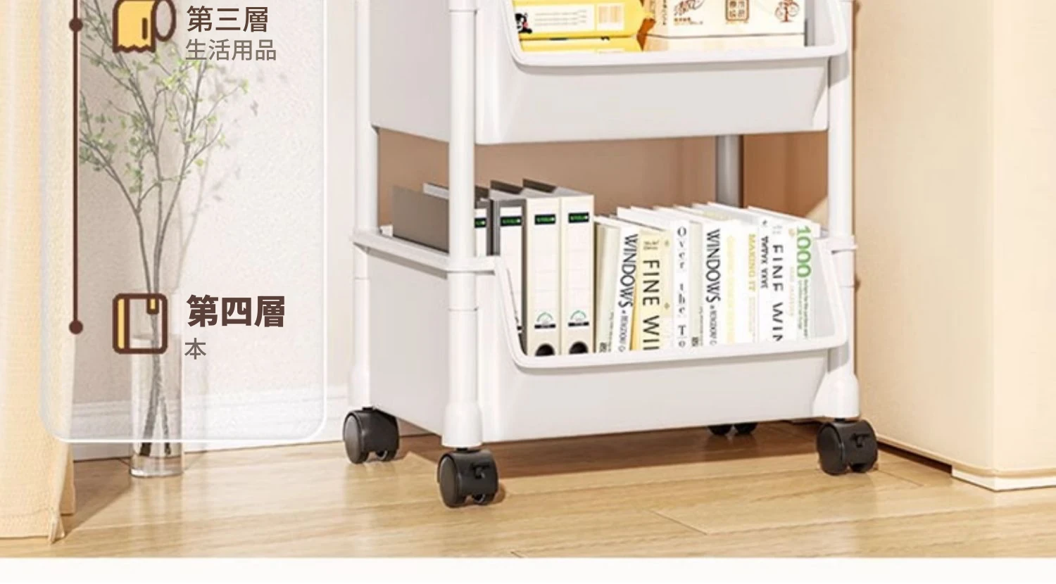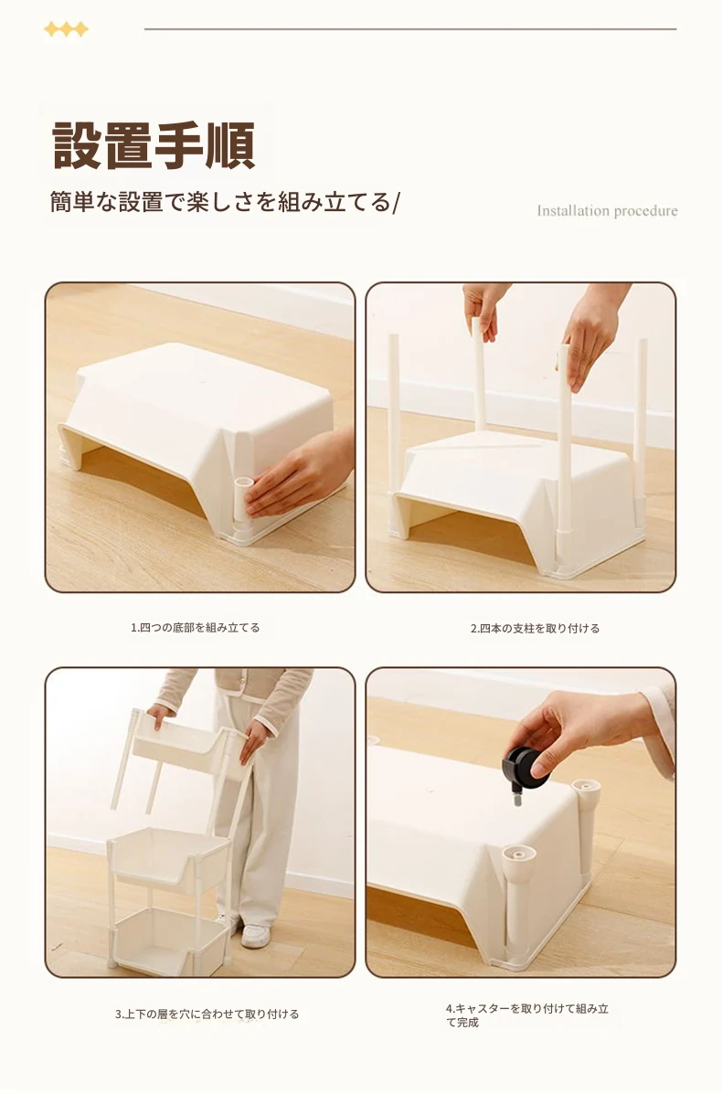 4層ホワイト-開口タイプ【キャスター+フック】
