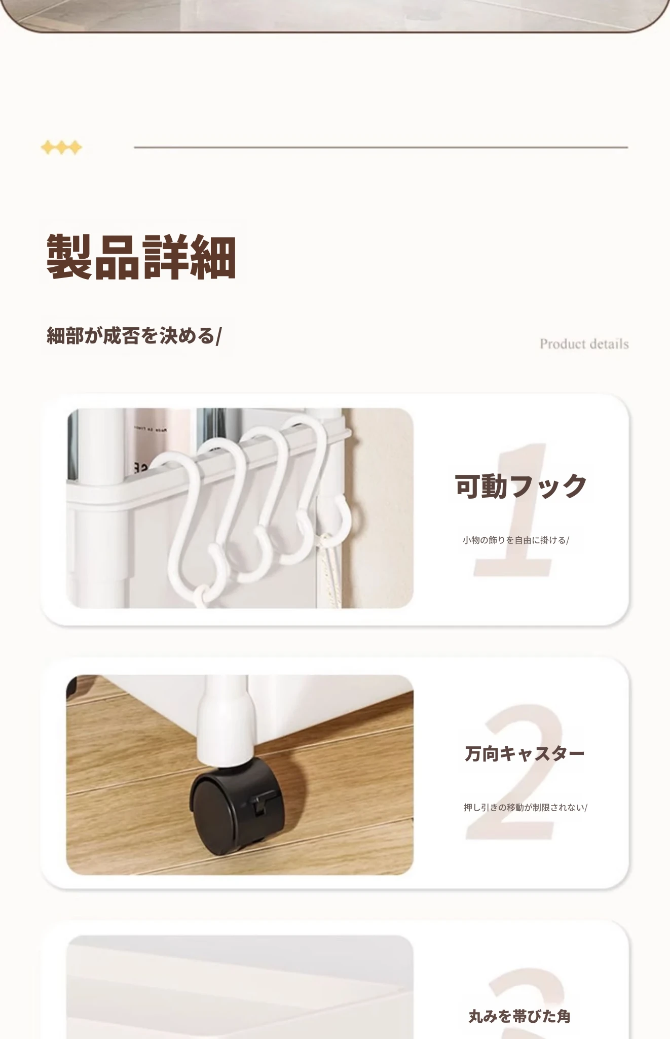 3層ホワイト-平頂タイプ【キャスター+フック】