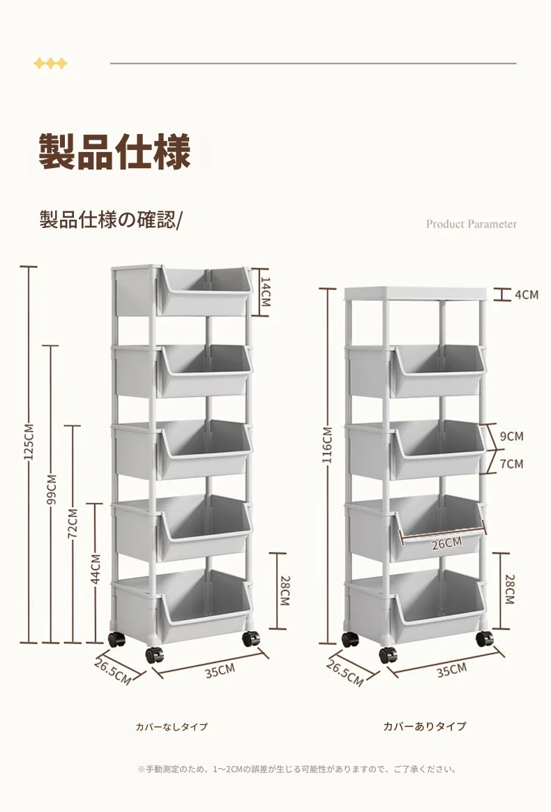 5層グレー-開口タイプ【キャスター+フック】