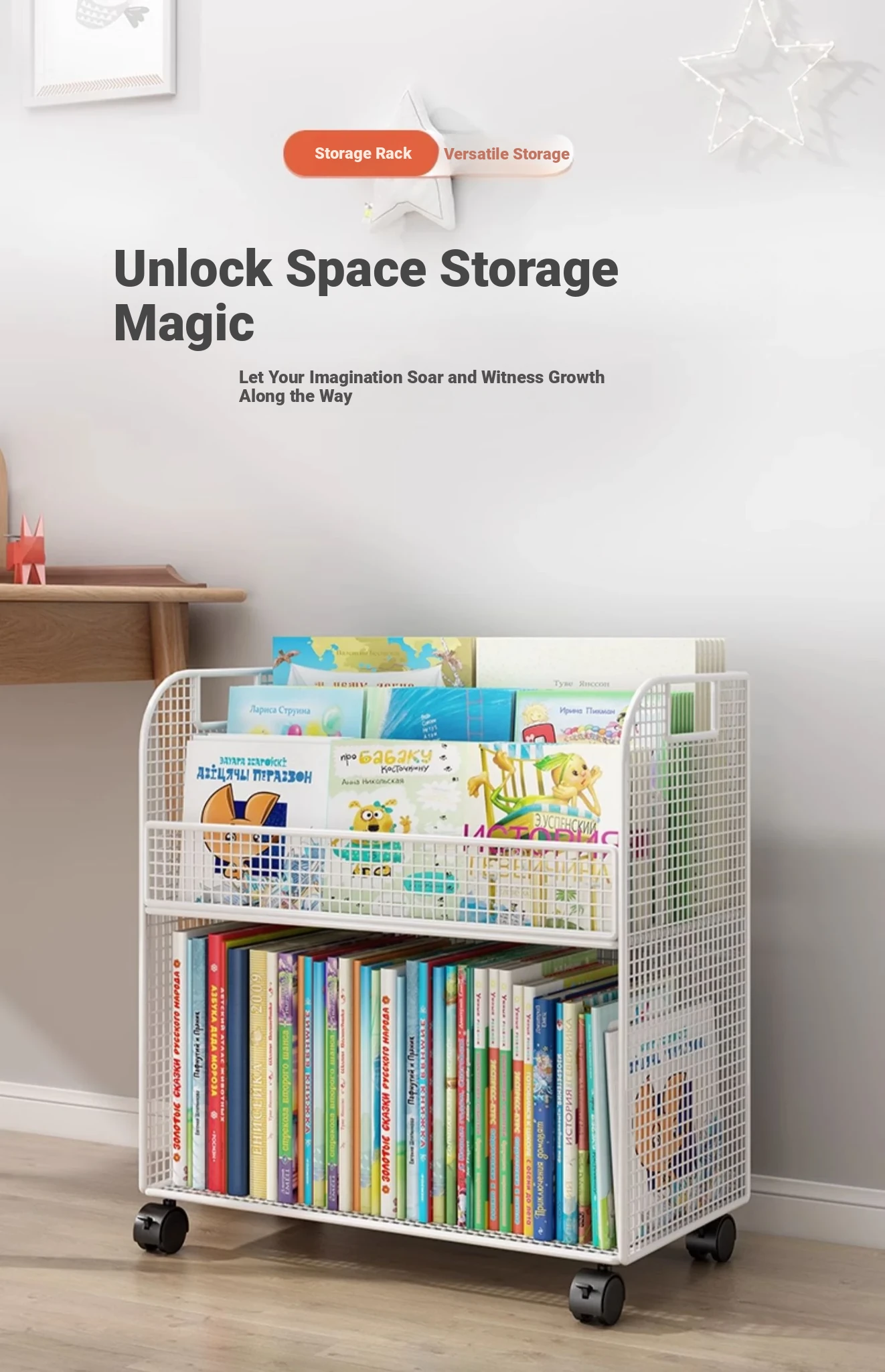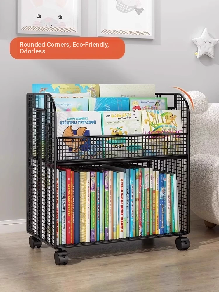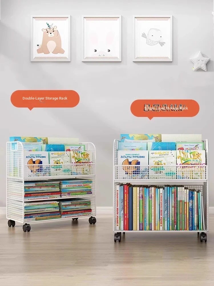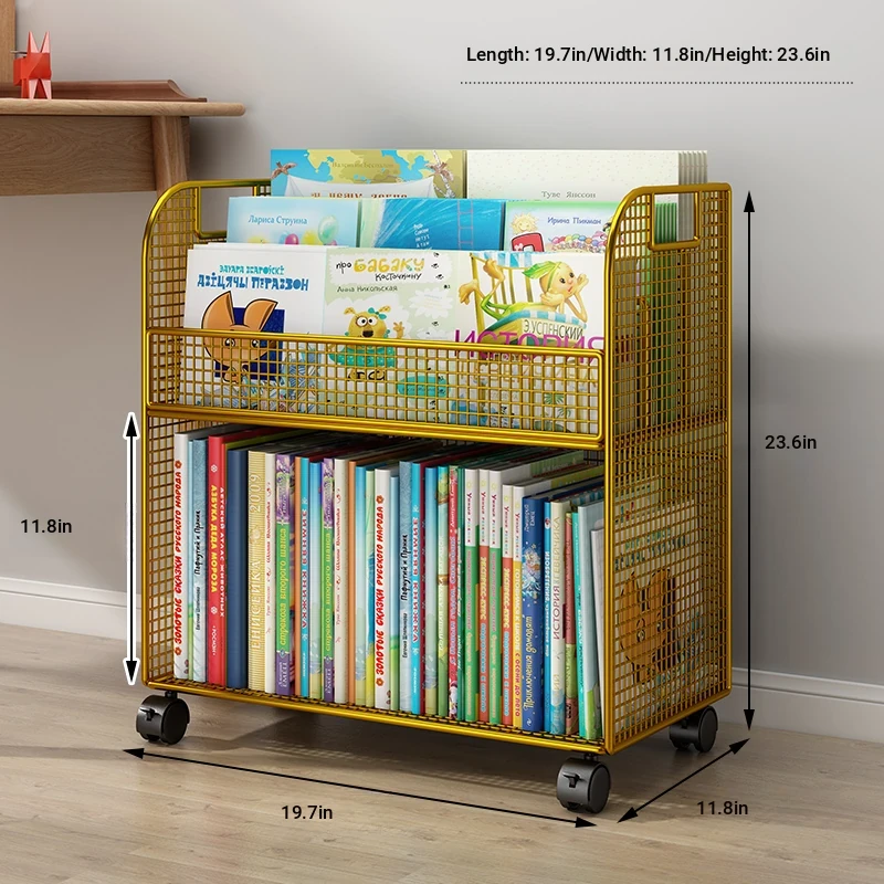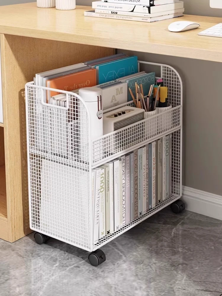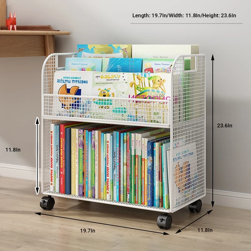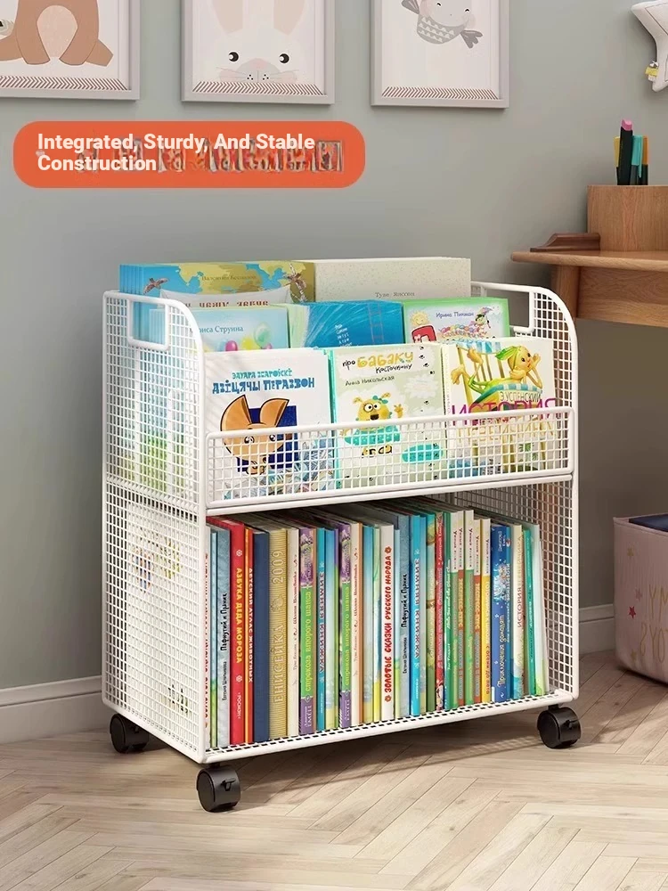 Kids' Mobile Bookshelf with Wheels - Spacious Floor Storage Organizer for Books, Perfect for Desk Side, Stylish and Functional Bookcase for Children's Rooms
