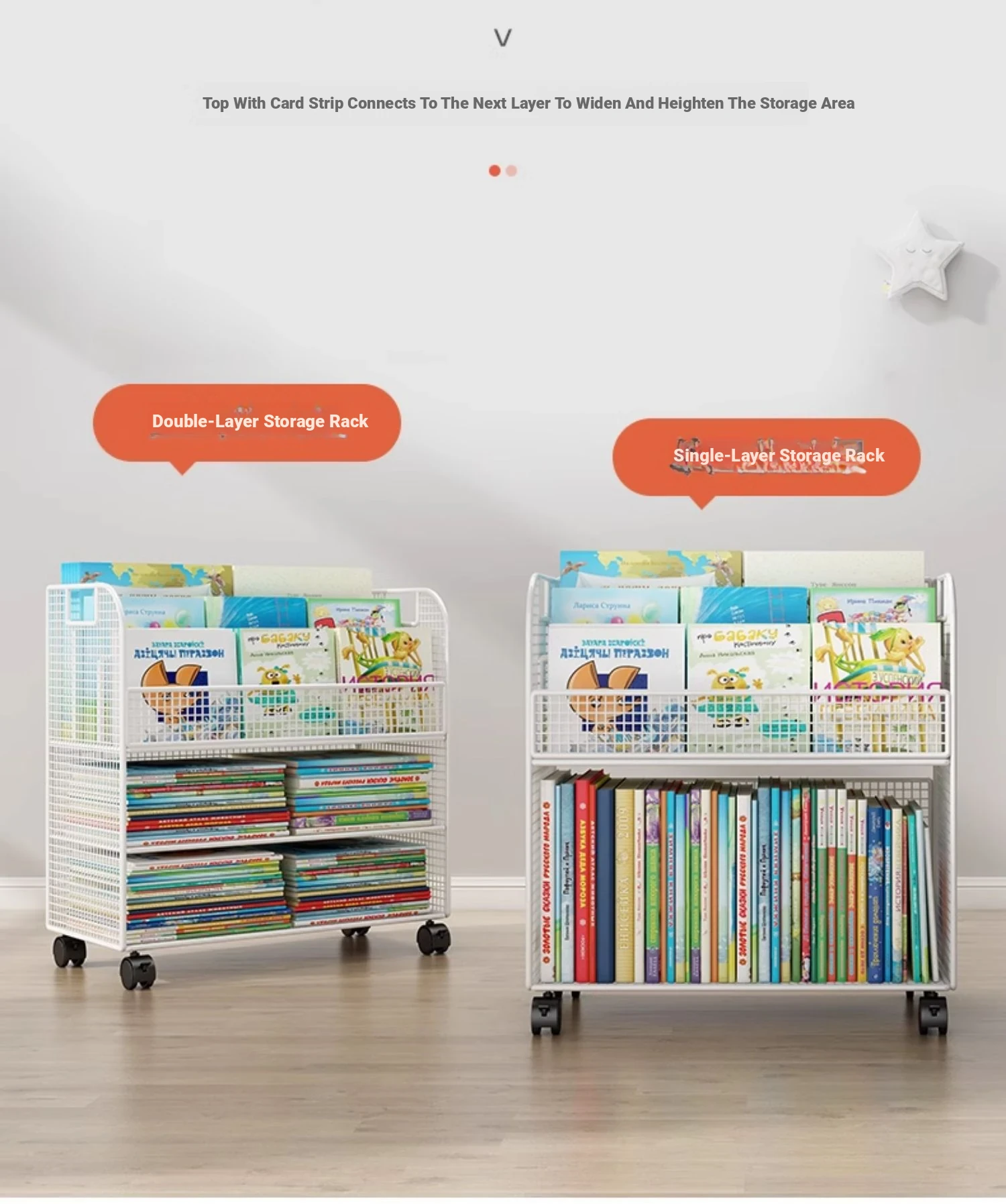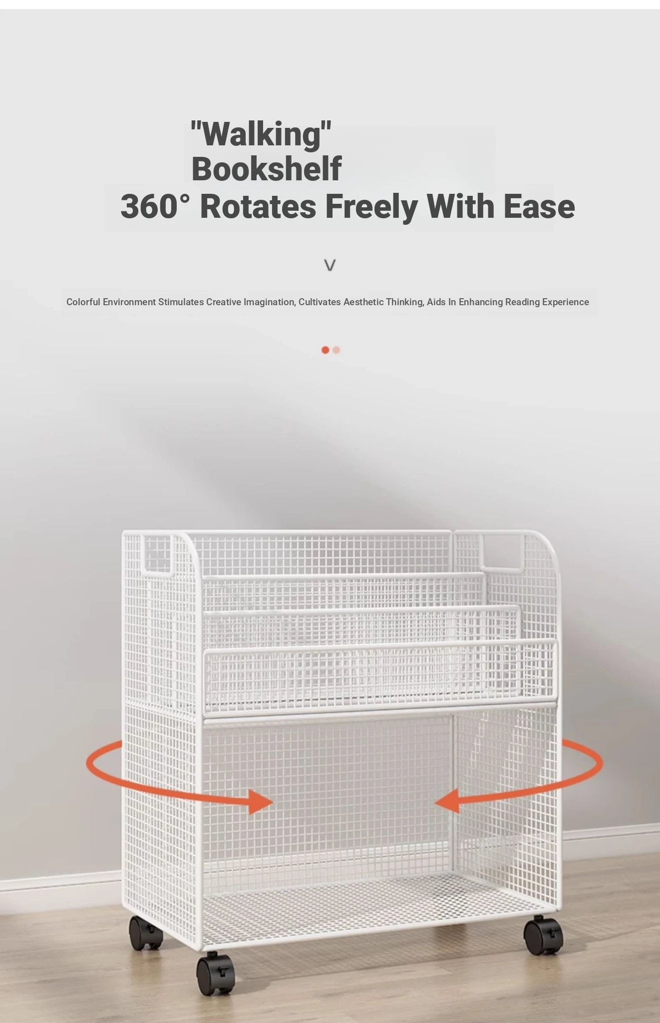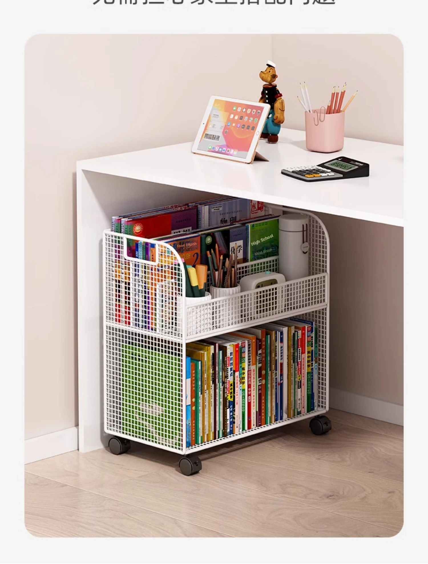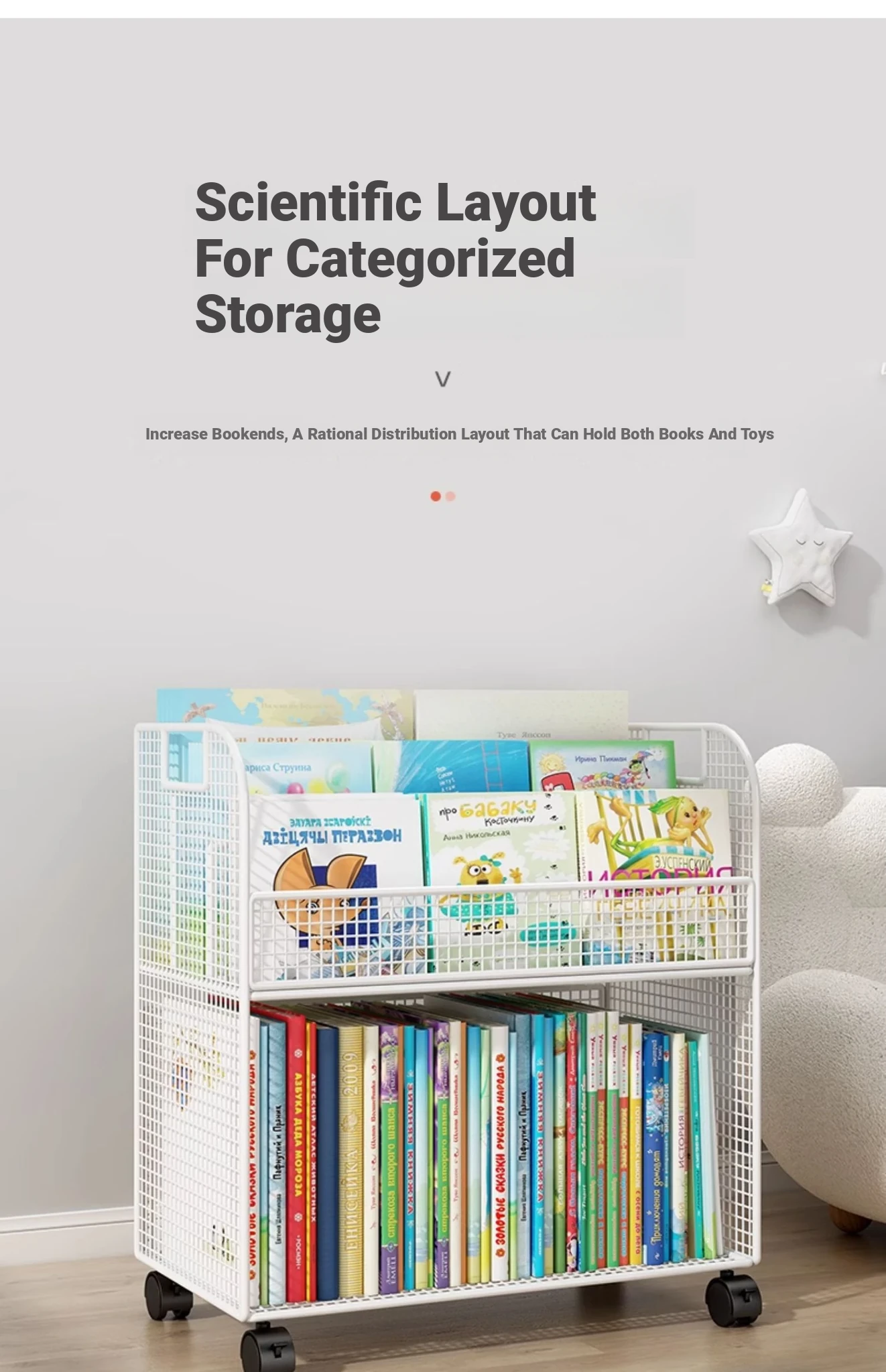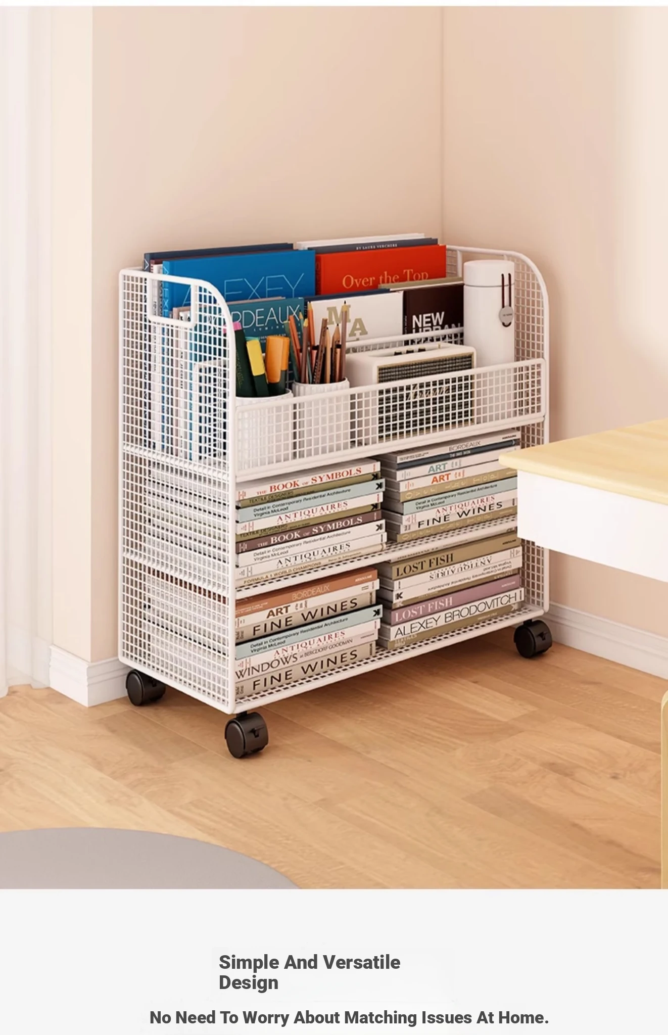 Kids' Mobile Bookshelf with Wheels - Spacious Floor Storage Organizer for Books, Perfect for Desk Side, Stylish and Functional Bookcase for Children's Rooms