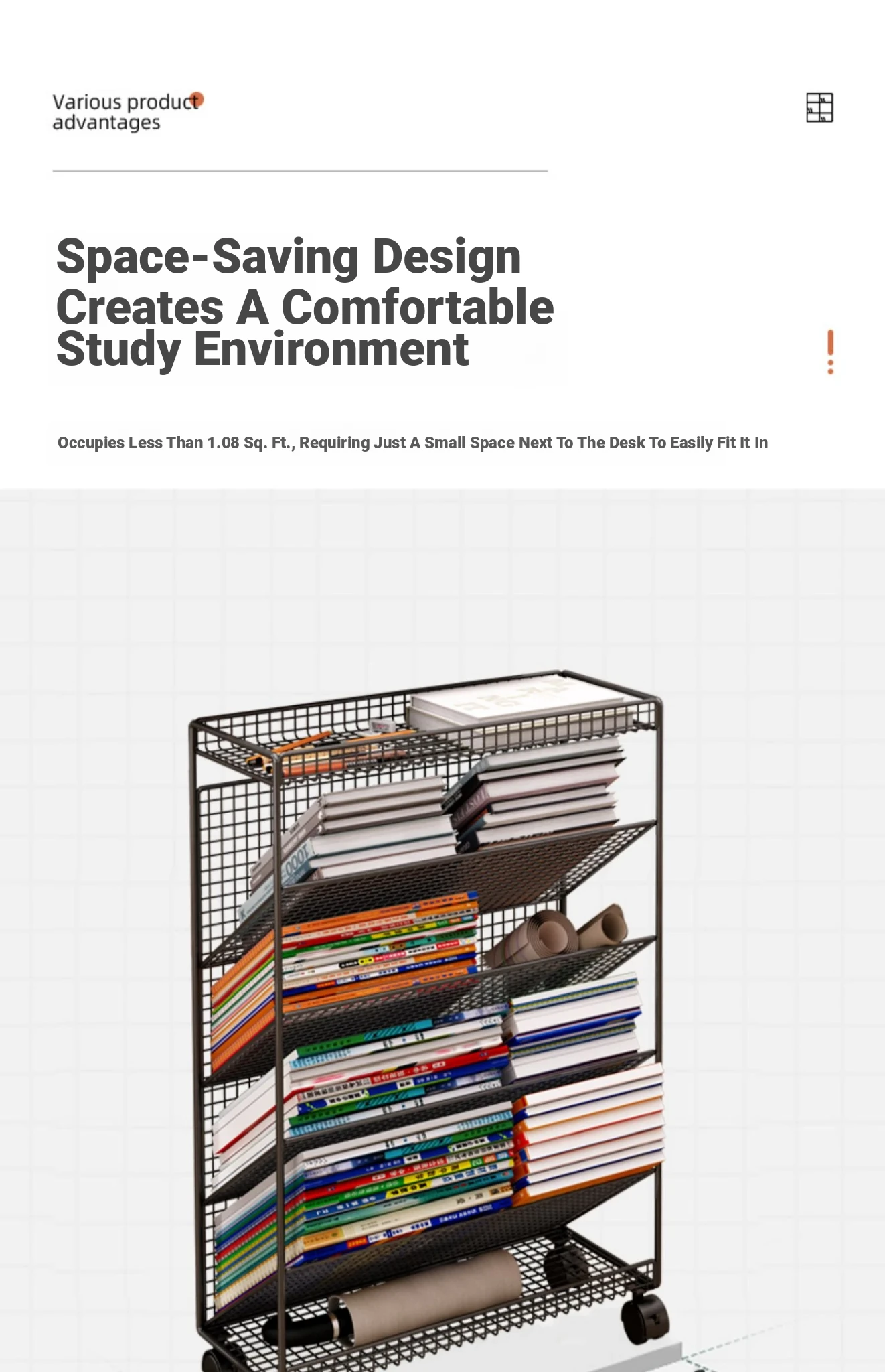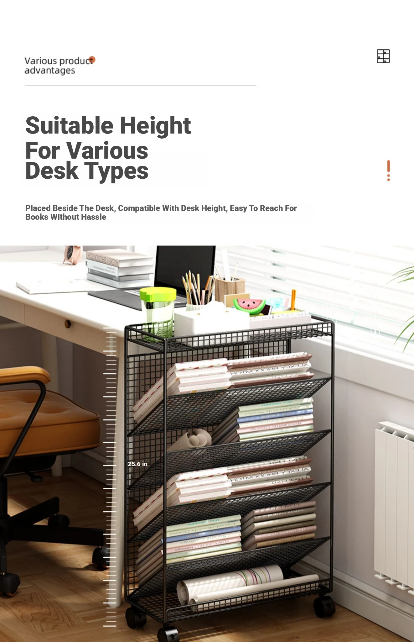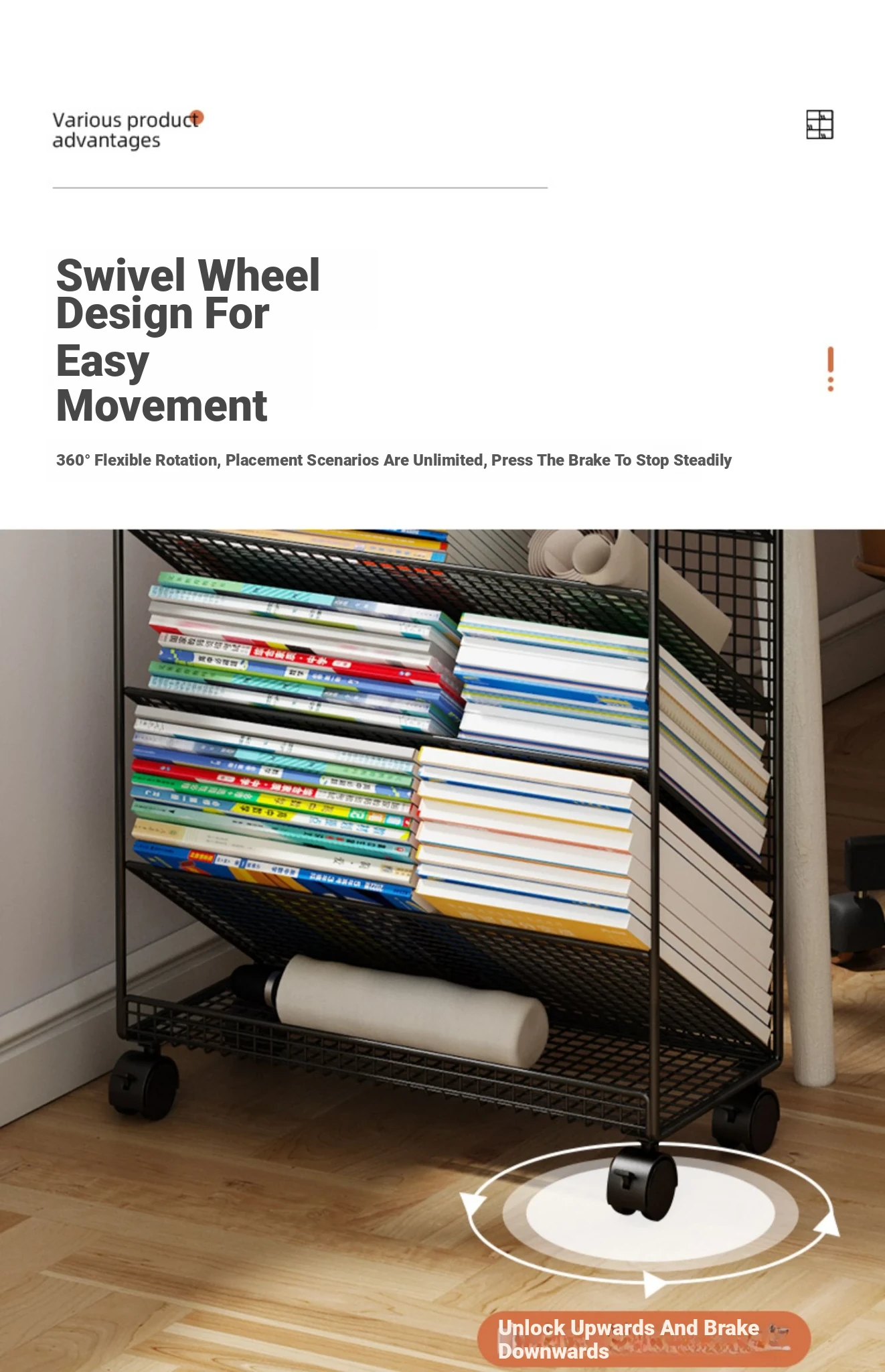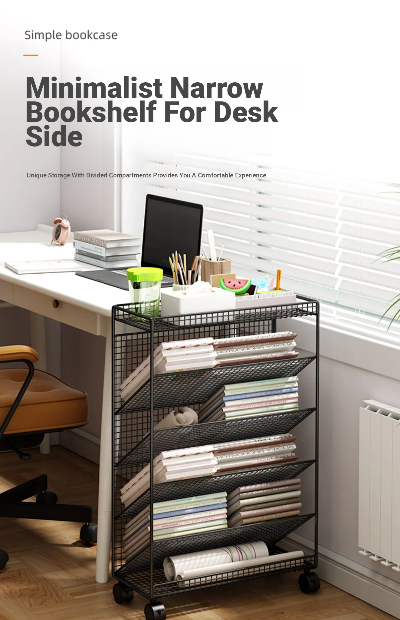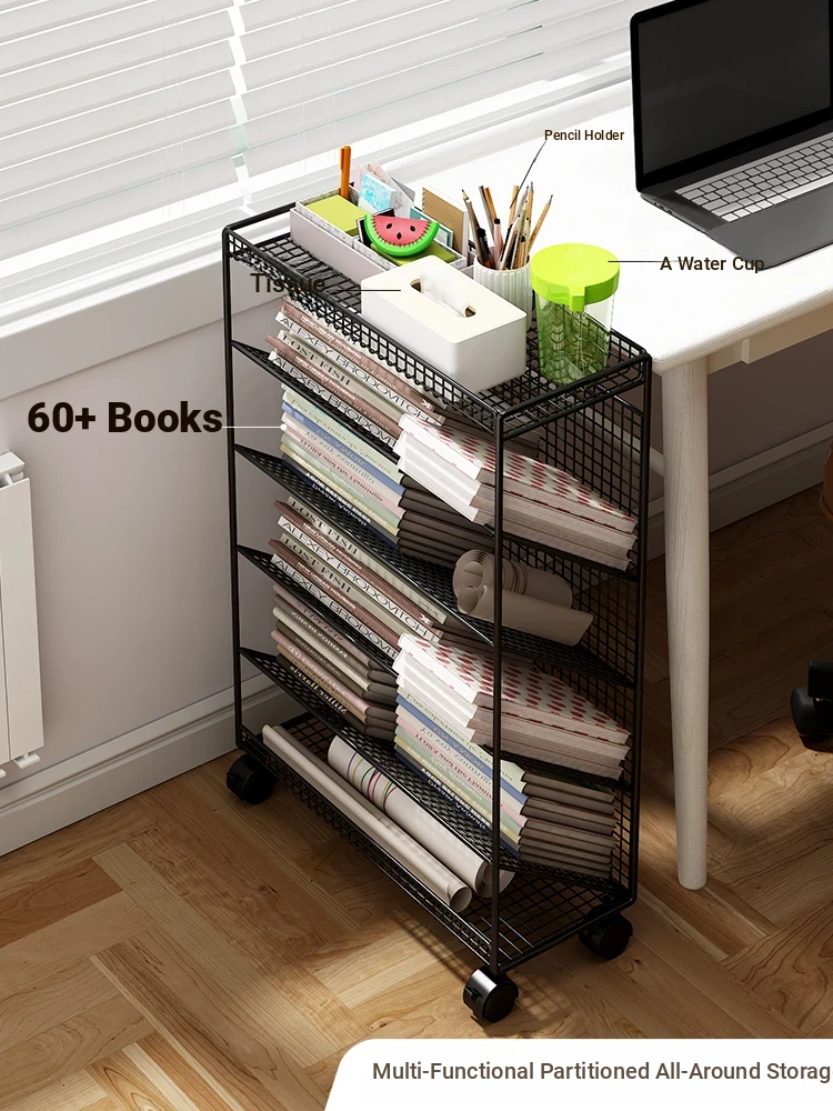 Kids' Rolling Bookshelf - Compact Floor Storage Rack for Desks, Easy to Move, Ideal for Organizing Books and Supplies, Perfect for Children's Study Area