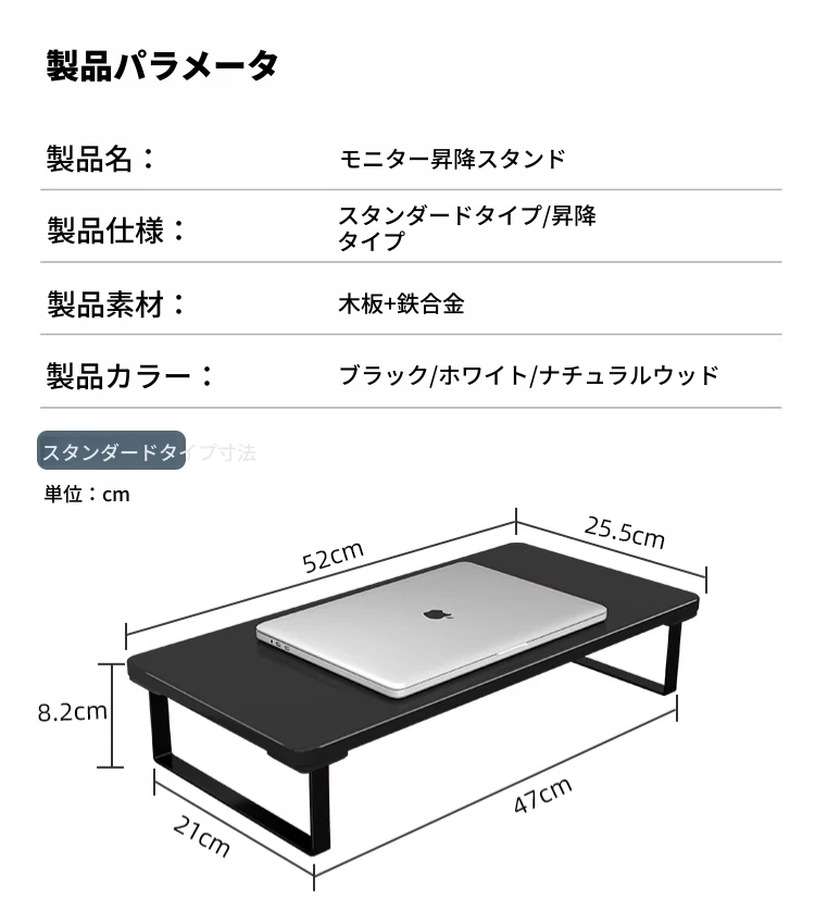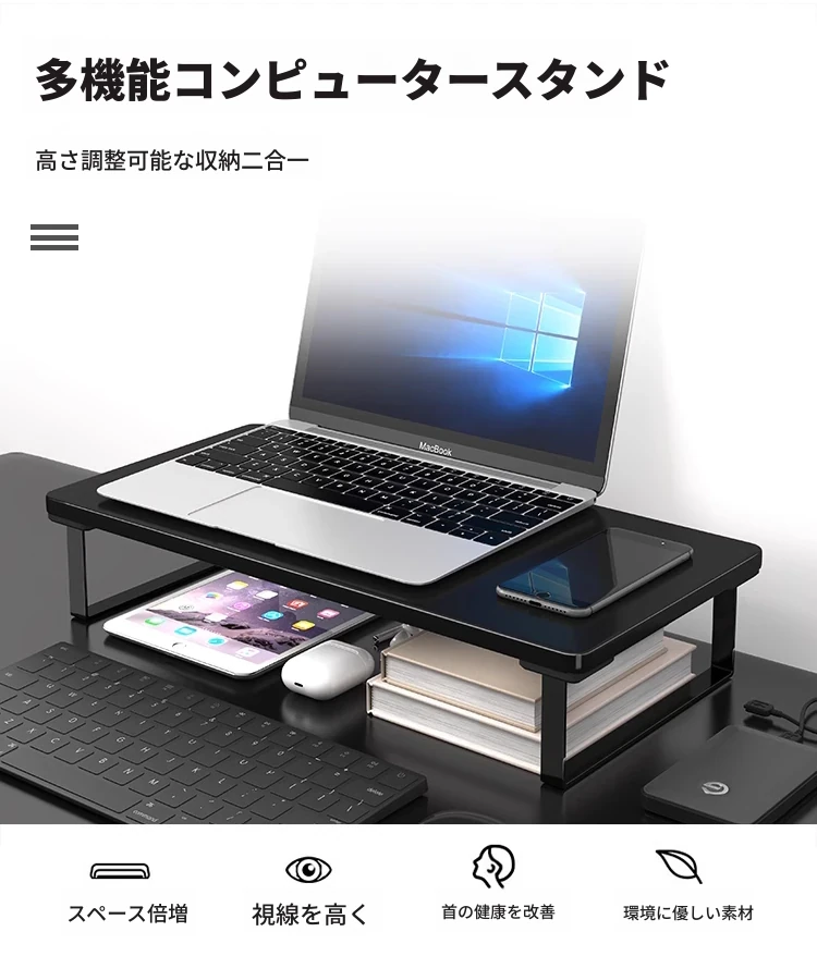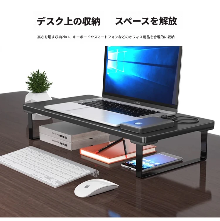 オフィス用ノートパソコンスタンド - ディスプレイを高くし、快適な作業環境を実現!デスク上のスペースを有効活用できる収納付きのスタンドです。姿勢を改善し、作業効率をアップさせましょう!