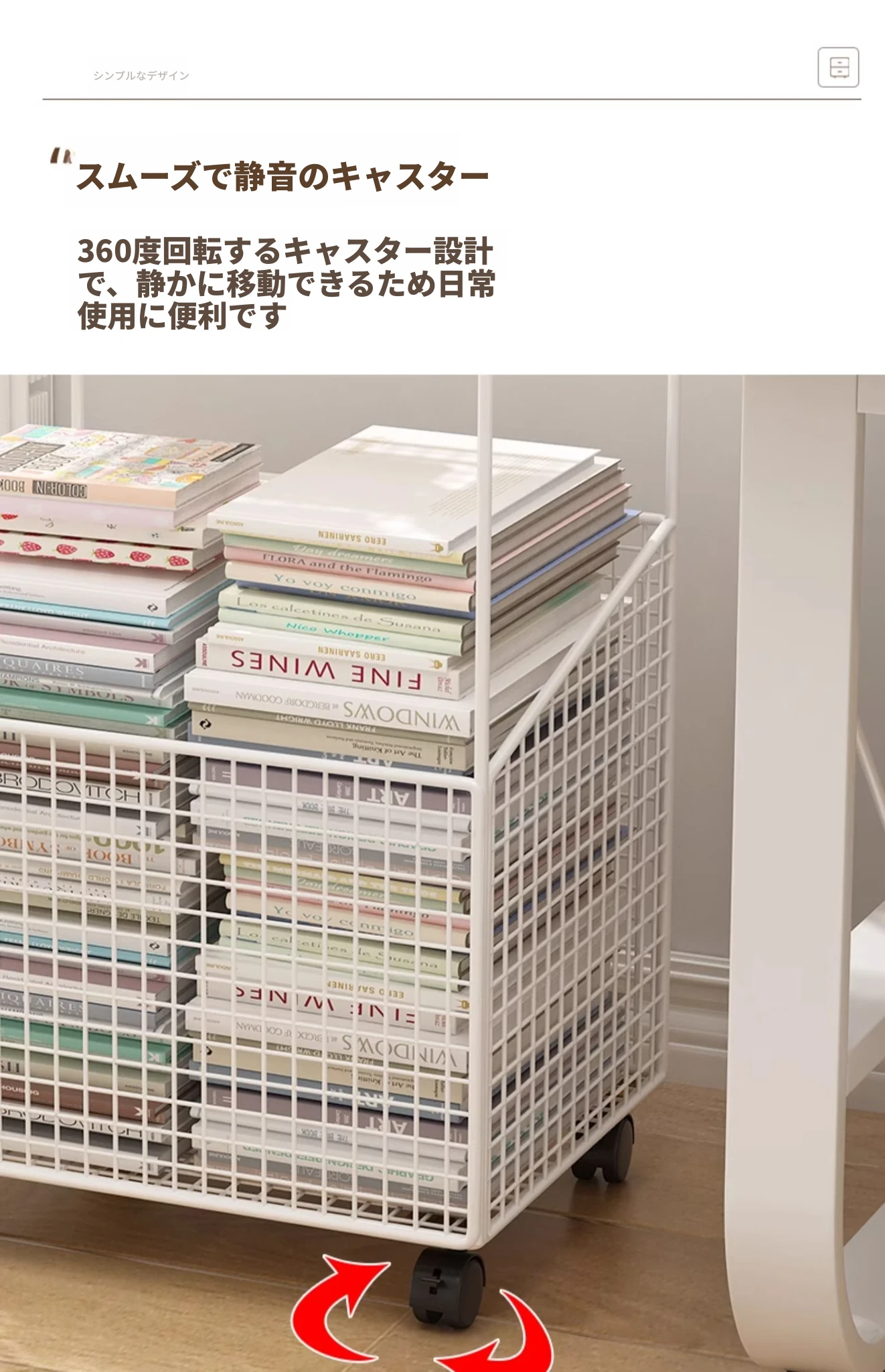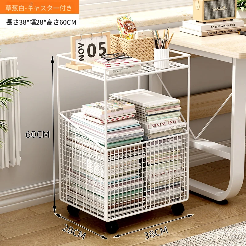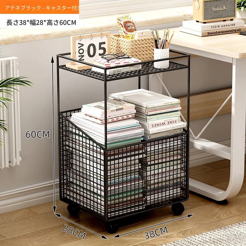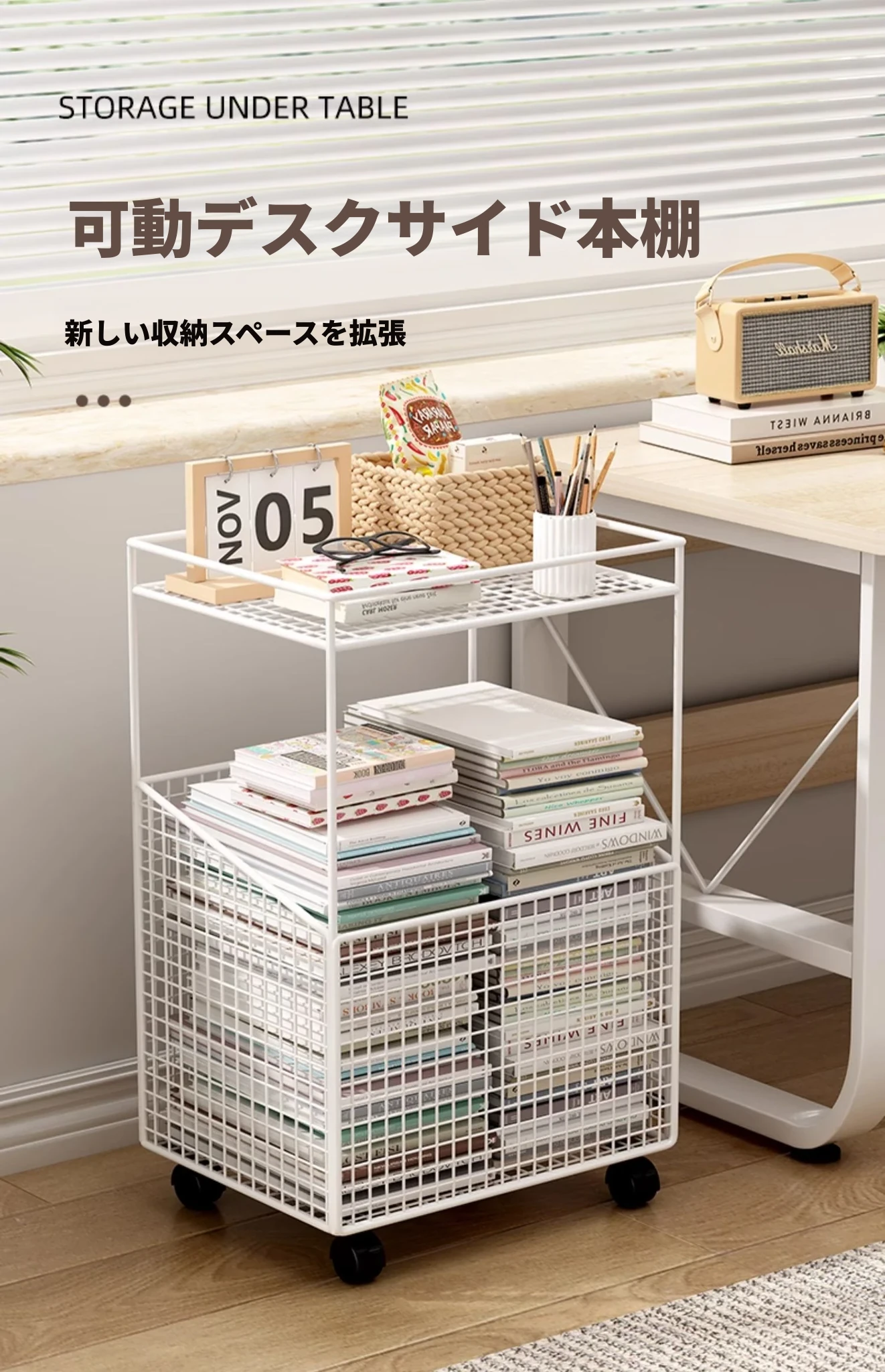 キャスター付き移動式ブックシェルフ!子供部屋のデスク下にぴったりな本収納キャビネット。リュックサックや小物も整理整頓できる、シンプルで使いやすい家庭用フロアブックケースです。