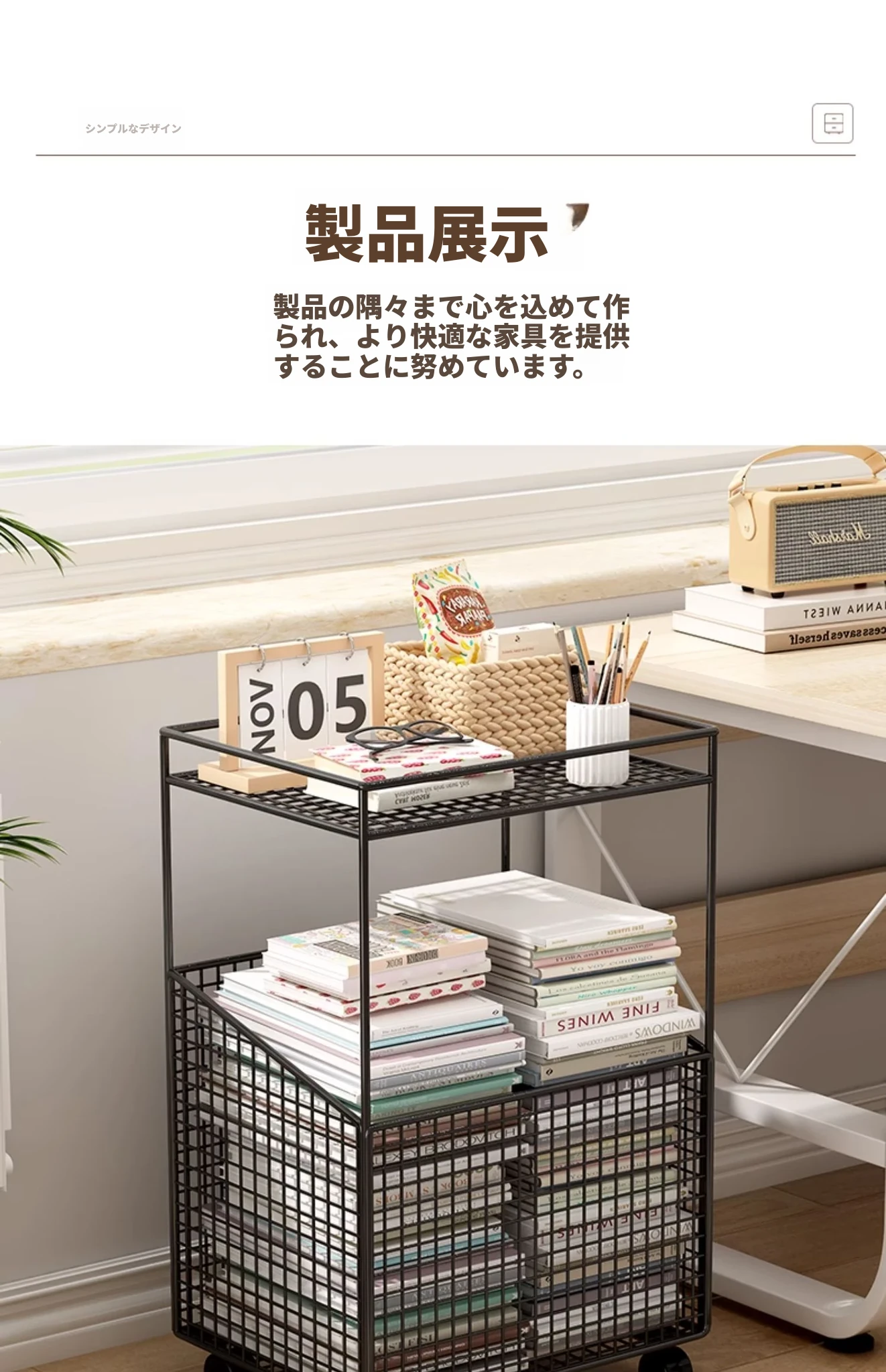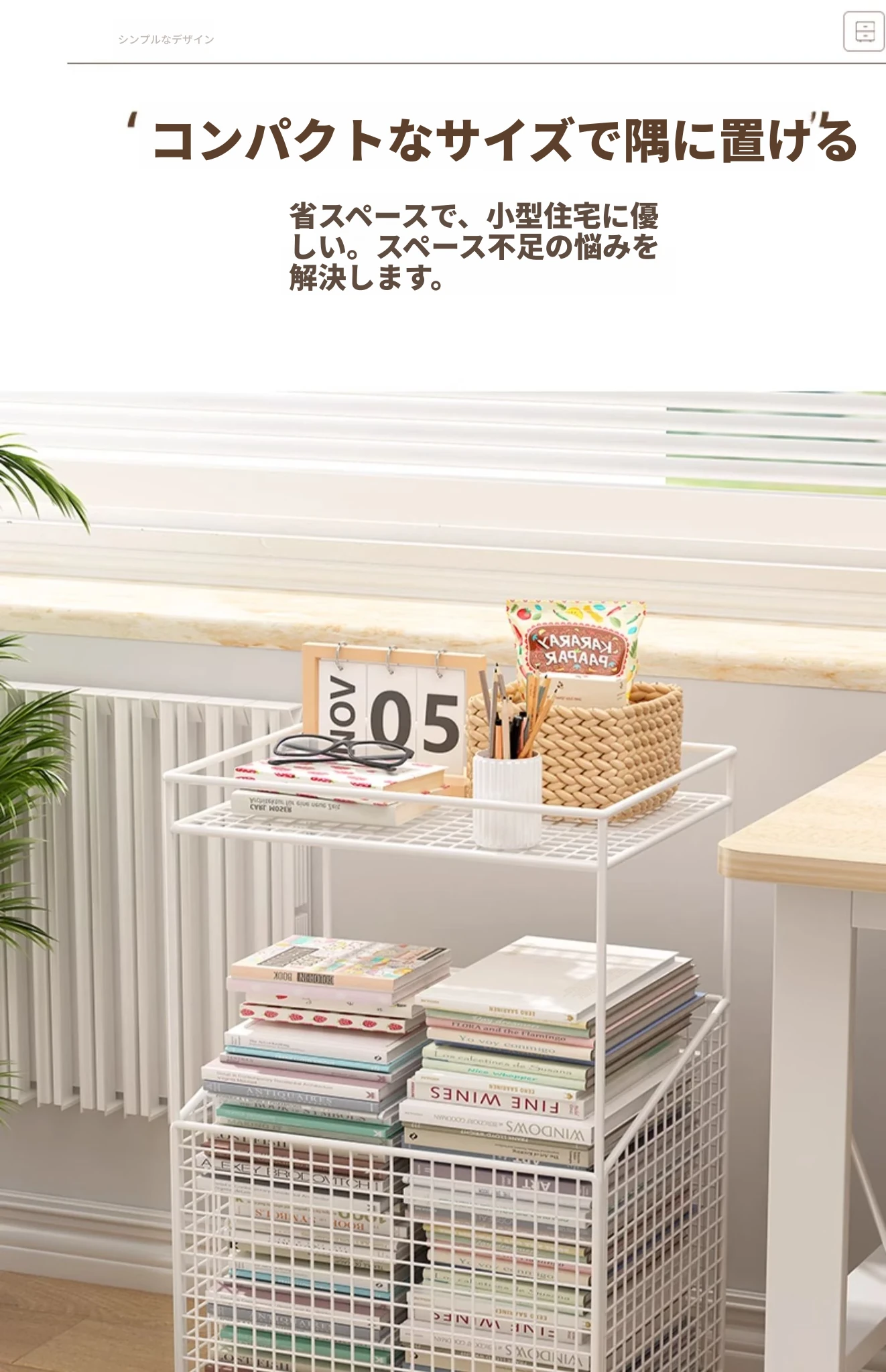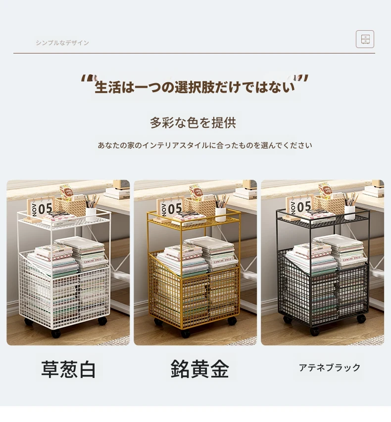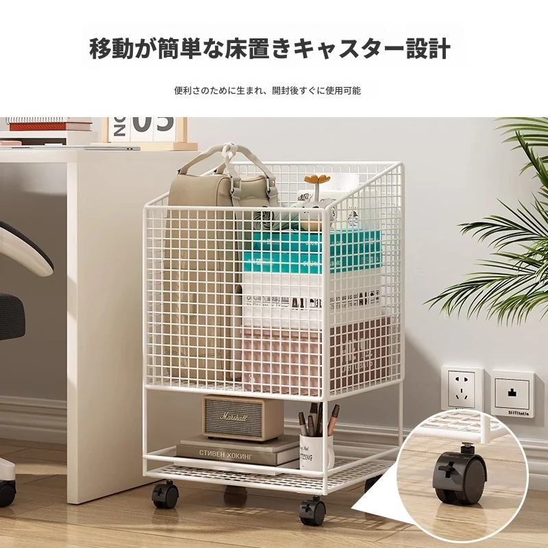 キャスター付き移動式ブックシェルフ!子供部屋のデスク下にぴったりな本収納キャビネット。リュックサックや小物も整理整頓できる、シンプルで使いやすい家庭用フロアブックケースです。