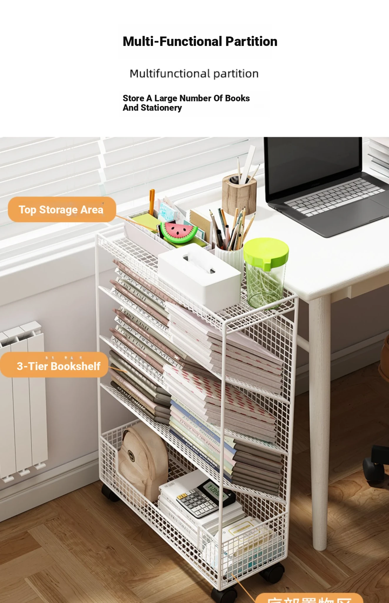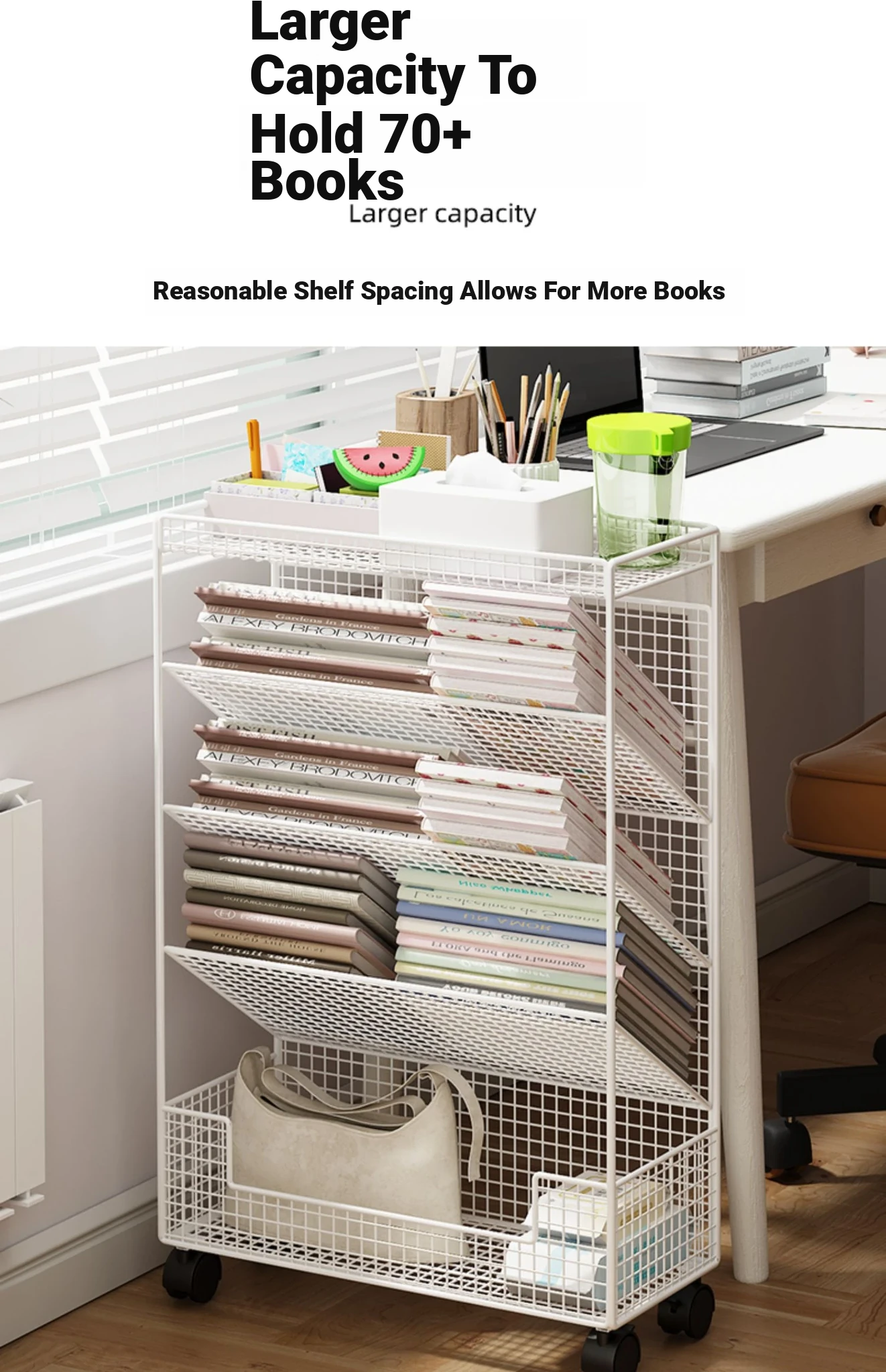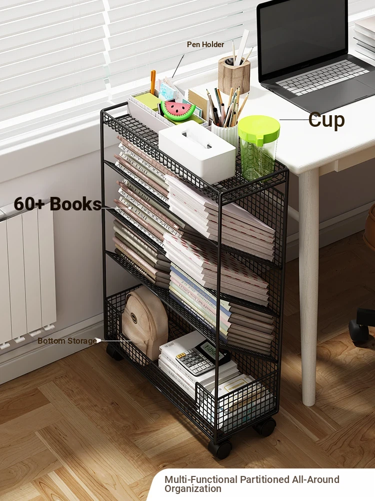 Mobile Bookshelf with Wheels - Compact Desktop Under-Shelf Organizer, Multi-Tiered Floor Storage Rack for Easy Reading and Book Display, Perfect for Small Spaces