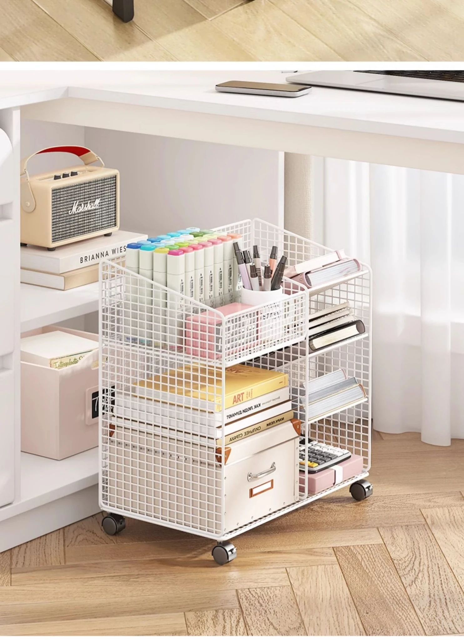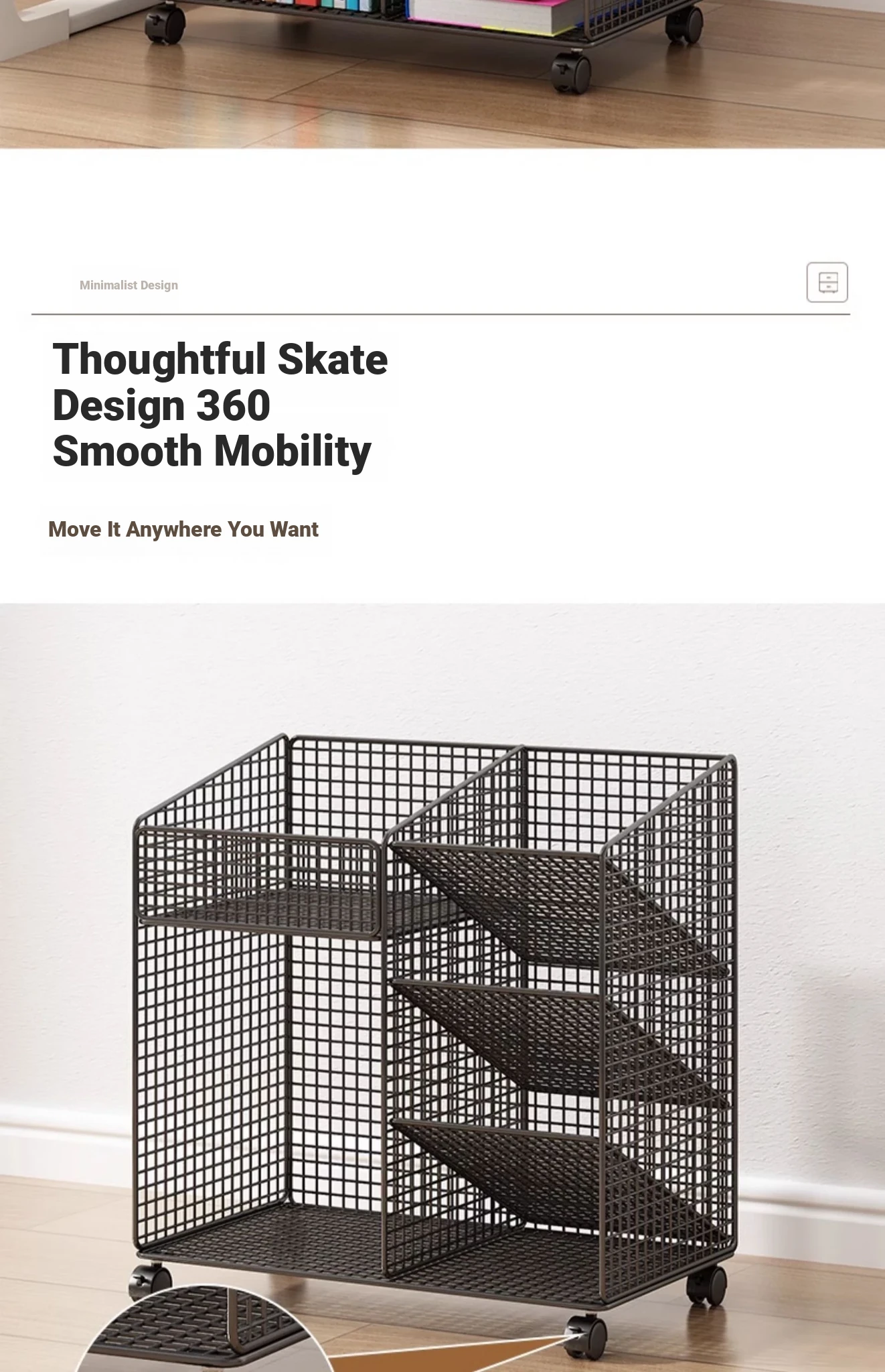Mobile Bookshelf with Wheels - Floor-standing Storage Rack for Children's Books, Ideal for Picture Books and Easy Access Under Desks, Perfect for Kids' Reading Time!