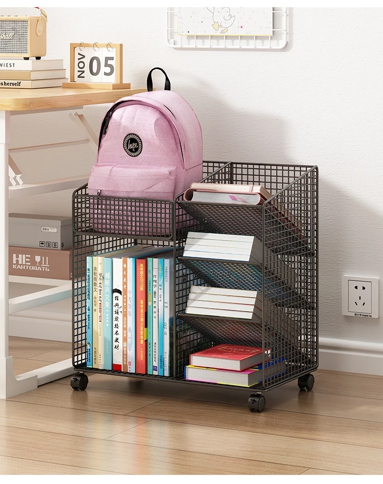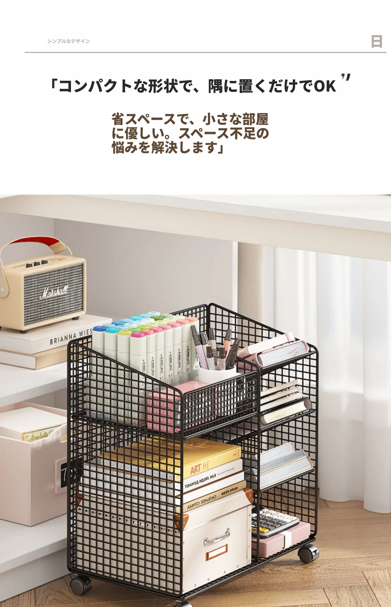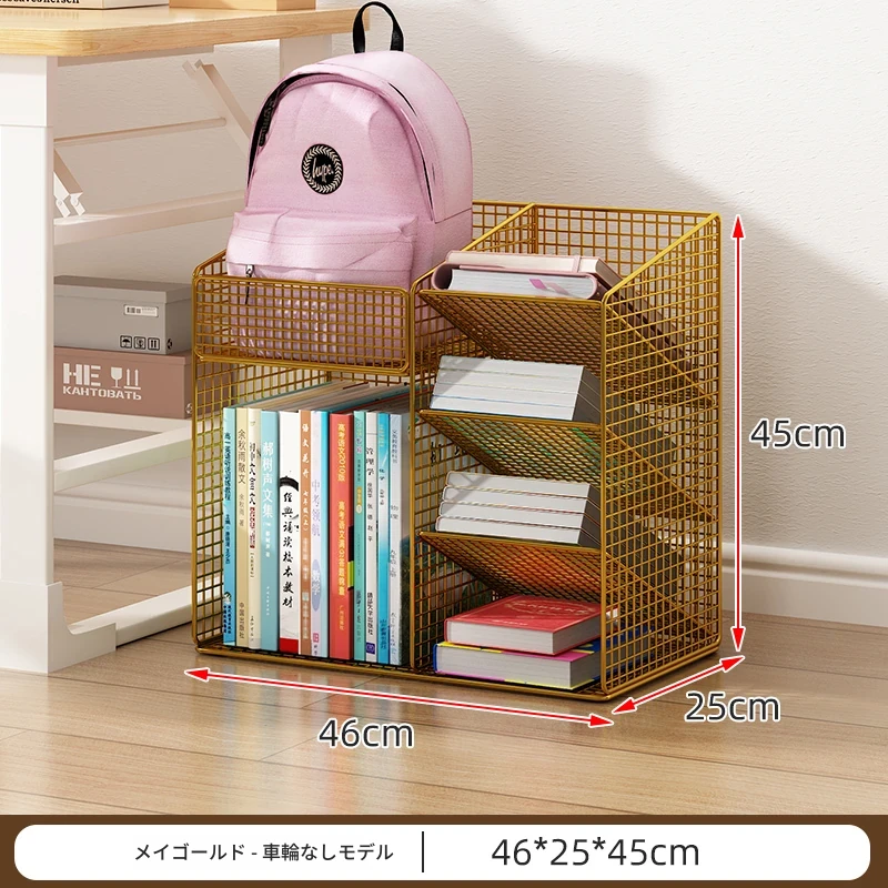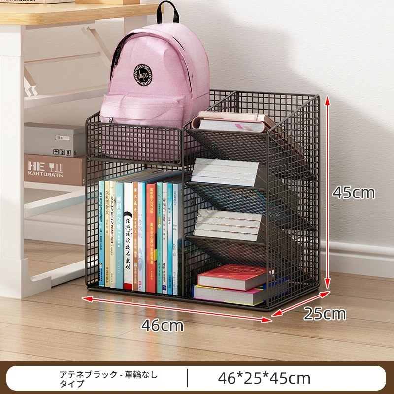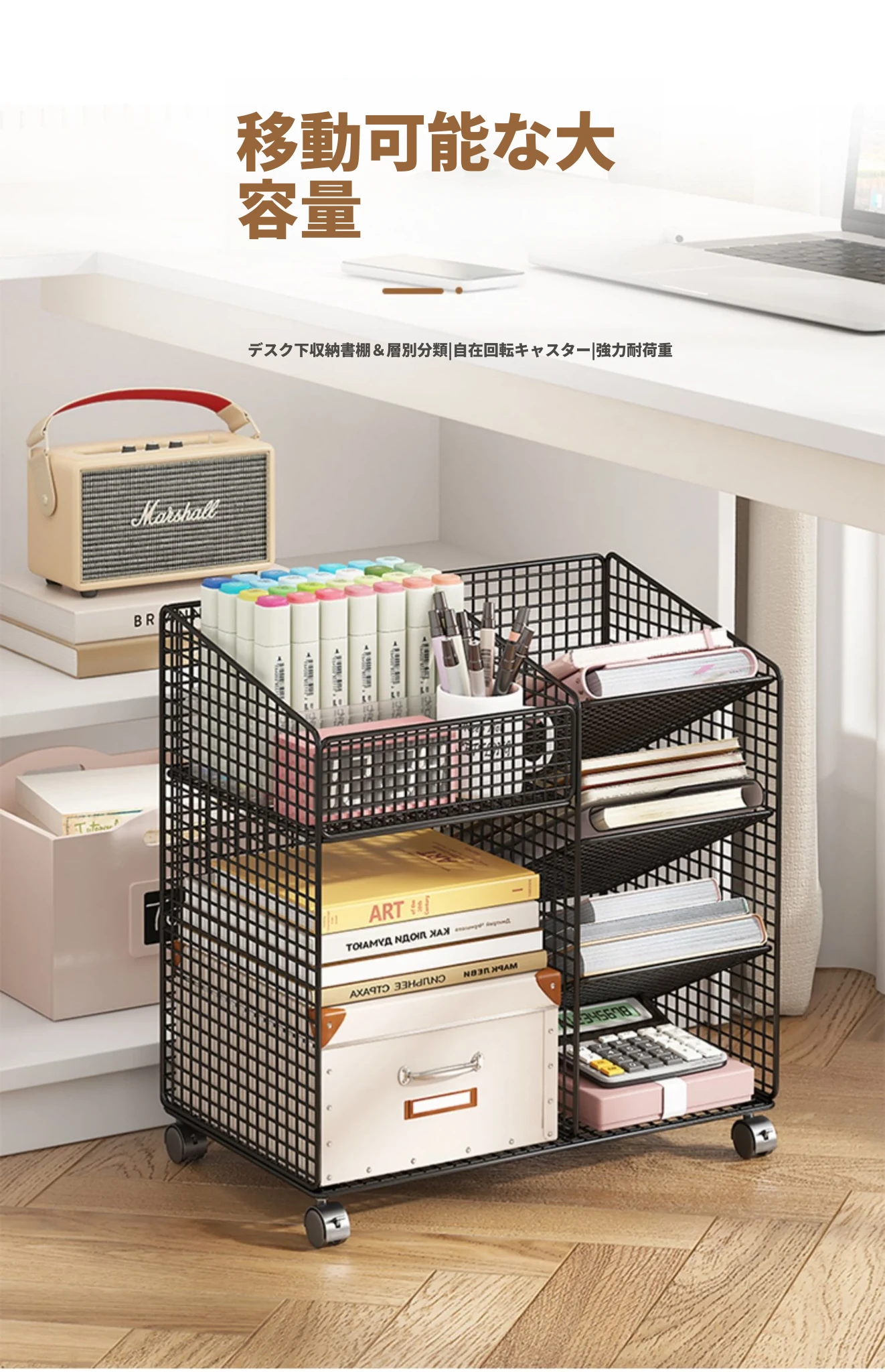 移動式書棚 - キャスター付きの便利な収納ラック!デスクサイドにぴったりな学生向け本棚。教科書やリュックサックもスッキリ整理できるコンパクトなデザイン。お部屋のインテリアにもマッチ!