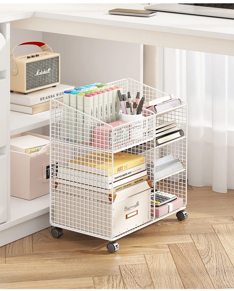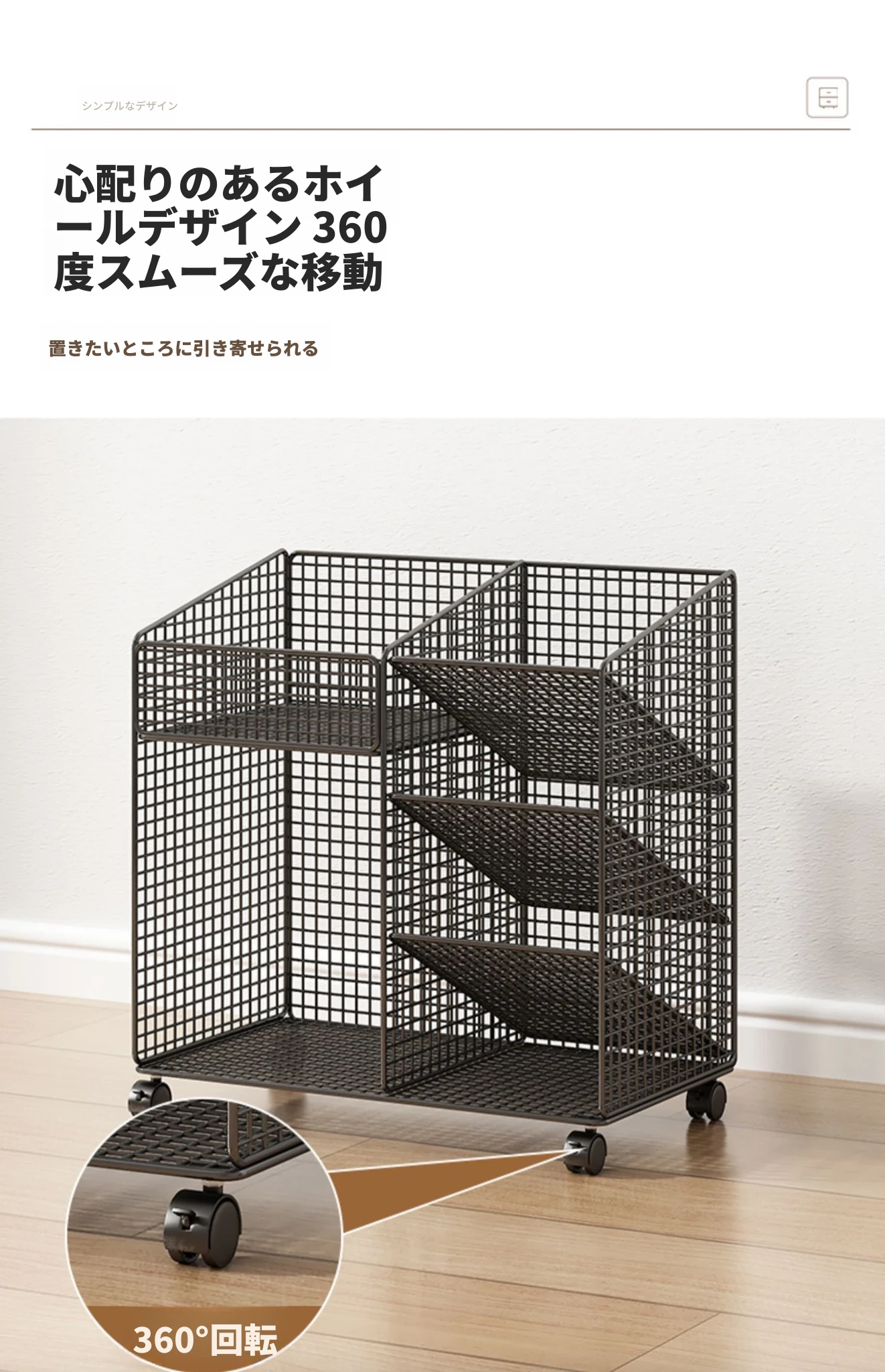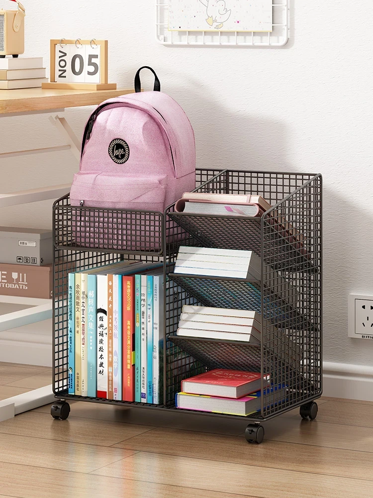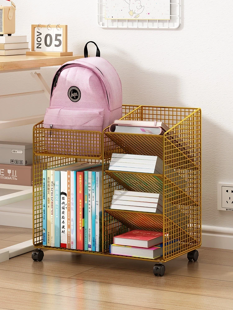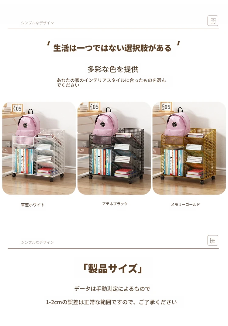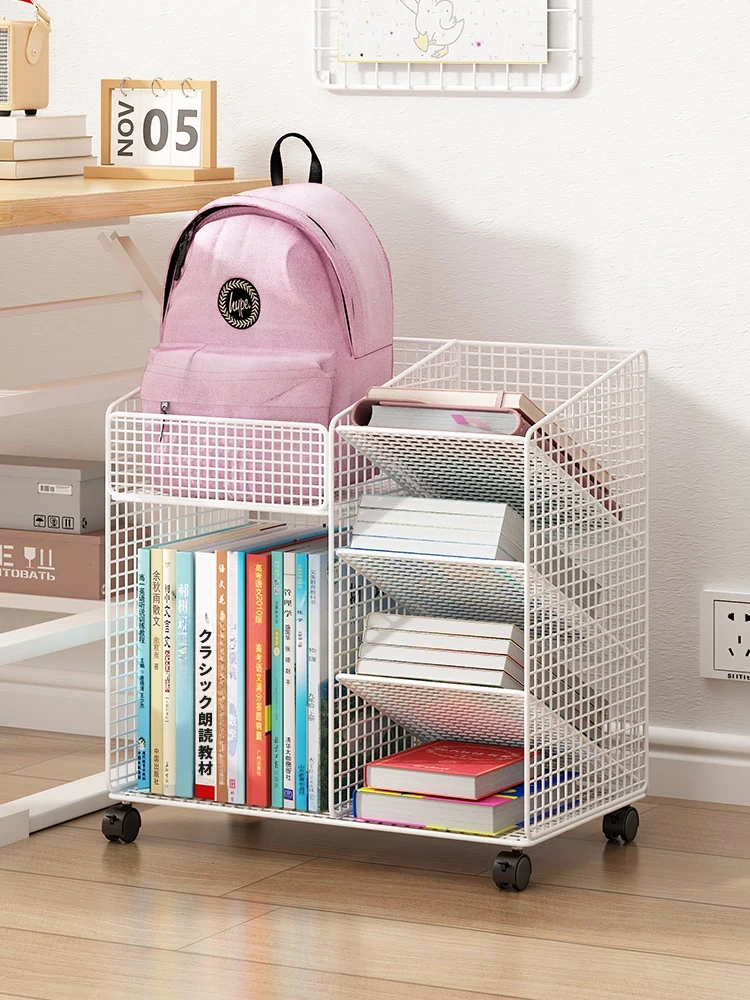 移動式書棚 - キャスター付きの便利な収納ラック!デスクサイドにぴったりな学生向け本棚。教科書やリュックサックもスッキリ整理できるコンパクトなデザイン。お部屋のインテリアにもマッチ!
