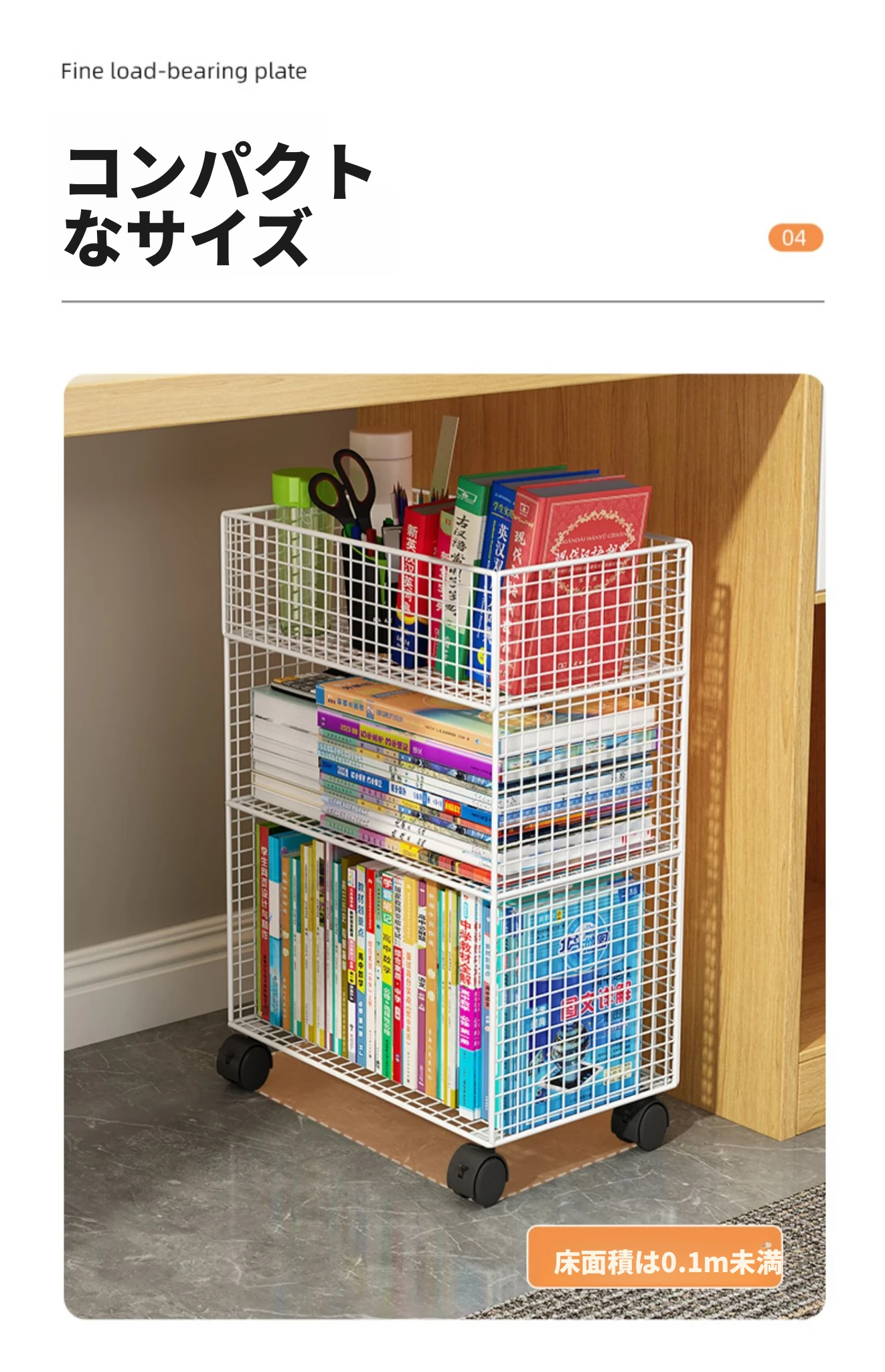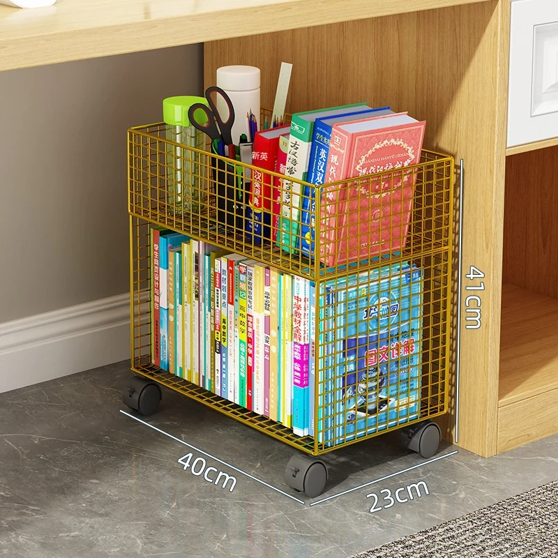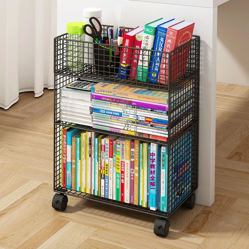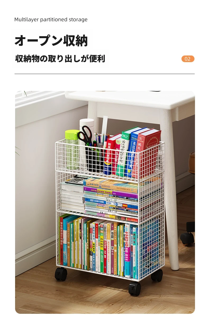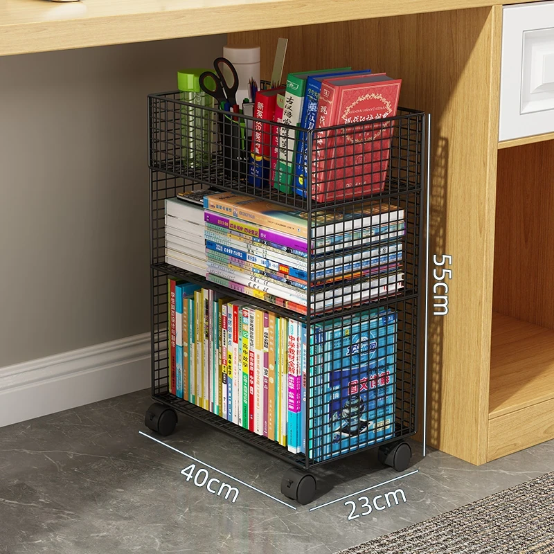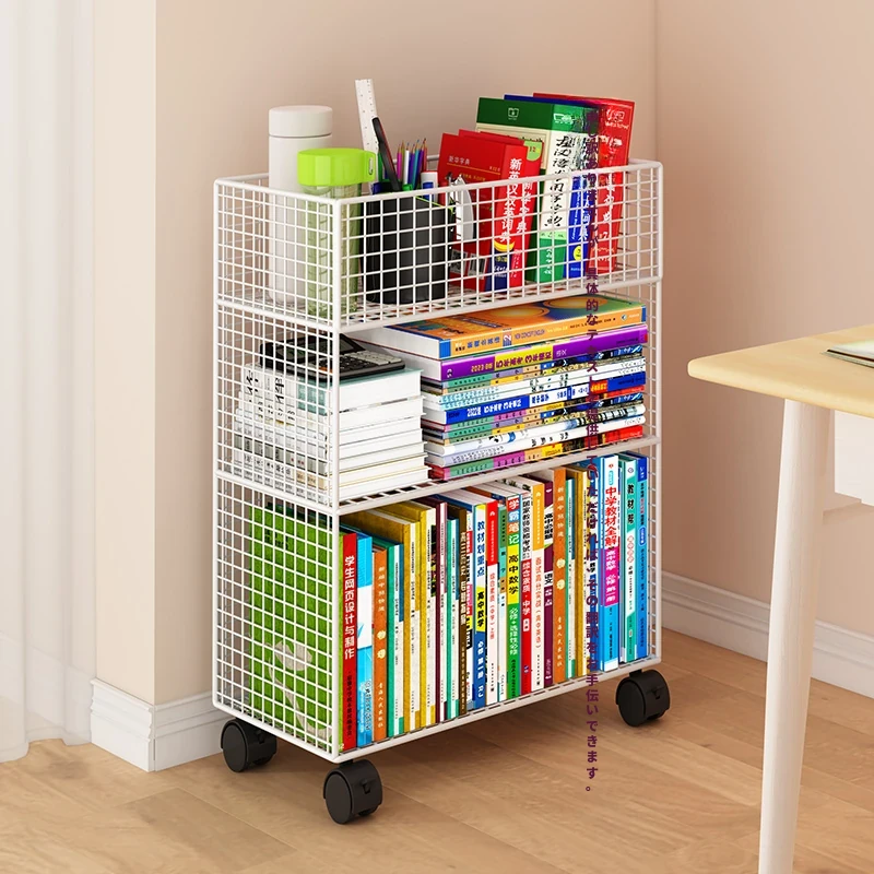 デスク下移動式ブックシェルフ - キャスター付きの収納カート!デスクサイドや教室の隅にぴったり。書籍や小物をスッキリ整理し、使いやすさを追求したスタイリッシュなフロアブックキャビネット。
