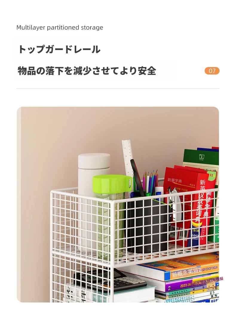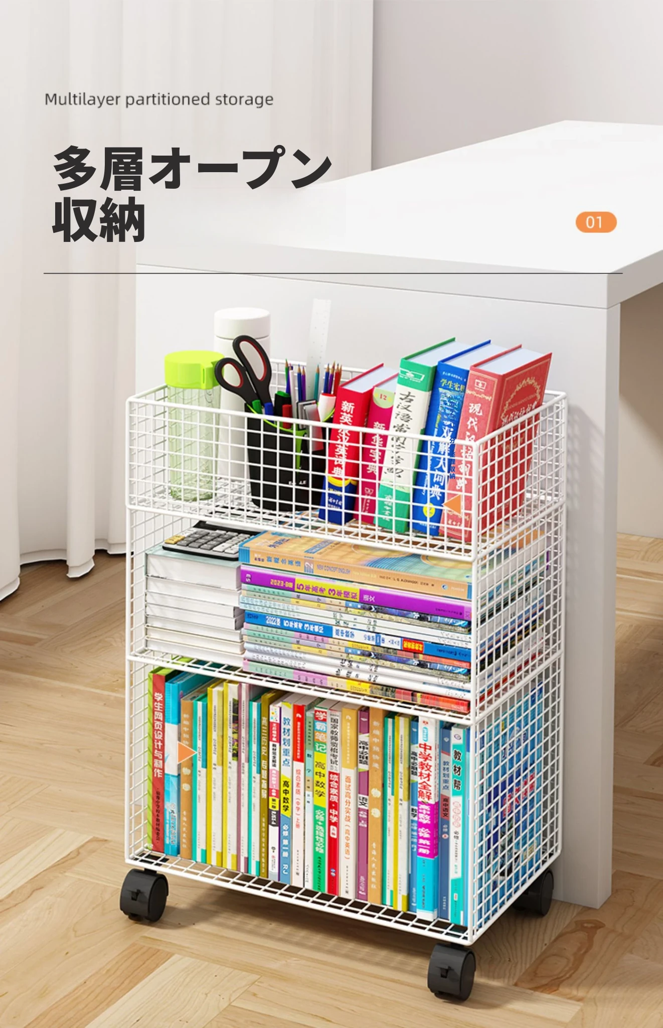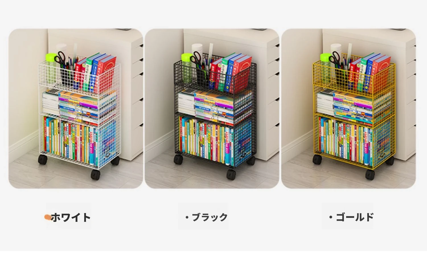デスク下移動式ブックシェルフ - キャスター付きの収納カート!デスクサイドや教室の隅にぴったり。書籍や小物をスッキリ整理し、使いやすさを追求したスタイリッシュなフロアブックキャビネット。