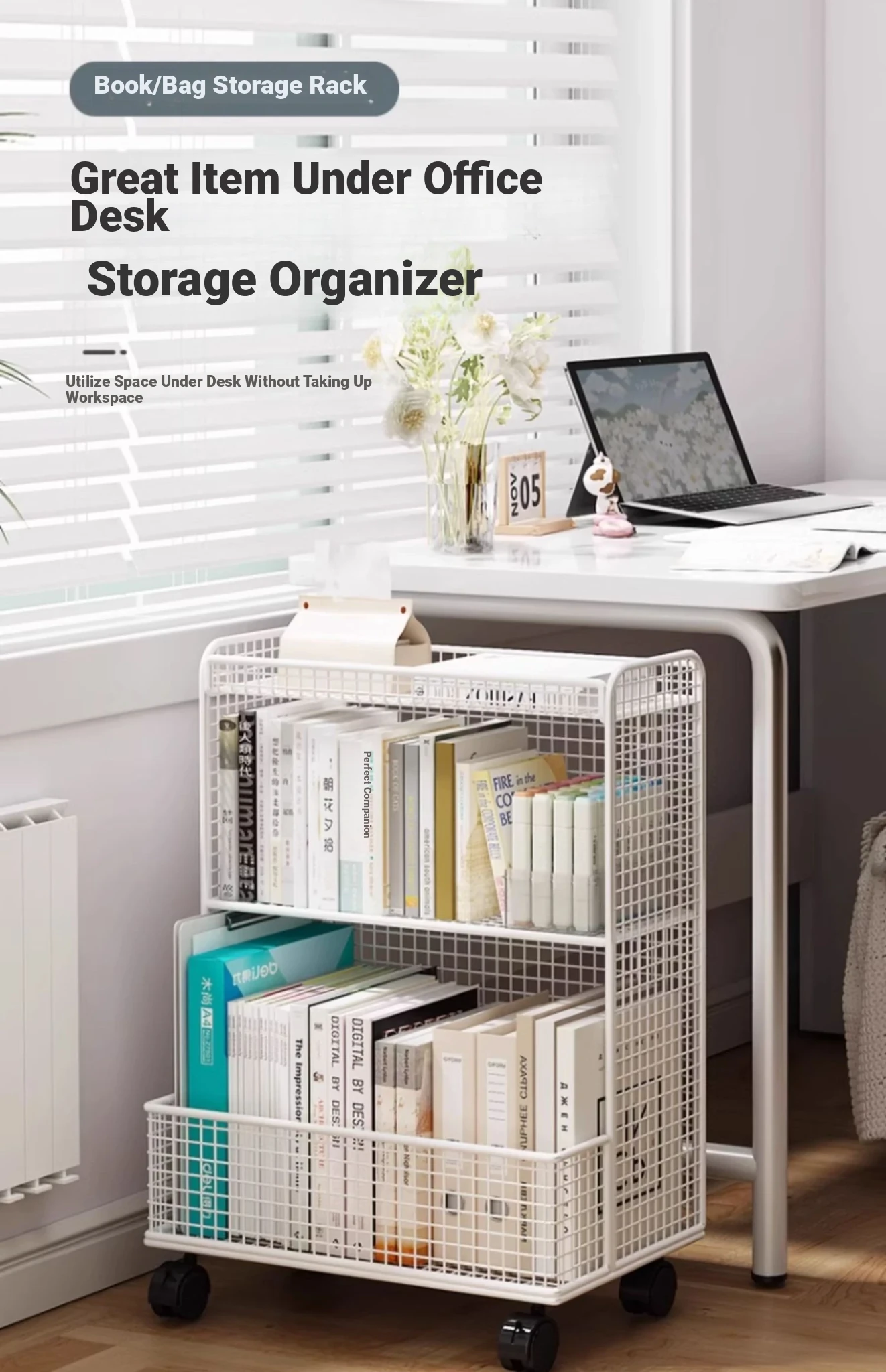 Mobile Under-Desk Rolling Cart - Versatile Storage Shelf for Office or Home, Perfect Side Storage for Books and Supplies with Wheels - Space-Saving Mini Bookshelf for Easy Organization