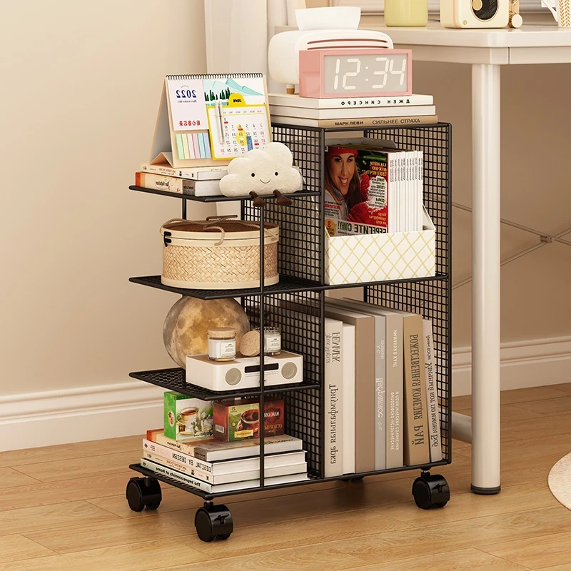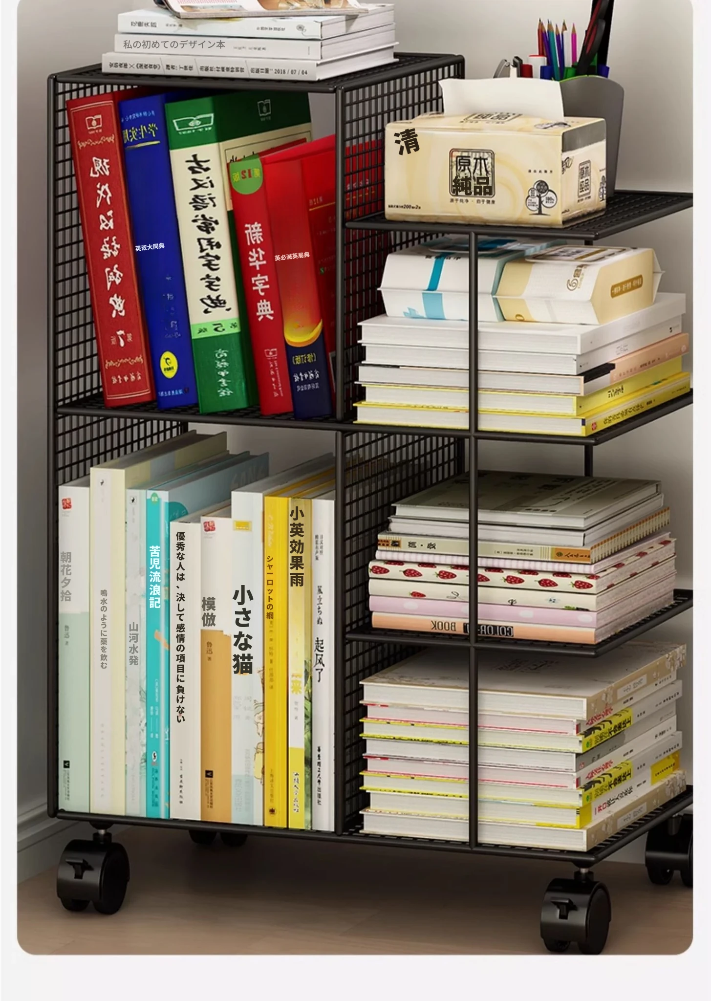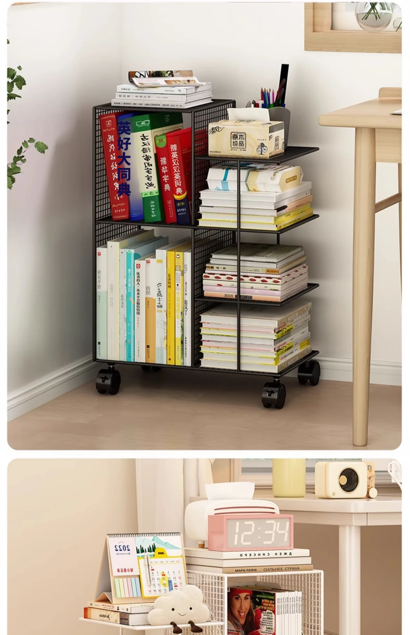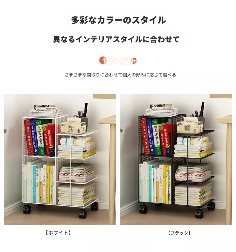 デスク下収納ラック - 移動可能なキャスター付き、オフィスデスク横の小さな本棚。書籍収納に最適なスタイリッシュな書棚で、スペースを有効活用!