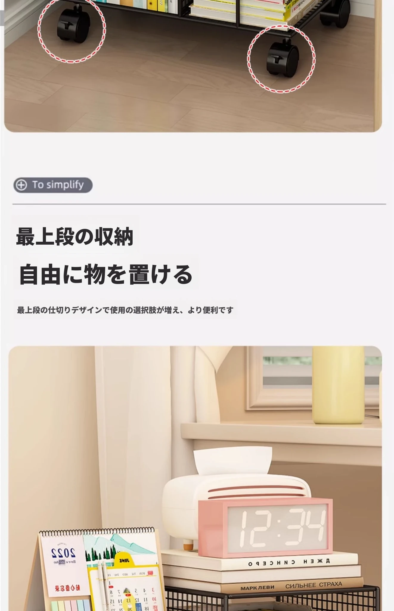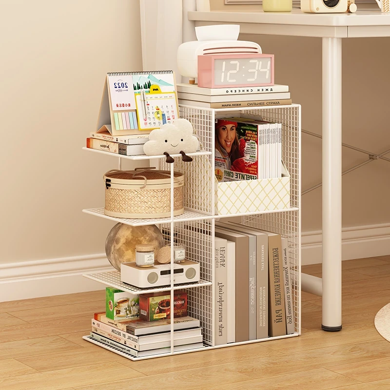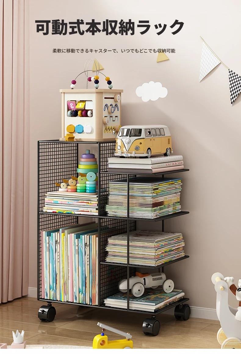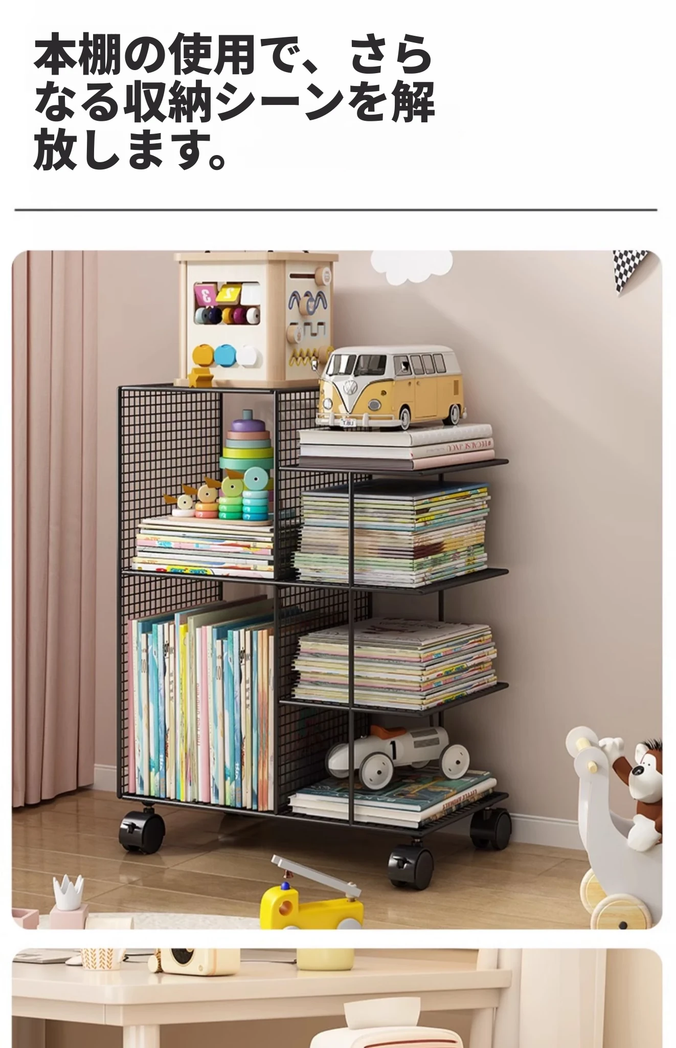 デスク下収納ラック - 移動可能なキャスター付き、オフィスデスク横の小さな本棚。書籍収納に最適なスタイリッシュな書棚で、スペースを有効活用!