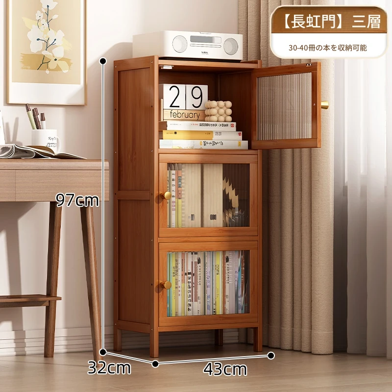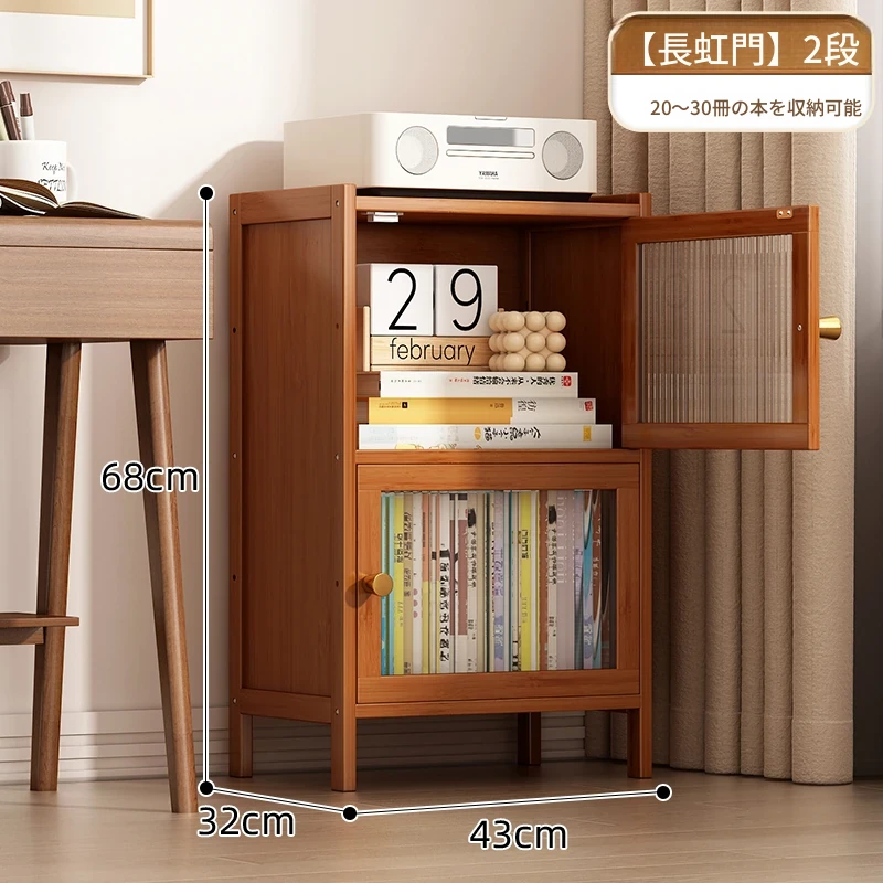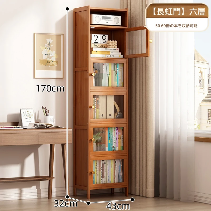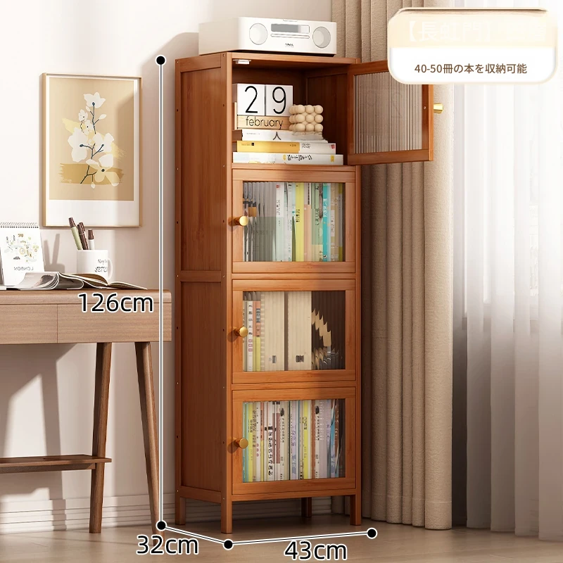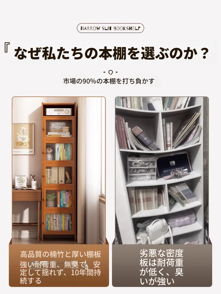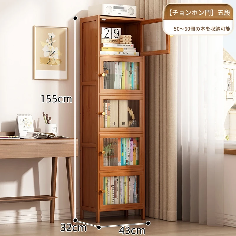 モダンシンプルな実木製書棚 - スリムなデザインで角にぴったりフィット!防塵機能付きの収納ラックで、書籍や小物をすっきり整理。お部屋にスタイリッシュなアクセントを加えます。