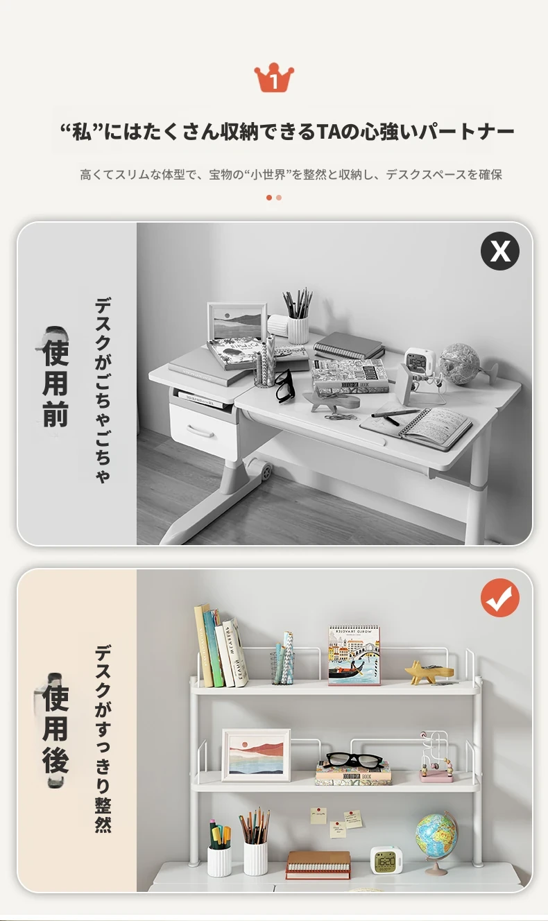 子供向けデスクに最適!多機能デスク用書棚 - 読書スタンド付きの多層デスク上収納ラックで、学習スペースをスッキリ整頓!高さ調節可能で使いやすさ抜群!