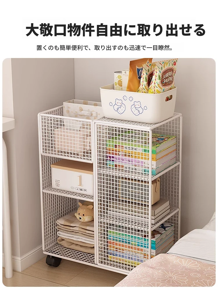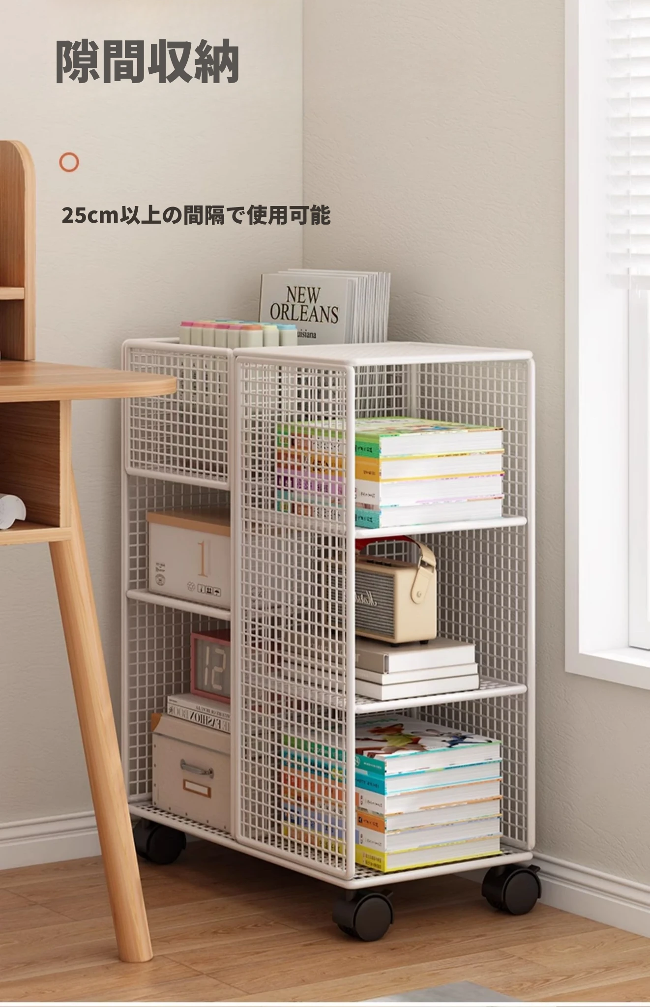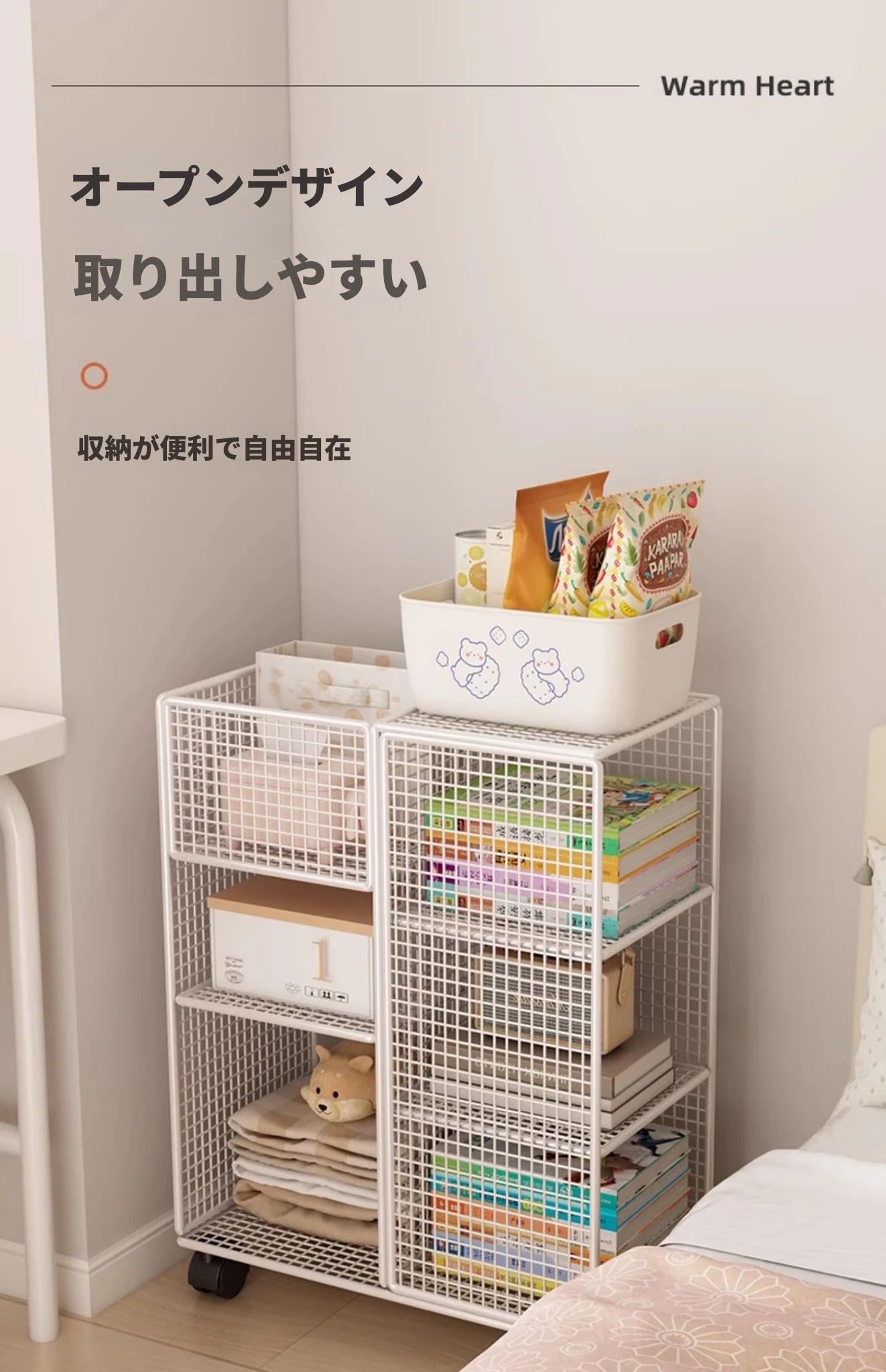 移動可能なシンプルな本棚・収納ラック!お子様の絵本やおもちゃを整理整頓。家でのスペースを有効活用し、使いやすさ抜群の収納キャビネット。おしゃれで機能的なデザイン!