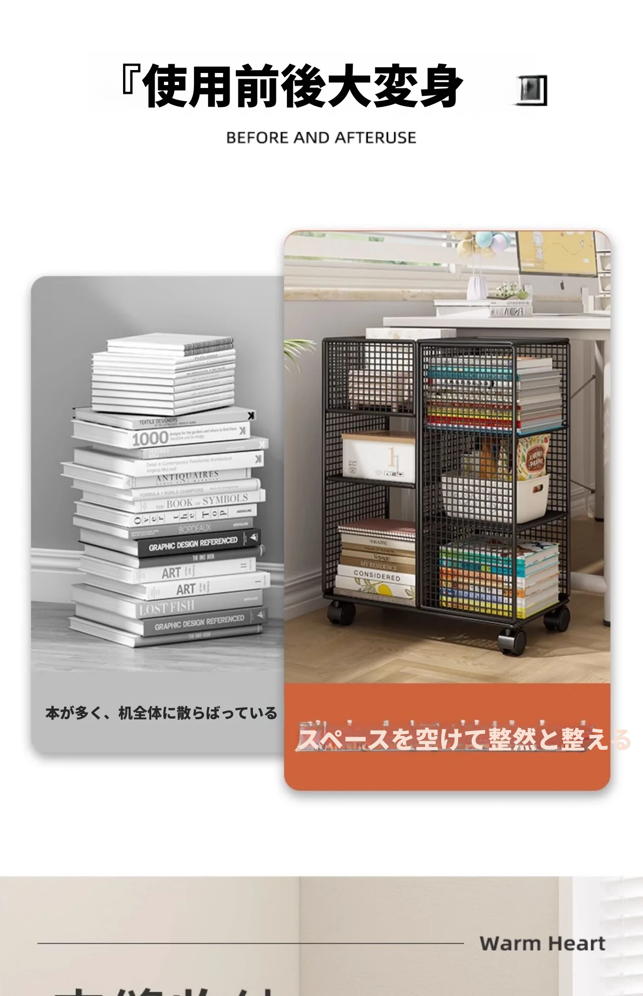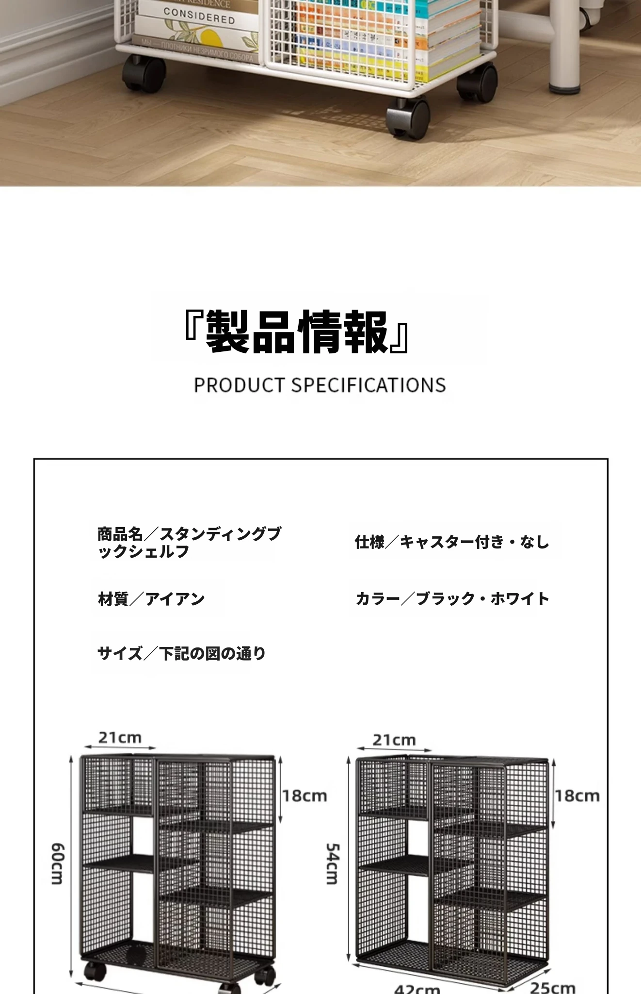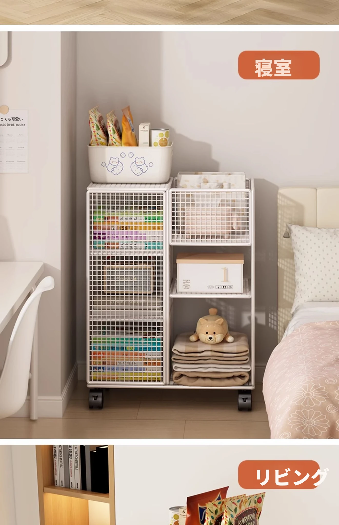 移動可能なシンプルな本棚・収納ラック!お子様の絵本やおもちゃを整理整頓。家でのスペースを有効活用し、使いやすさ抜群の収納キャビネット。おしゃれで機能的なデザイン!