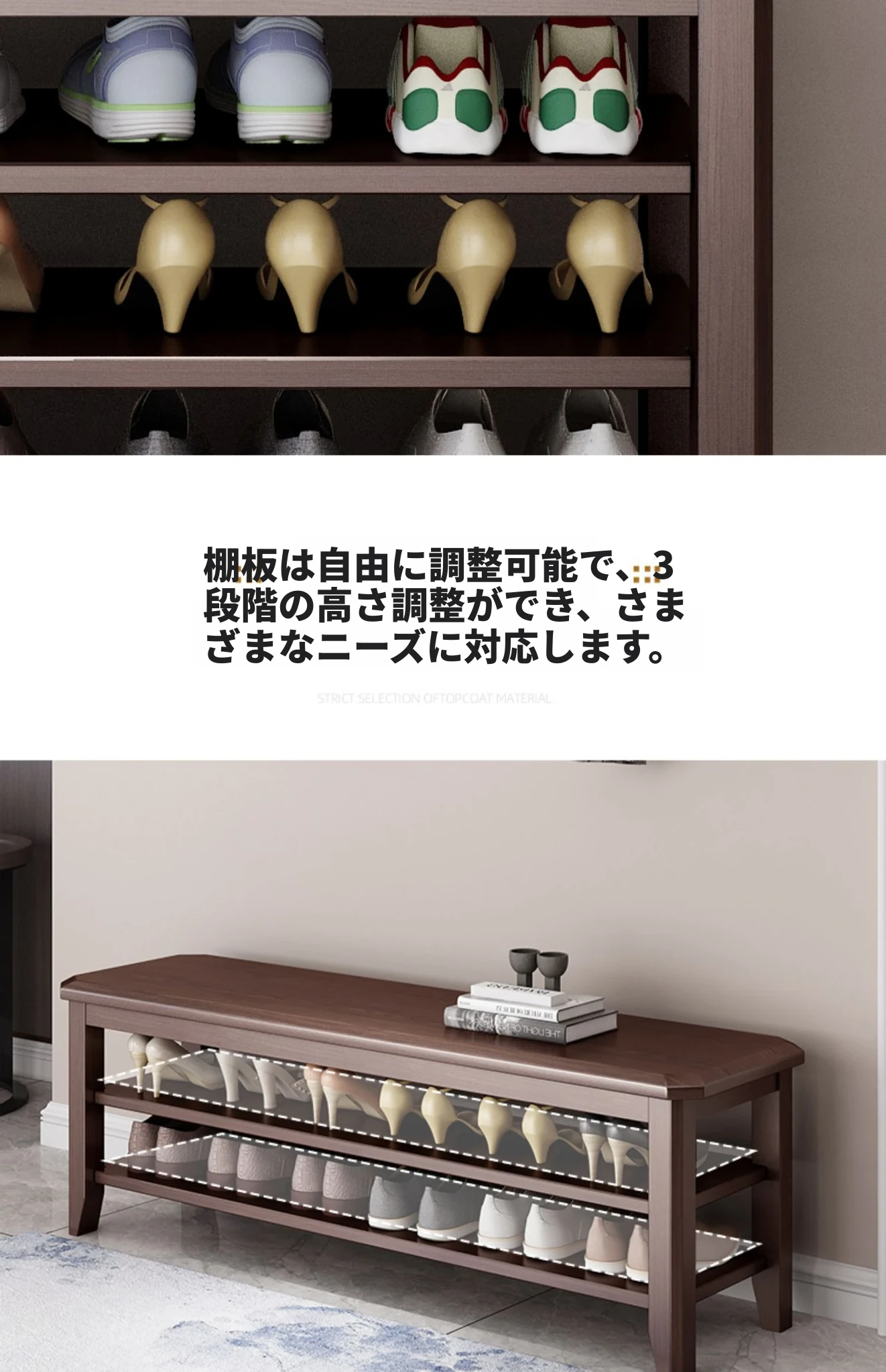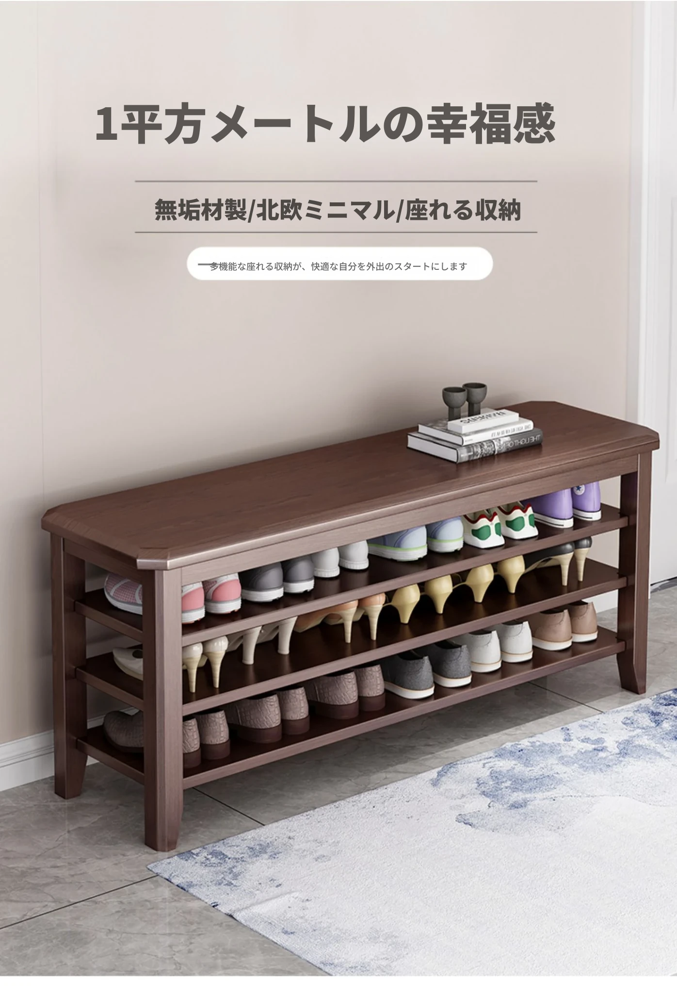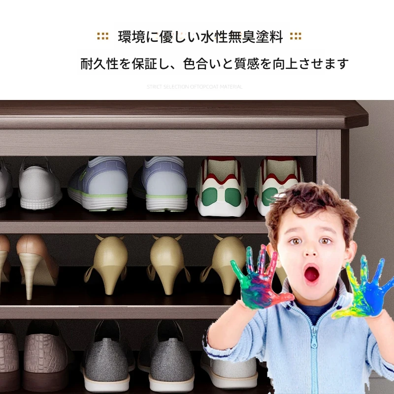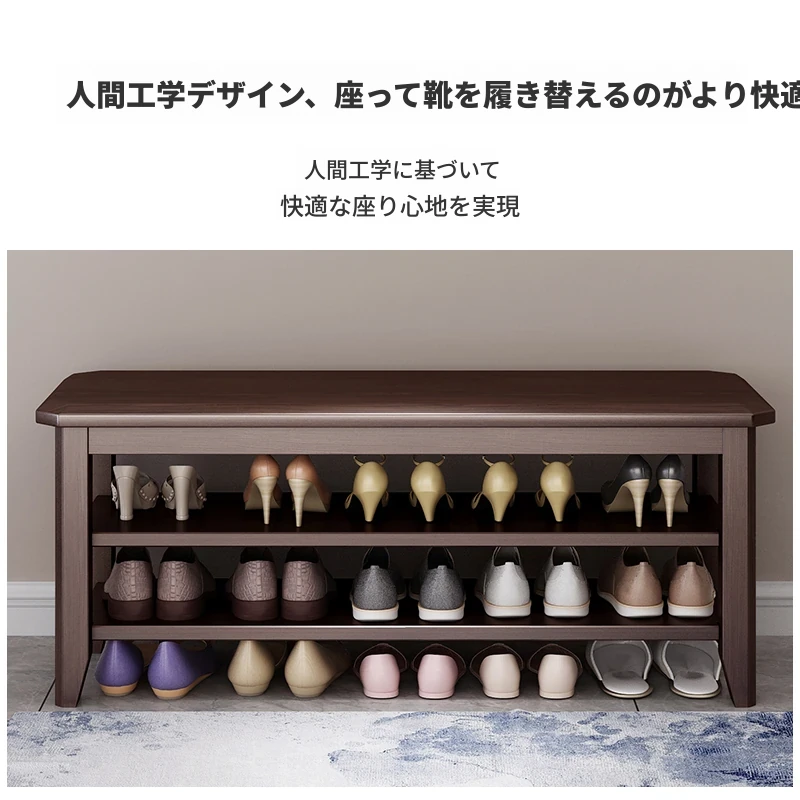 玄関に最適!大容量シューラック一体型シューズベンチ - 高級木製、広々とした収納スペース、家族みんなの靴をスッキリ整理。おしゃれなデザインで、入るたびに心地よい空間を演出します!