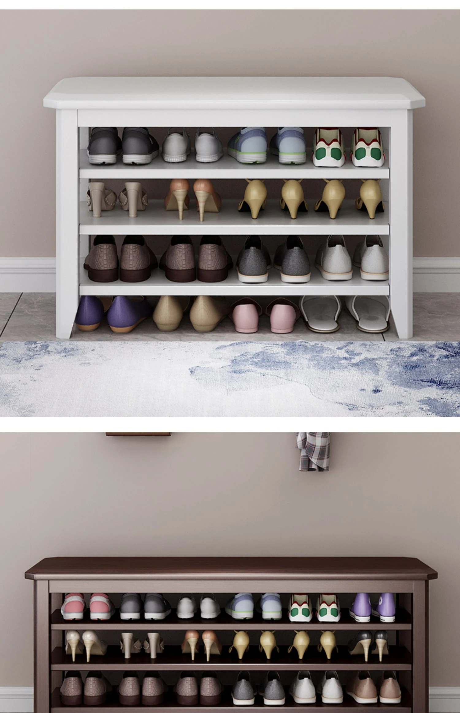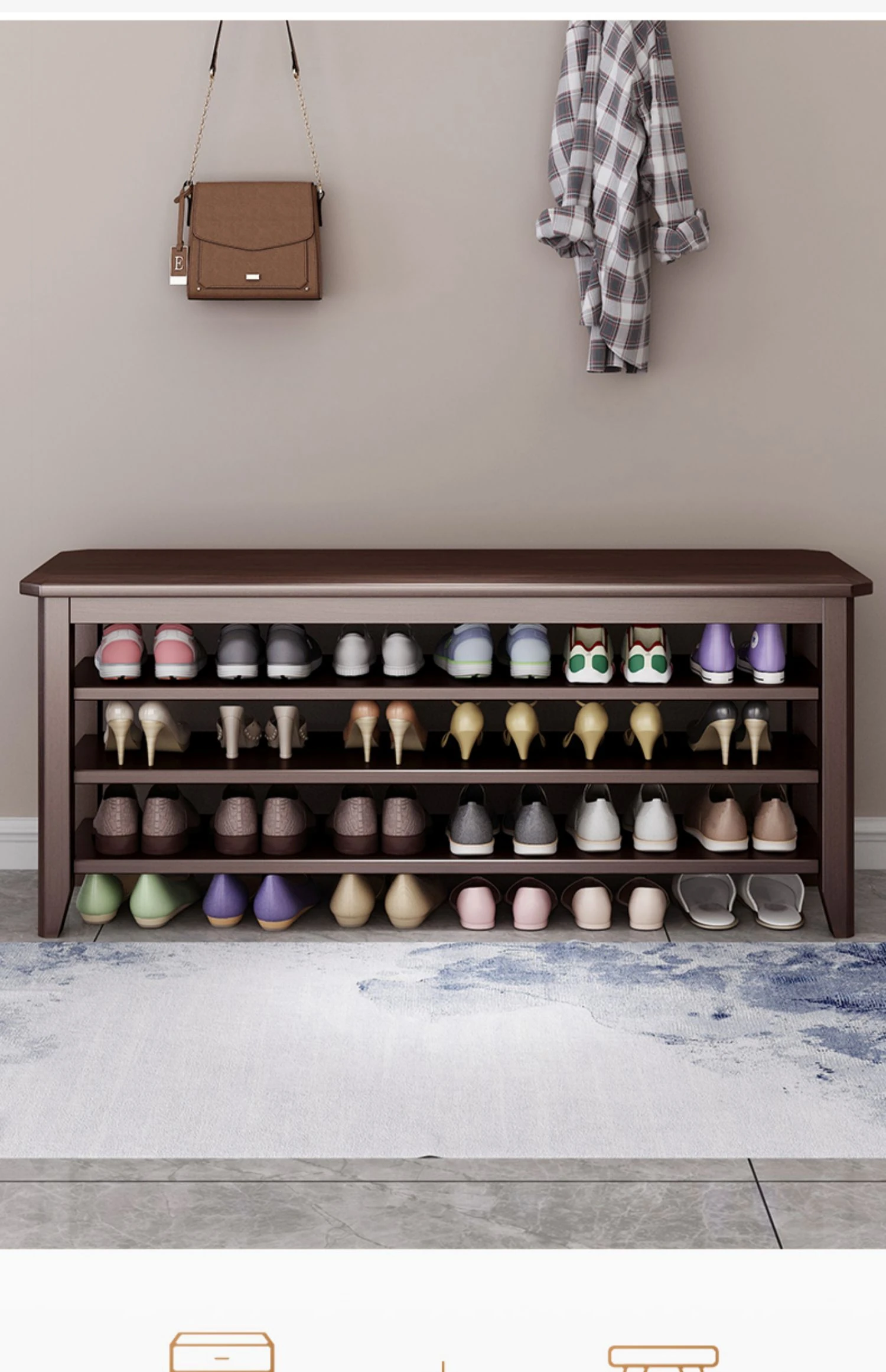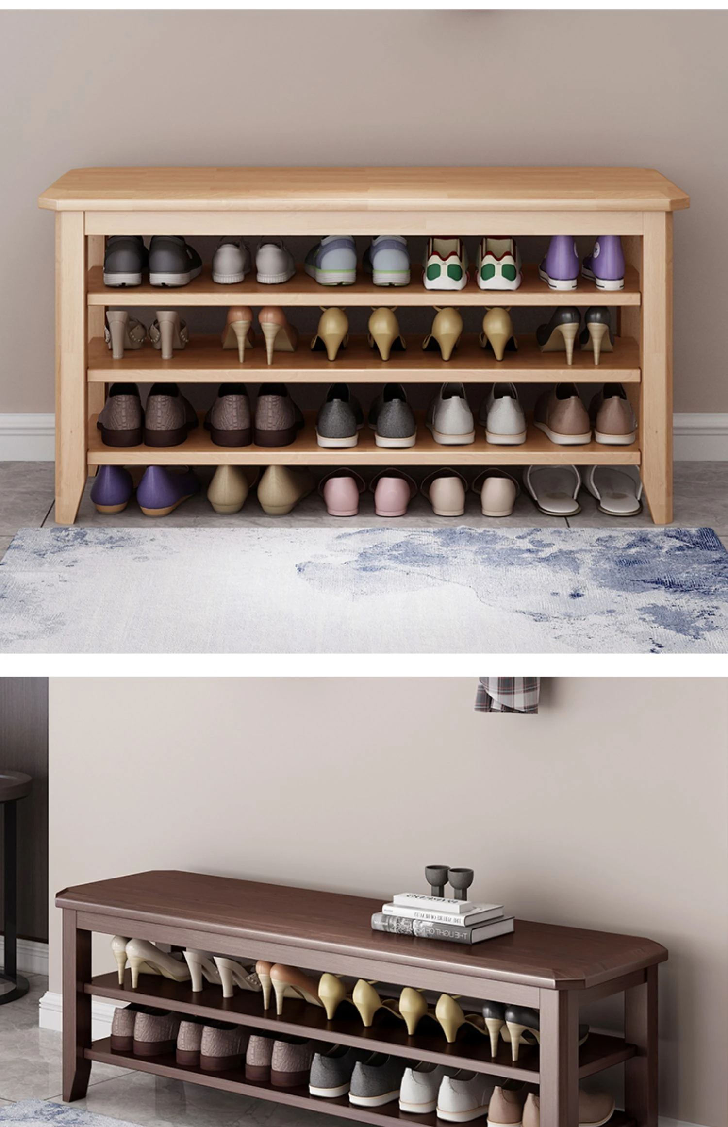 玄関に最適!大容量シューラック一体型シューズベンチ - 高級木製、広々とした収納スペース、家族みんなの靴をスッキリ整理。おしゃれなデザインで、入るたびに心地よい空間を演出します!