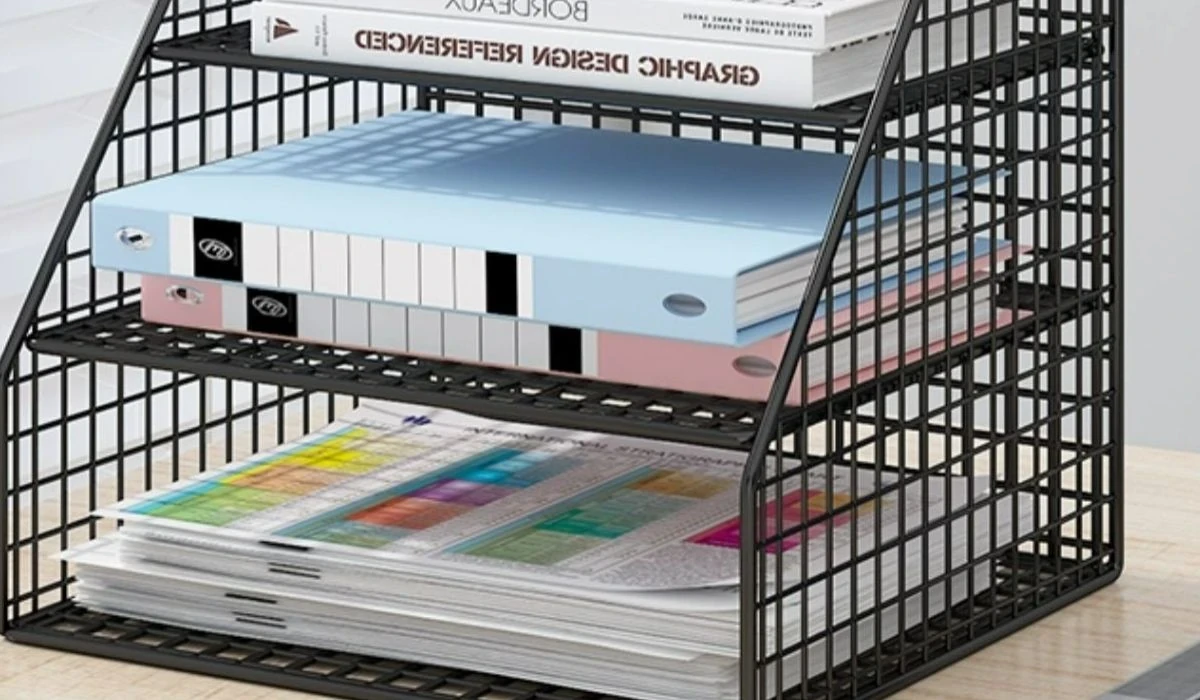 白-中サイズ層別収納ボックスペン立て付き