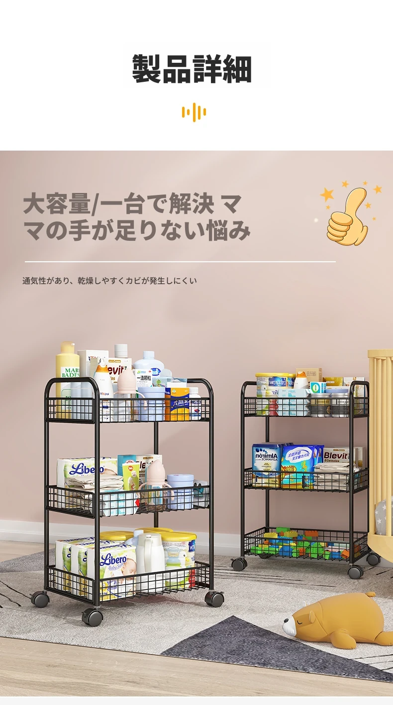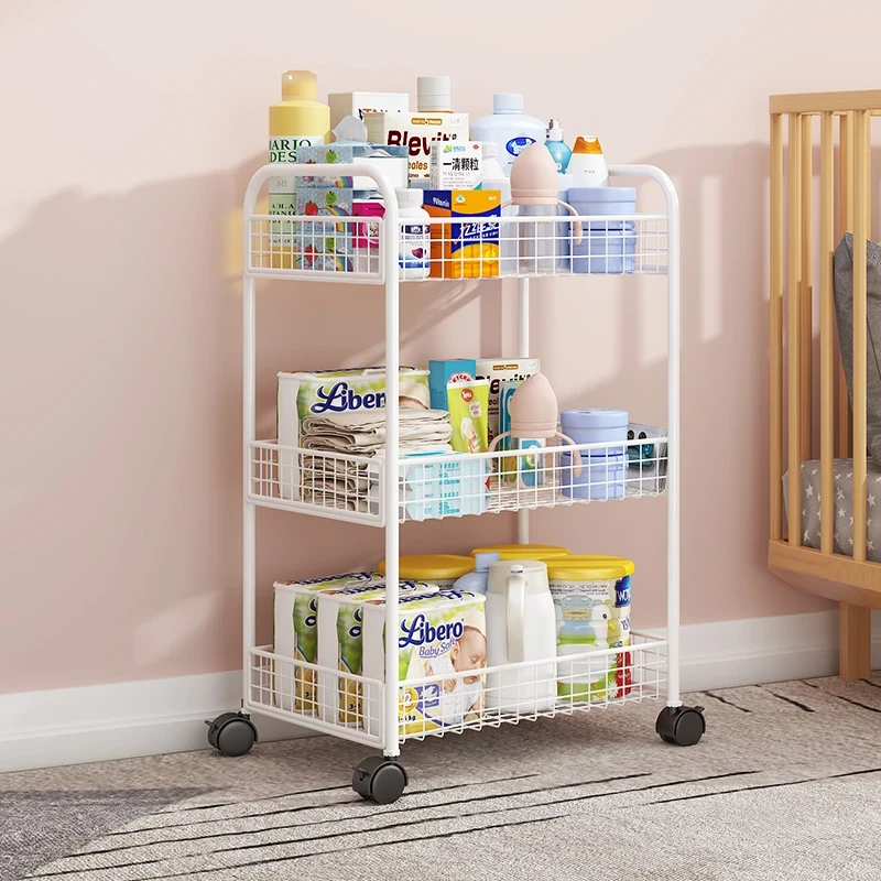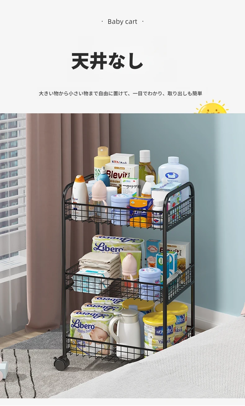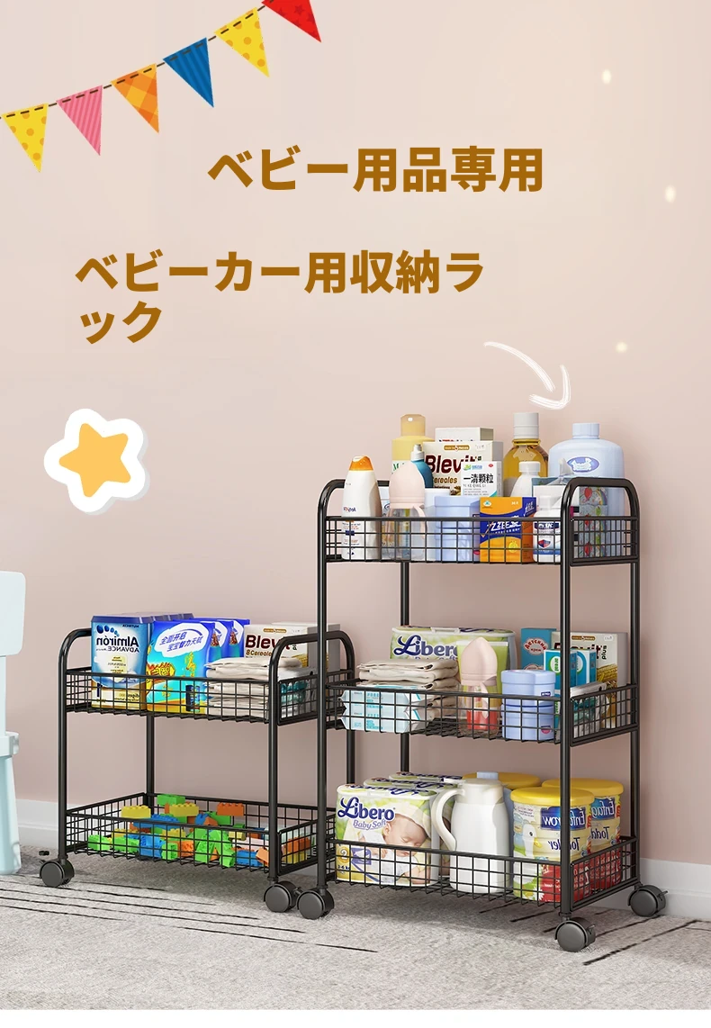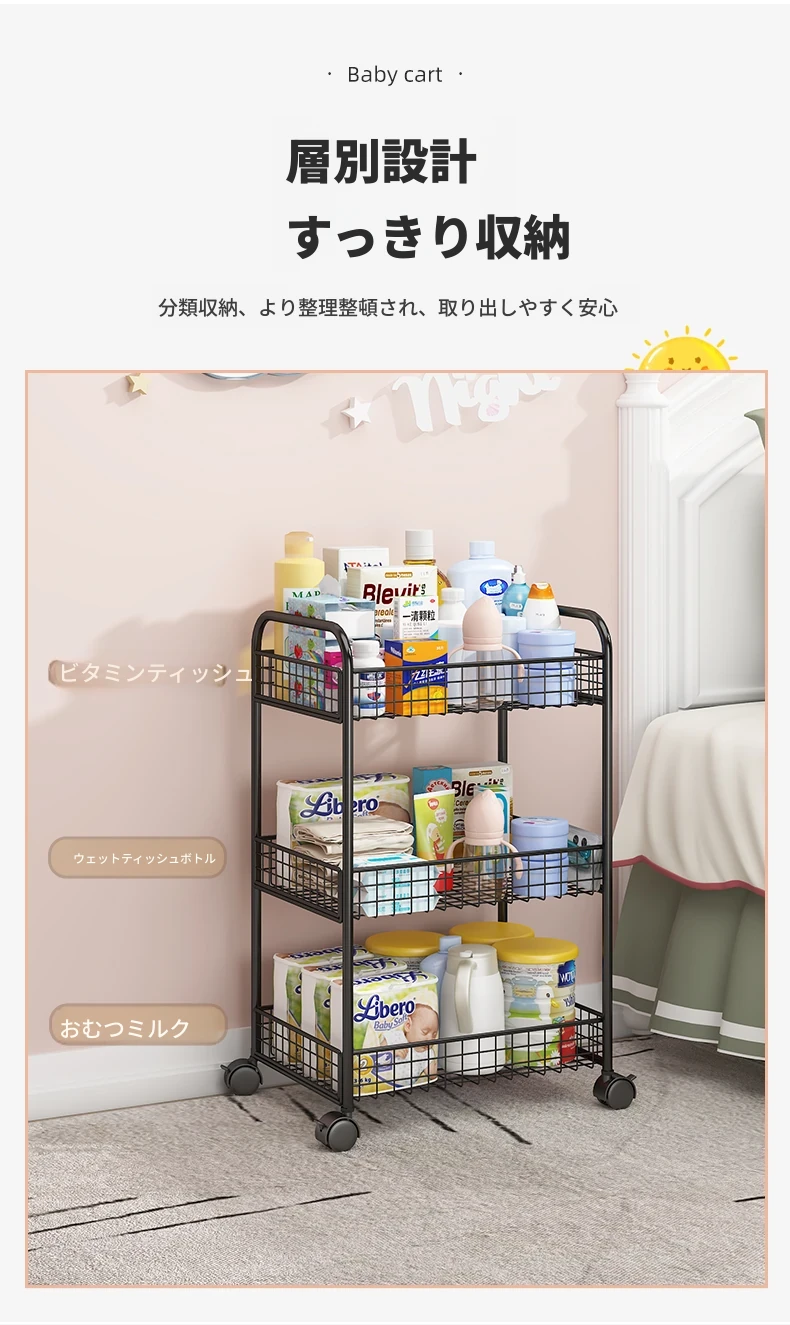 赤ちゃん用品収納棚 新生児用の小型移動式ベビーカー 多段ベッドサイドの赤ちゃんミルクやおむつ収納に便利なラック!お部屋をスッキリ整理して、育児のストレスを軽減します。