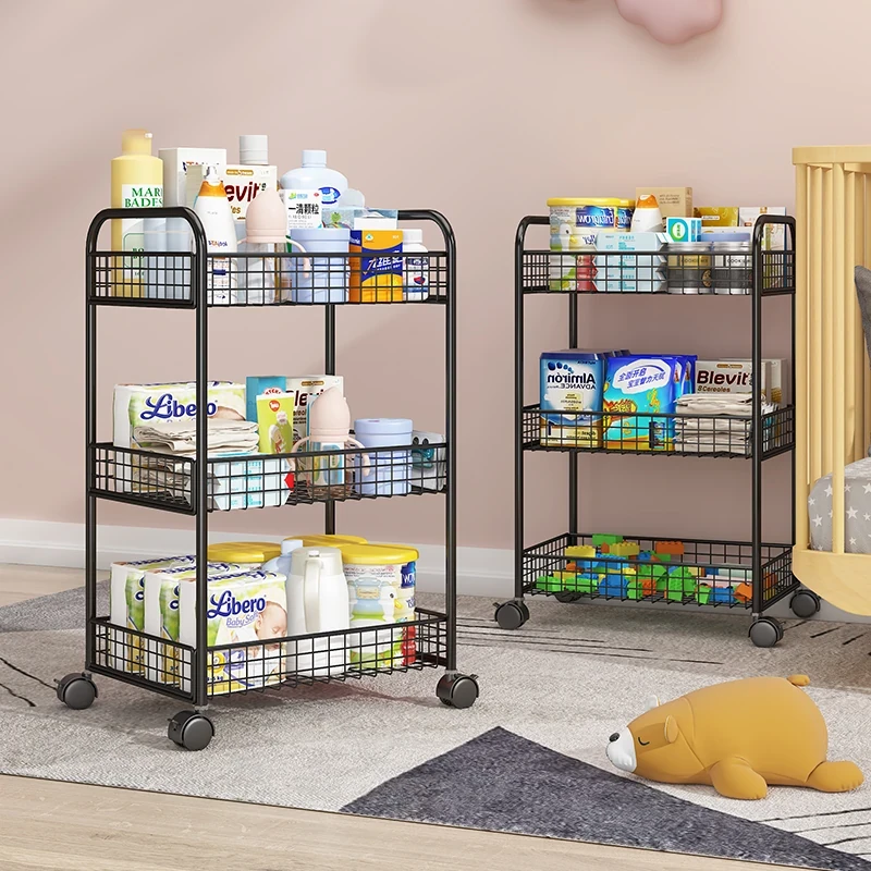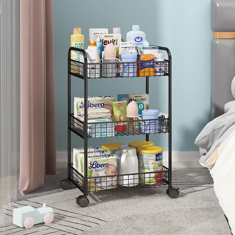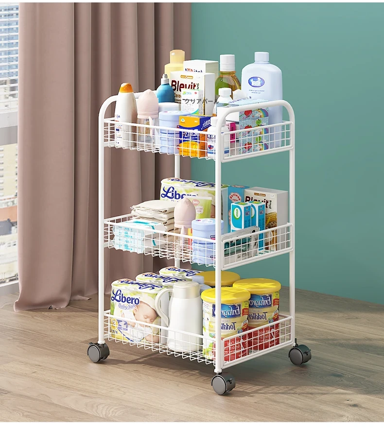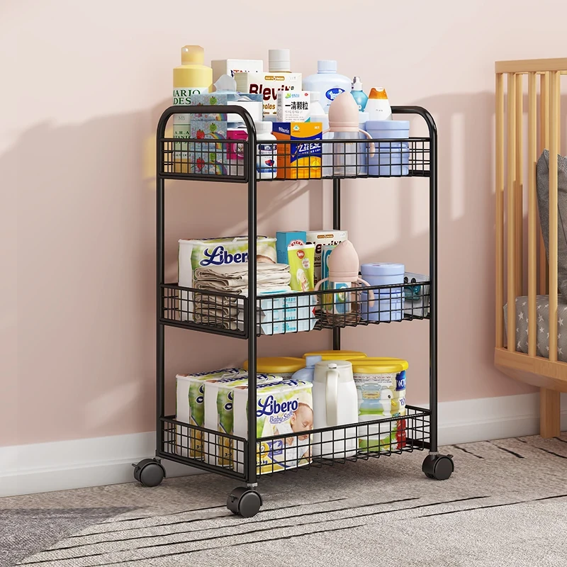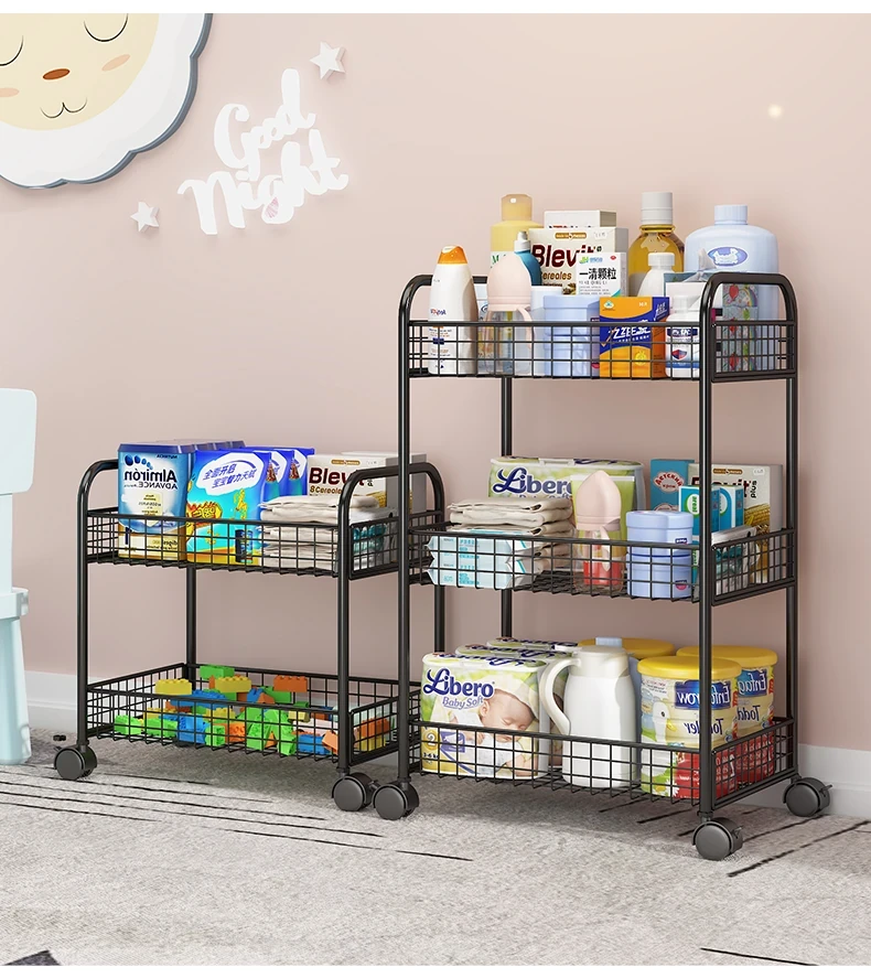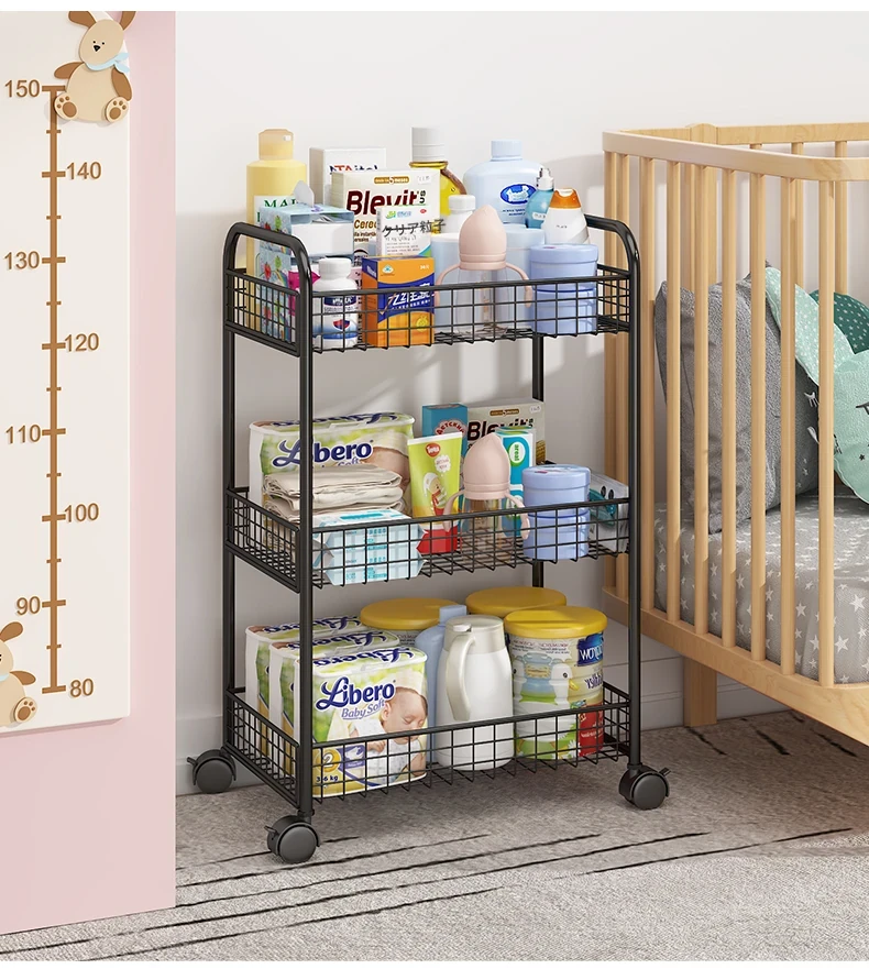 赤ちゃん用品収納棚 新生児用の小型移動式ベビーカー 多段ベッドサイドの赤ちゃんミルクやおむつ収納に便利なラック!お部屋をスッキリ整理して、育児のストレスを軽減します。