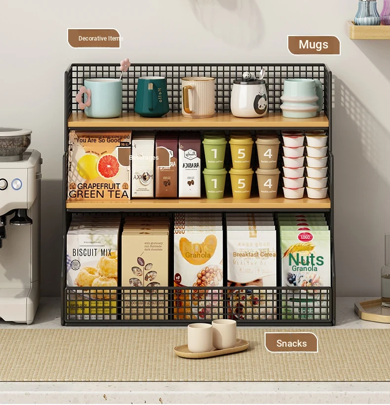 Multi-Tier Desktop Organizer Rack for Kitchen - Versatile Storage for Snacks, Teas, and Cups on Dining Tables and Coffee Tables - Perfect for Tidy Countertops and Easy Access!
