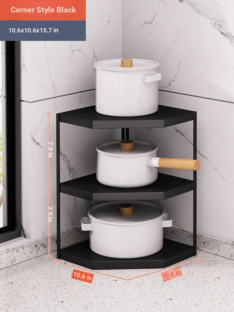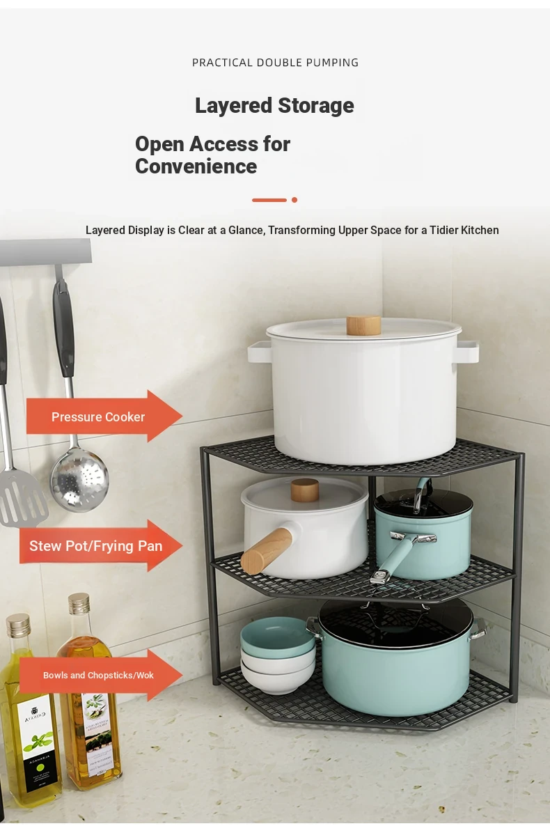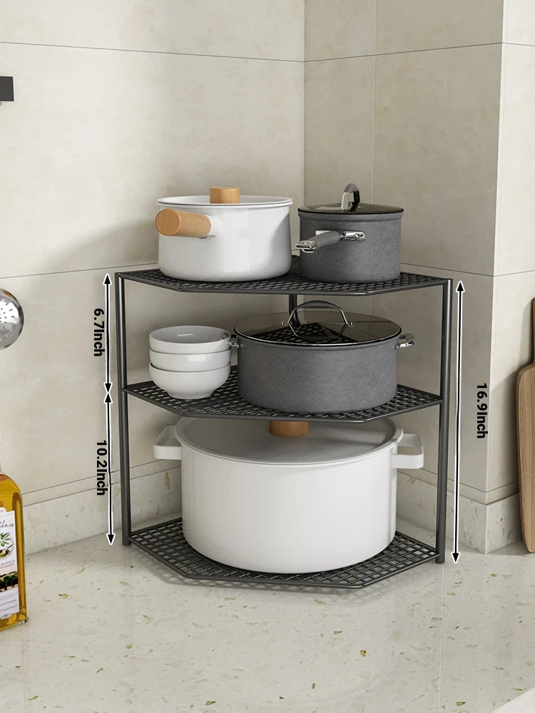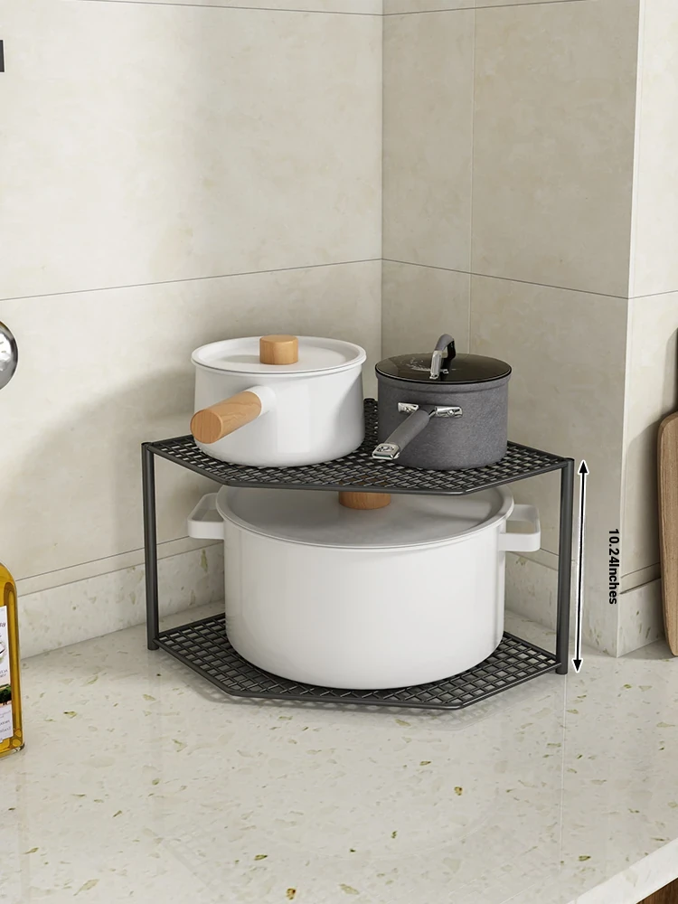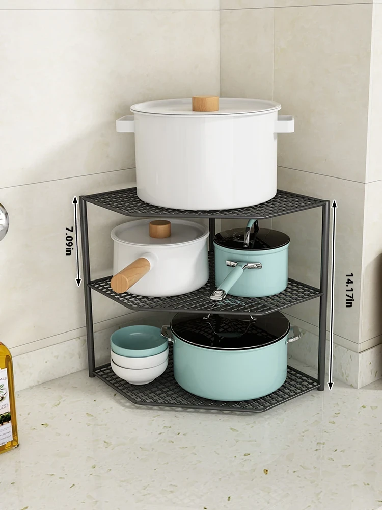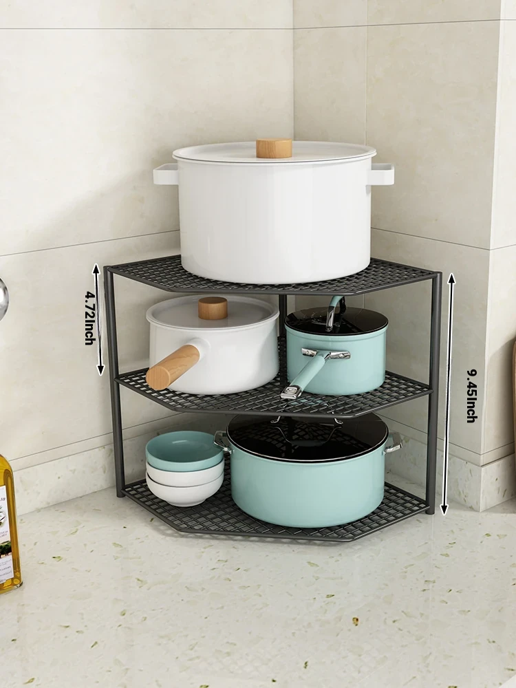 Multi-Tier Kitchen Pot Rack - Space-Saving Corner Storage Organizer for Pots and Pans, Ideal for Under-Sink and Cabinet Use, Keeps Your Kitchen Neat and Tidy!