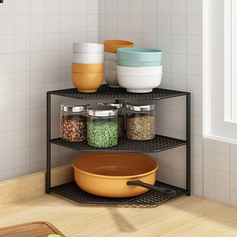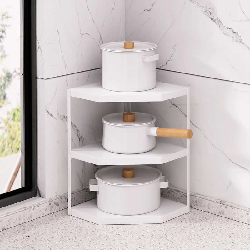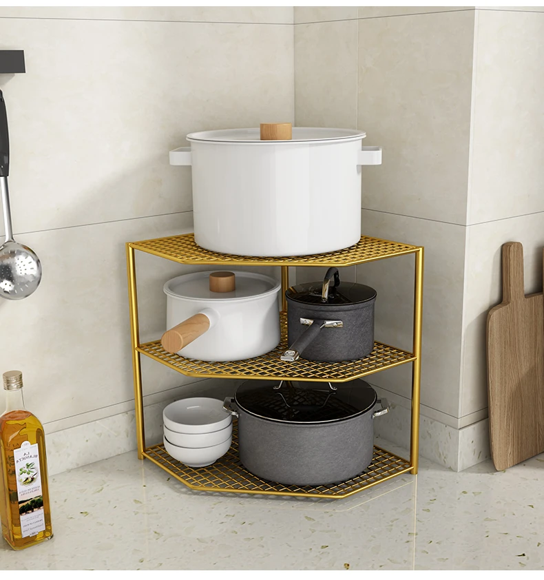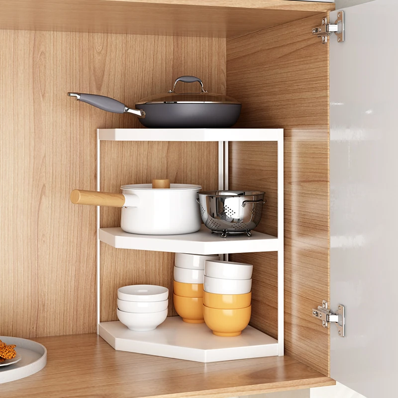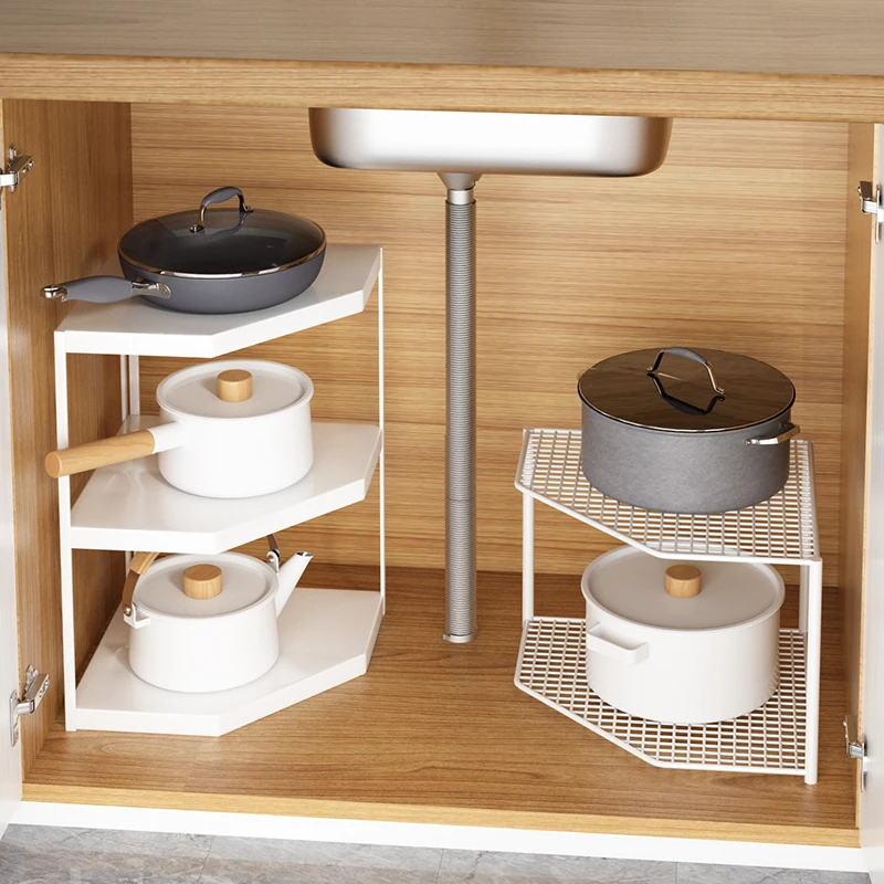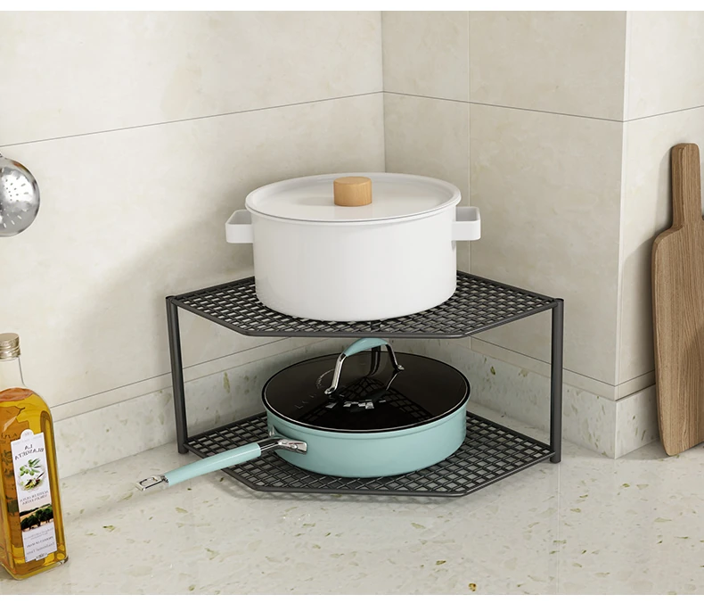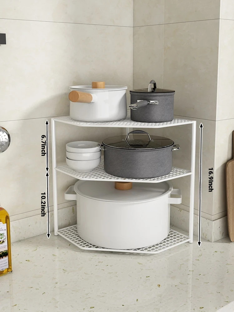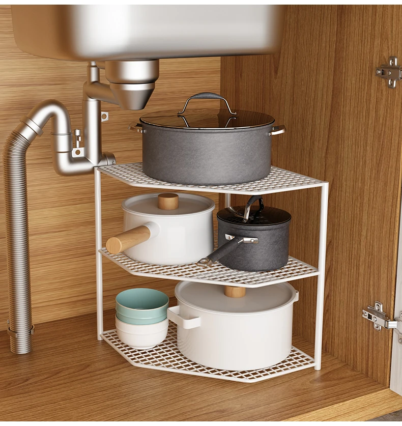 Multi-Tier Kitchen Pot Rack - Space-Saving Corner Storage Organizer for Pots and Pans, Ideal for Under-Sink and Cabinet Use, Keeps Your Kitchen Neat and Tidy!
