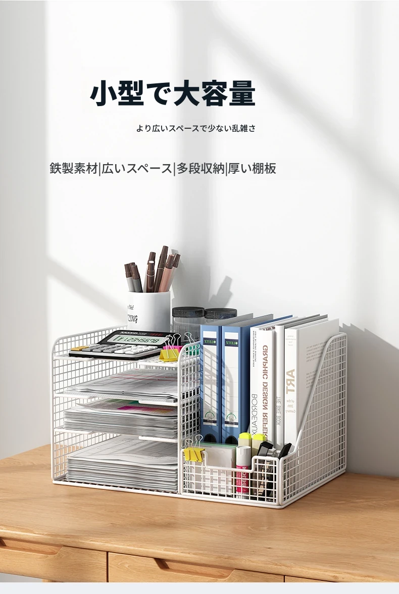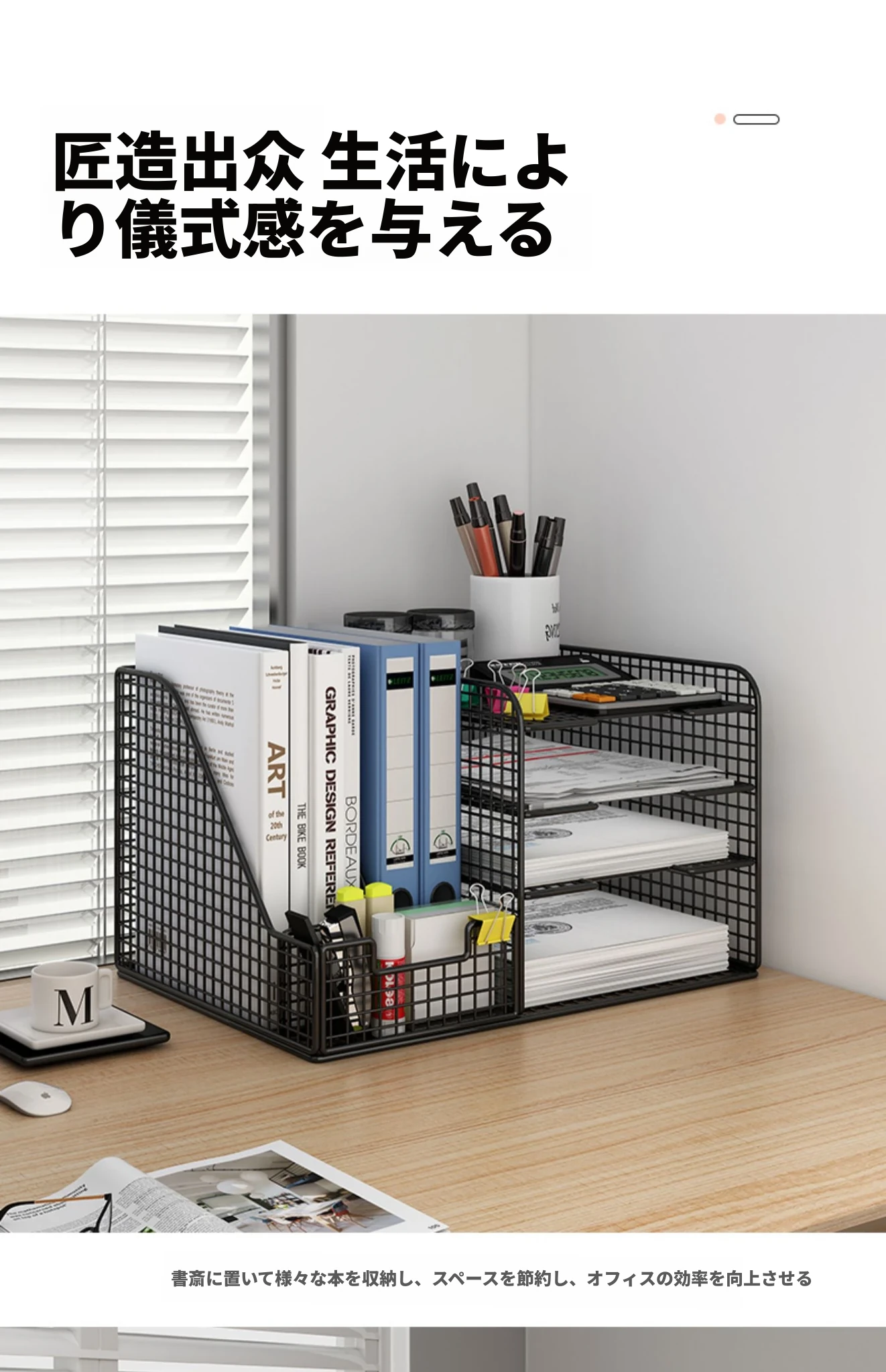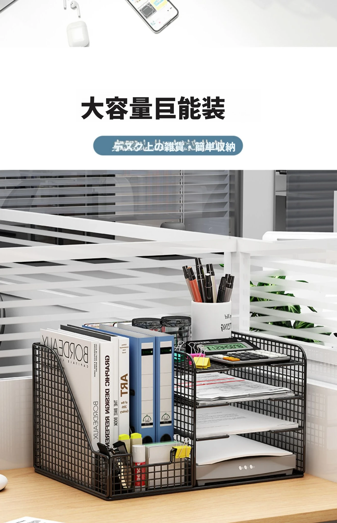 多機能オフィスデスク収納ラックA3/A4対応!デスク上をスッキリ整理できる多層金属ファイルホルダー。書類や資料を美しく収納して、仕事効率をアップ!