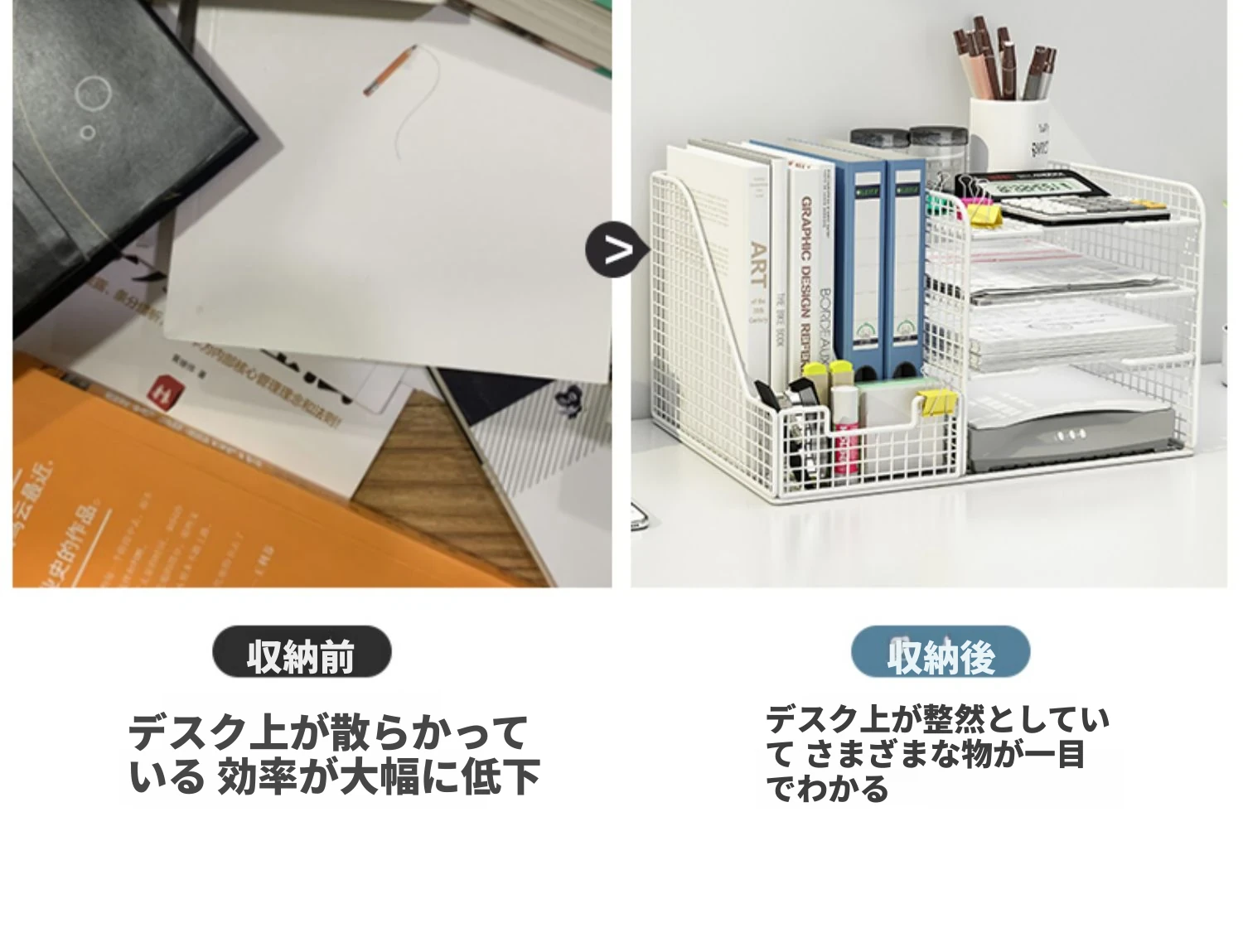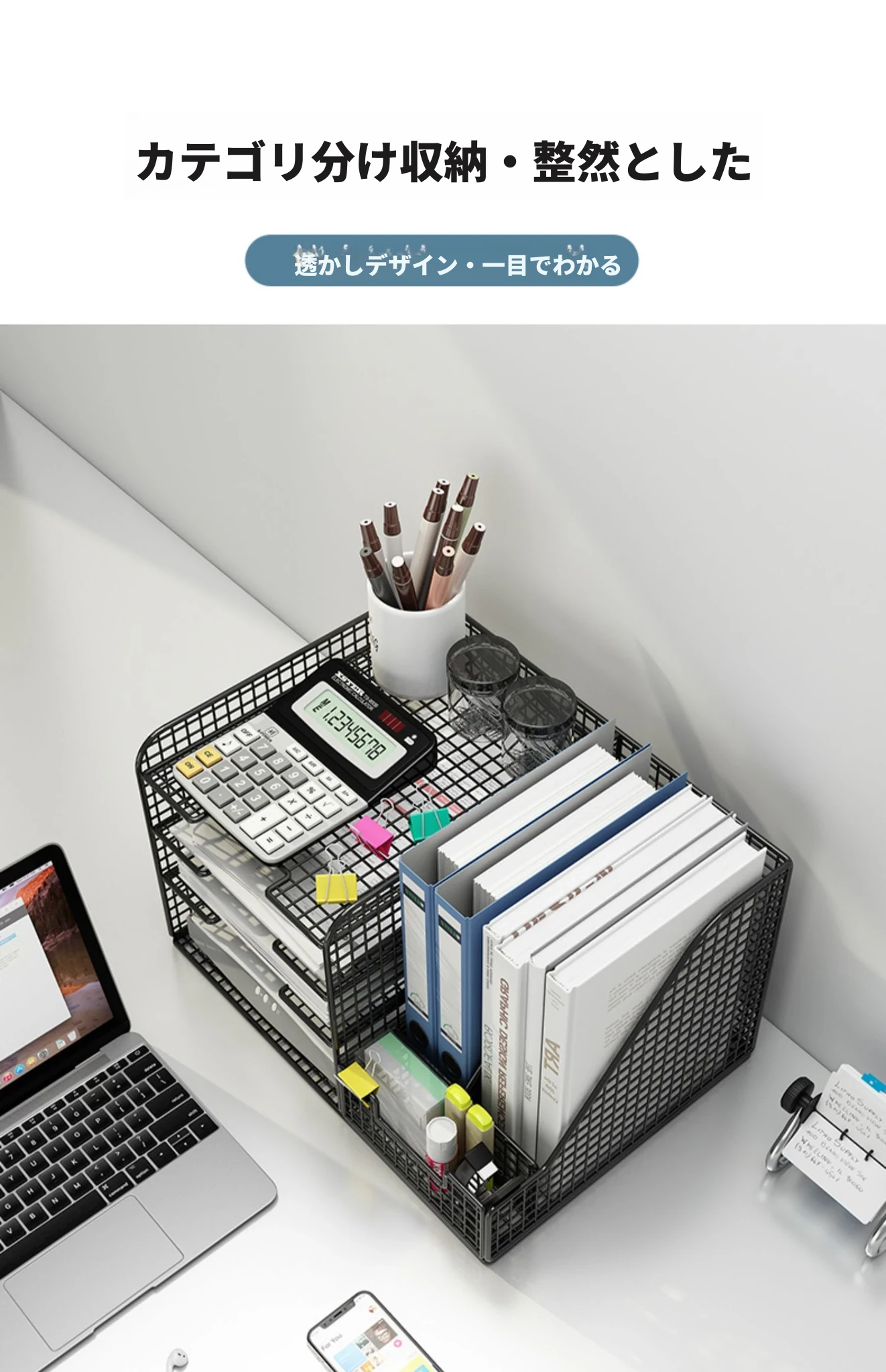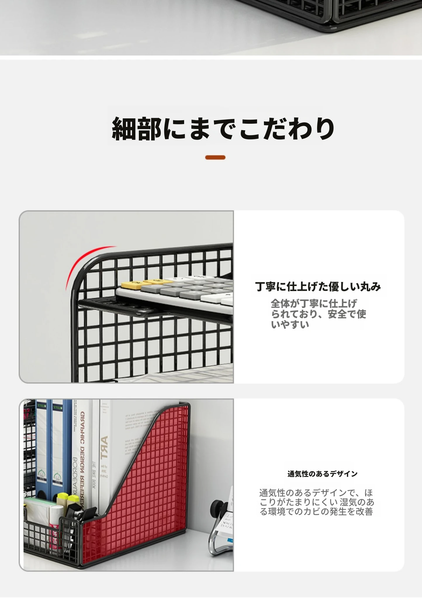 多機能オフィスデスク収納ラックA3/A4対応!デスク上をスッキリ整理できる多層金属ファイルホルダー。書類や資料を美しく収納して、仕事効率をアップ!