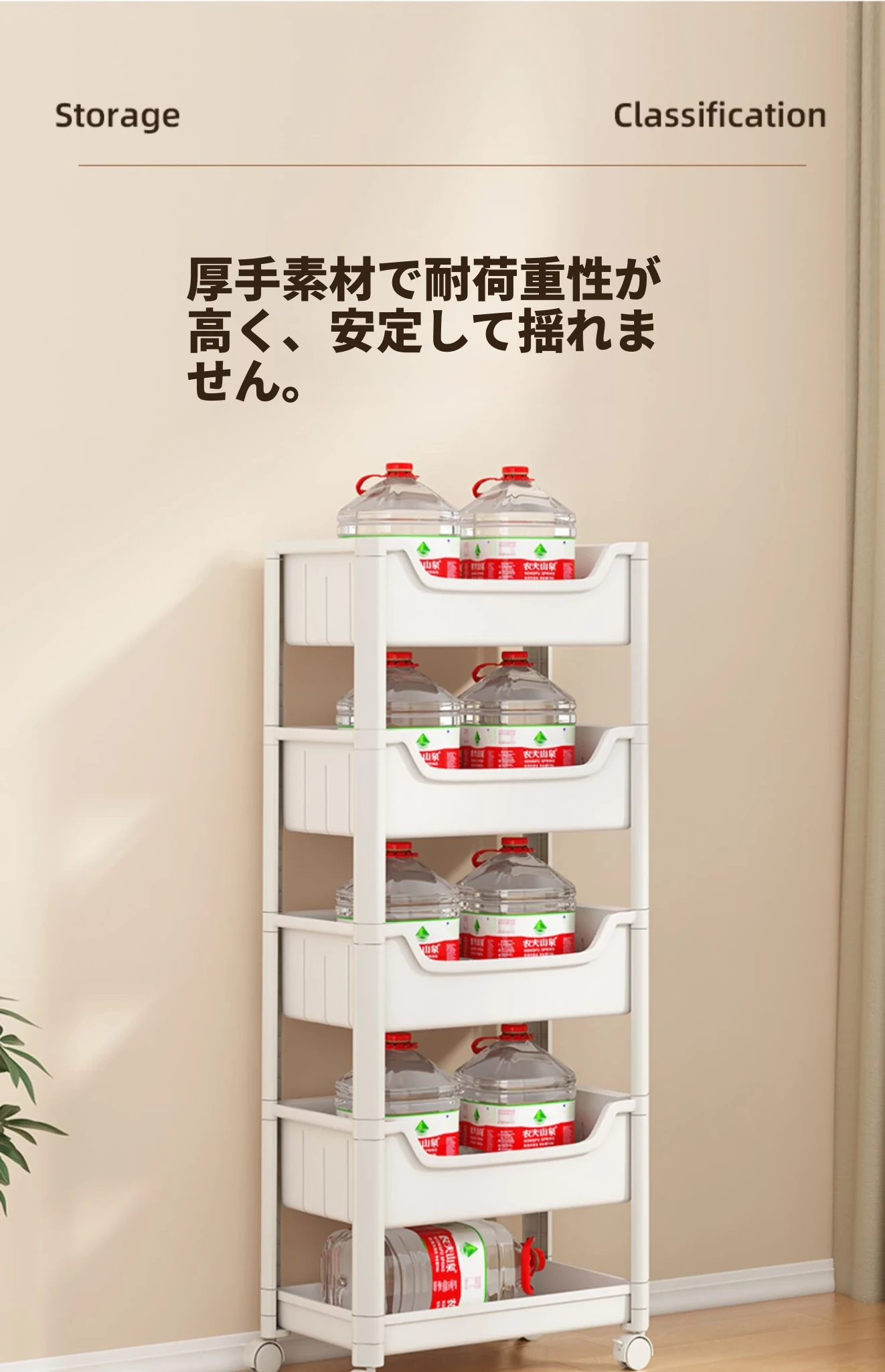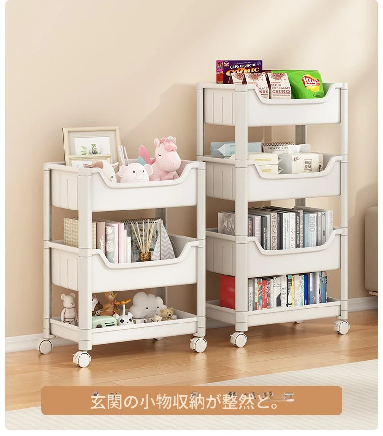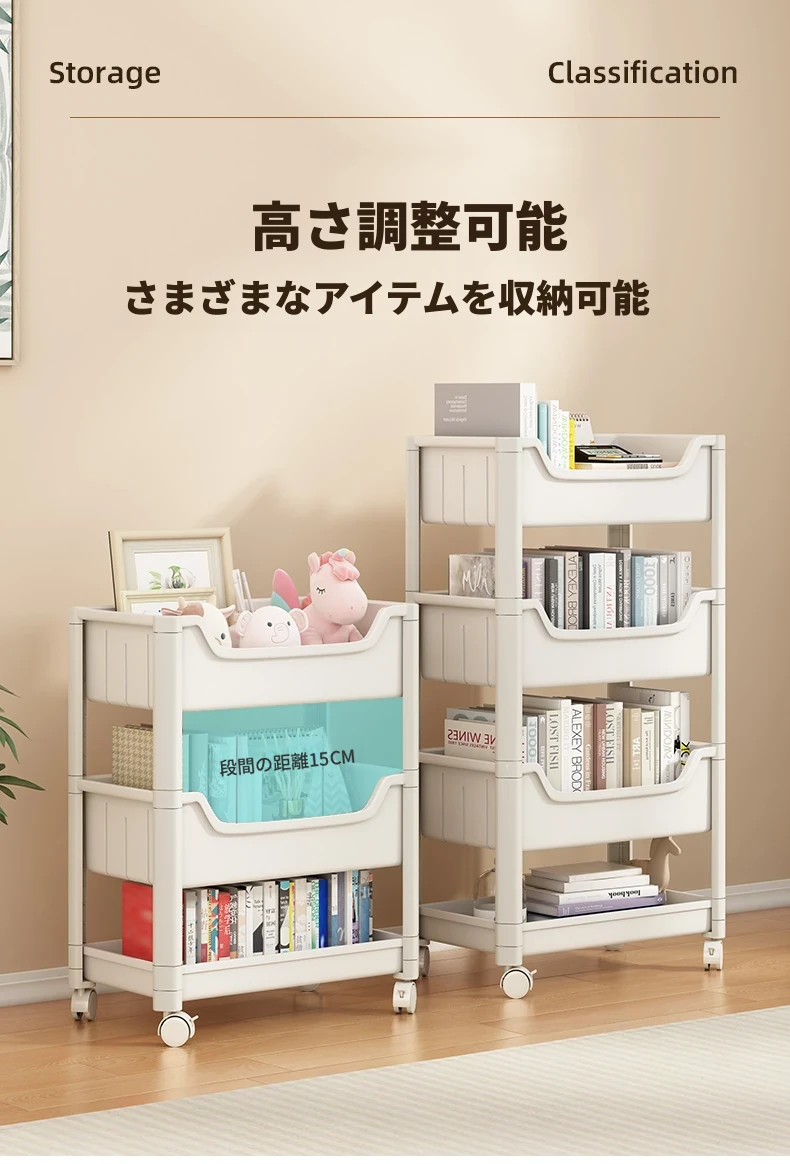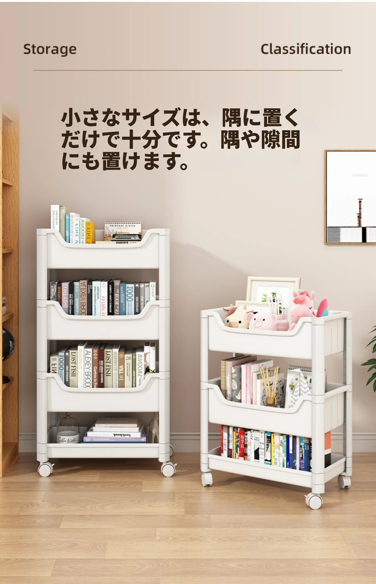 移動式多段ラック!おしゃれなデザインで、デスク周りをスッキリ整理。隙間にぴったりフィットし、収納力抜群。高さ調整可能で、どんな場所でも活躍するマルチ収納ラック!